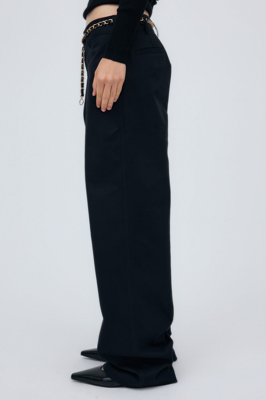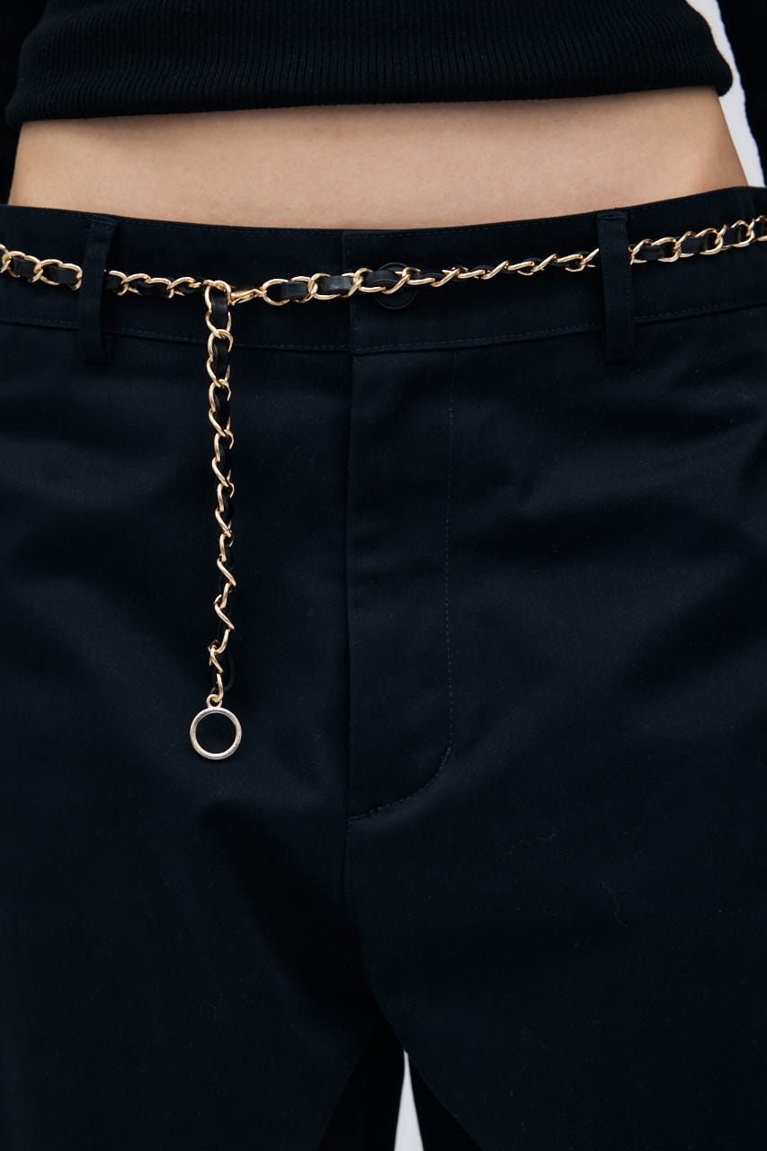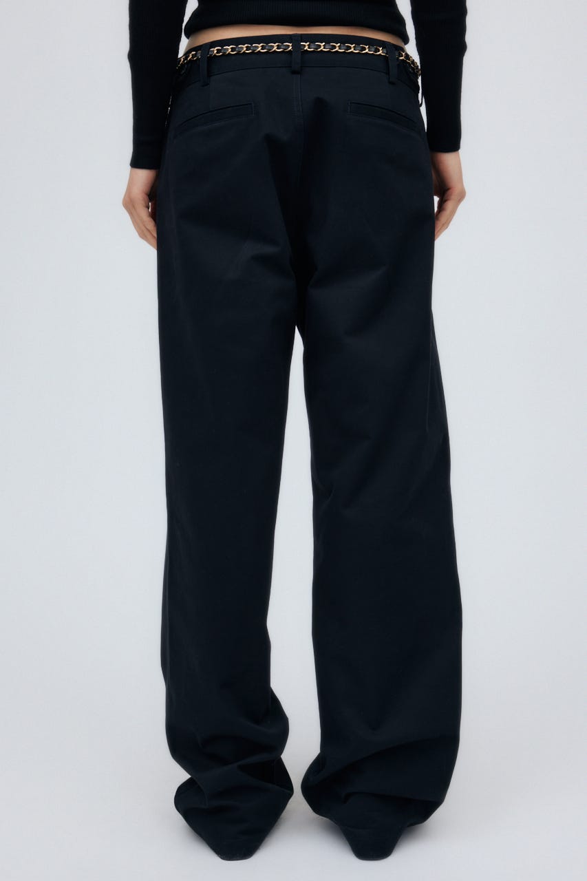 ゆとりのあるサイジングを程よく腰に落として、肌見せしたりとレディーライクな着こなしも楽しんで。