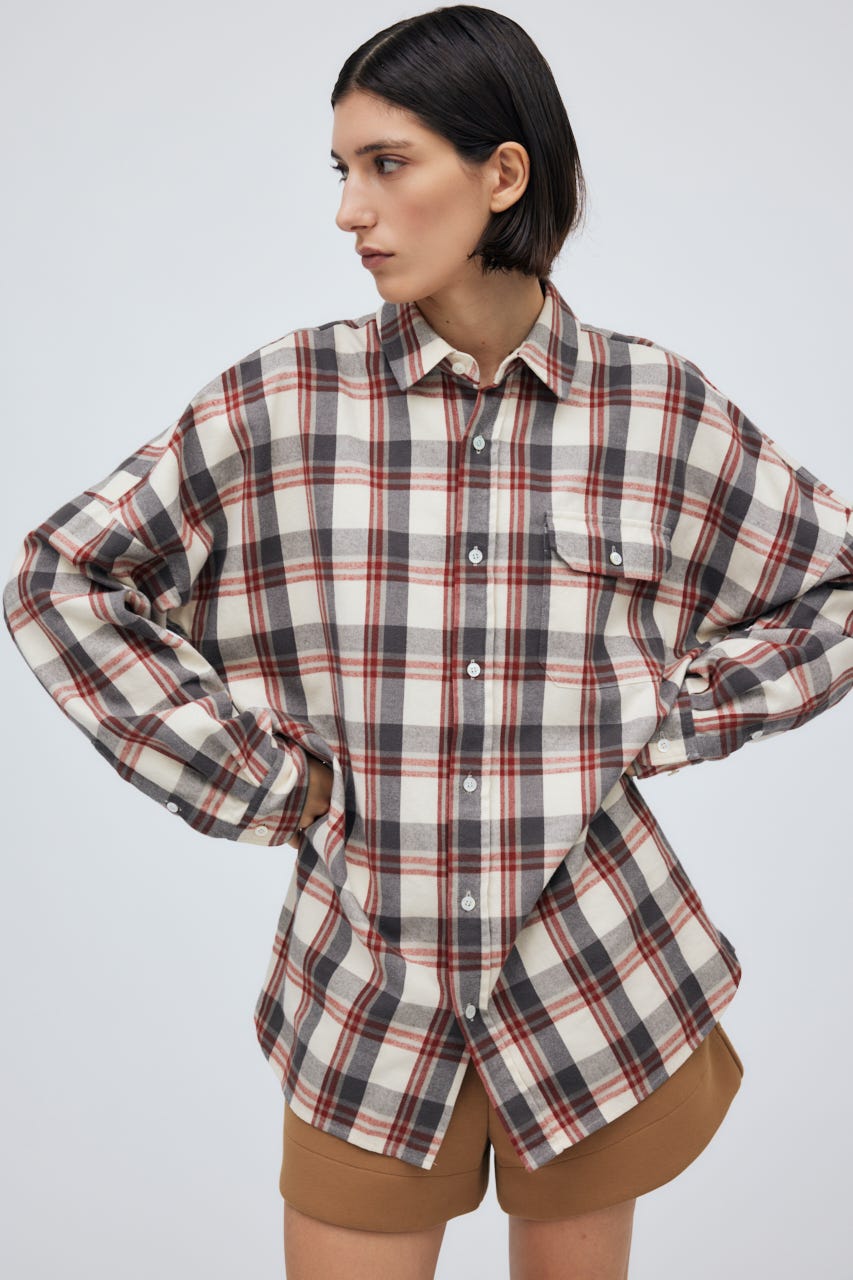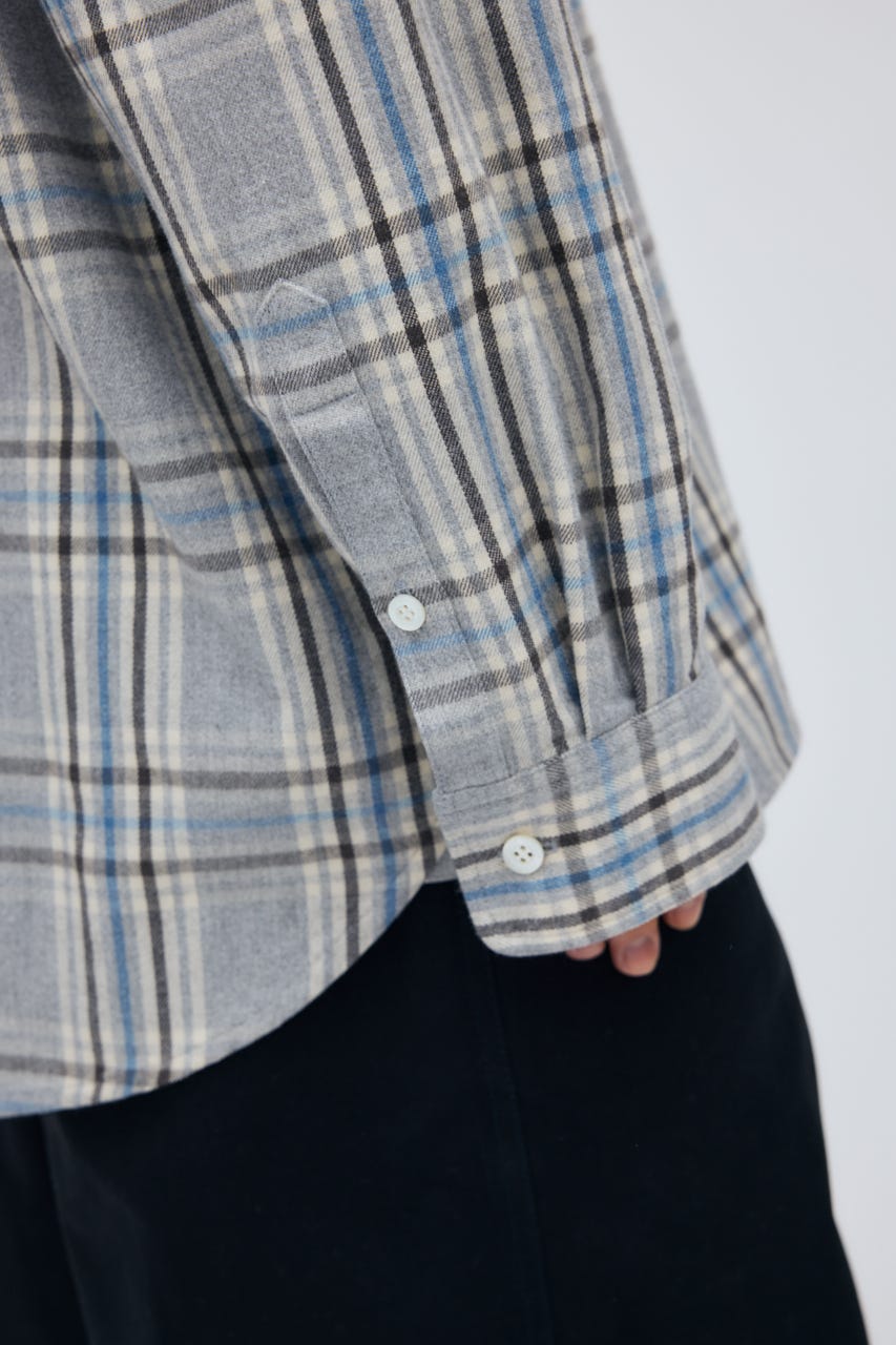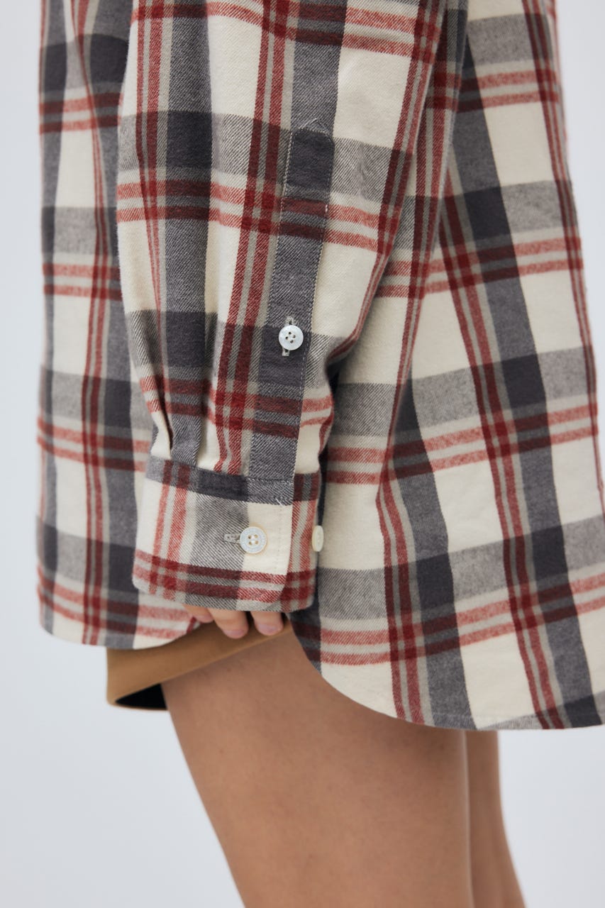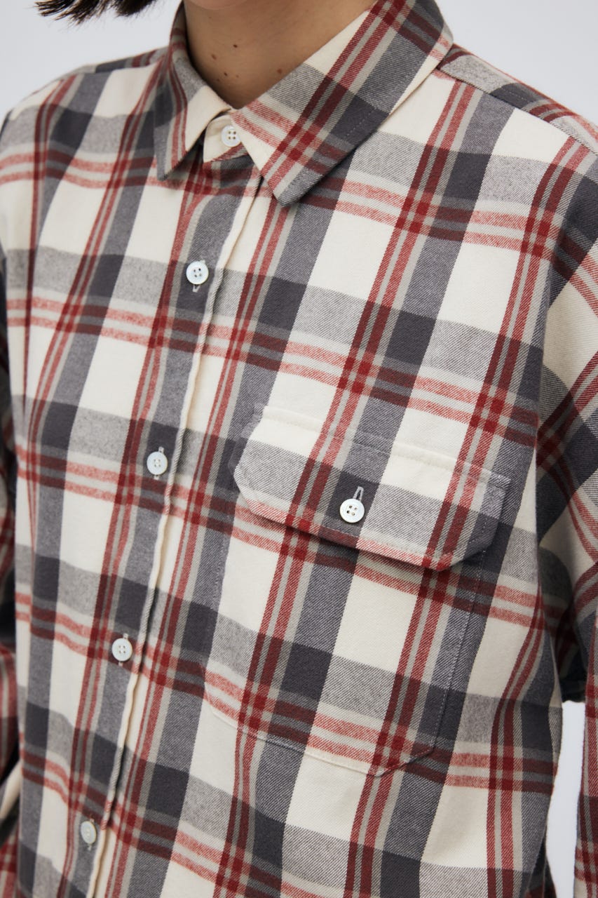 起毛をかけた綿100%のチェック柄長袖シャツ。
