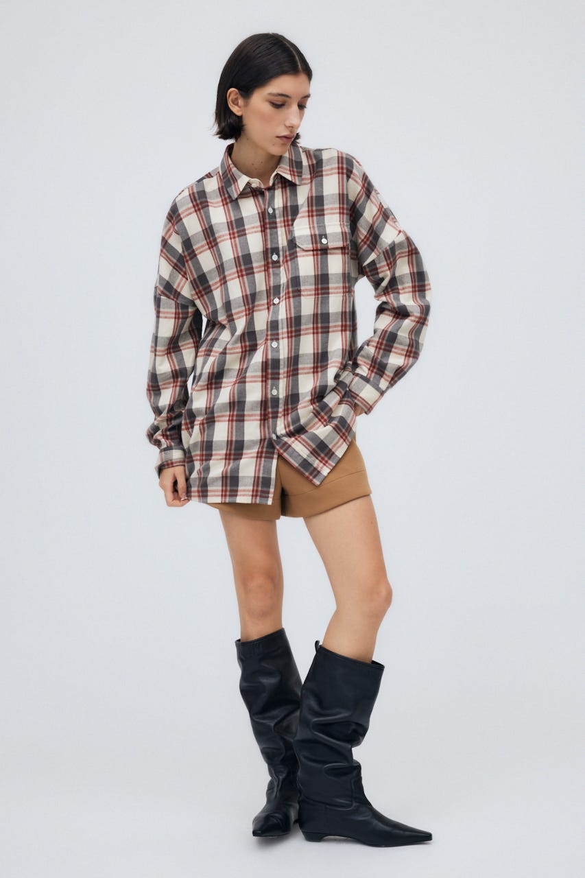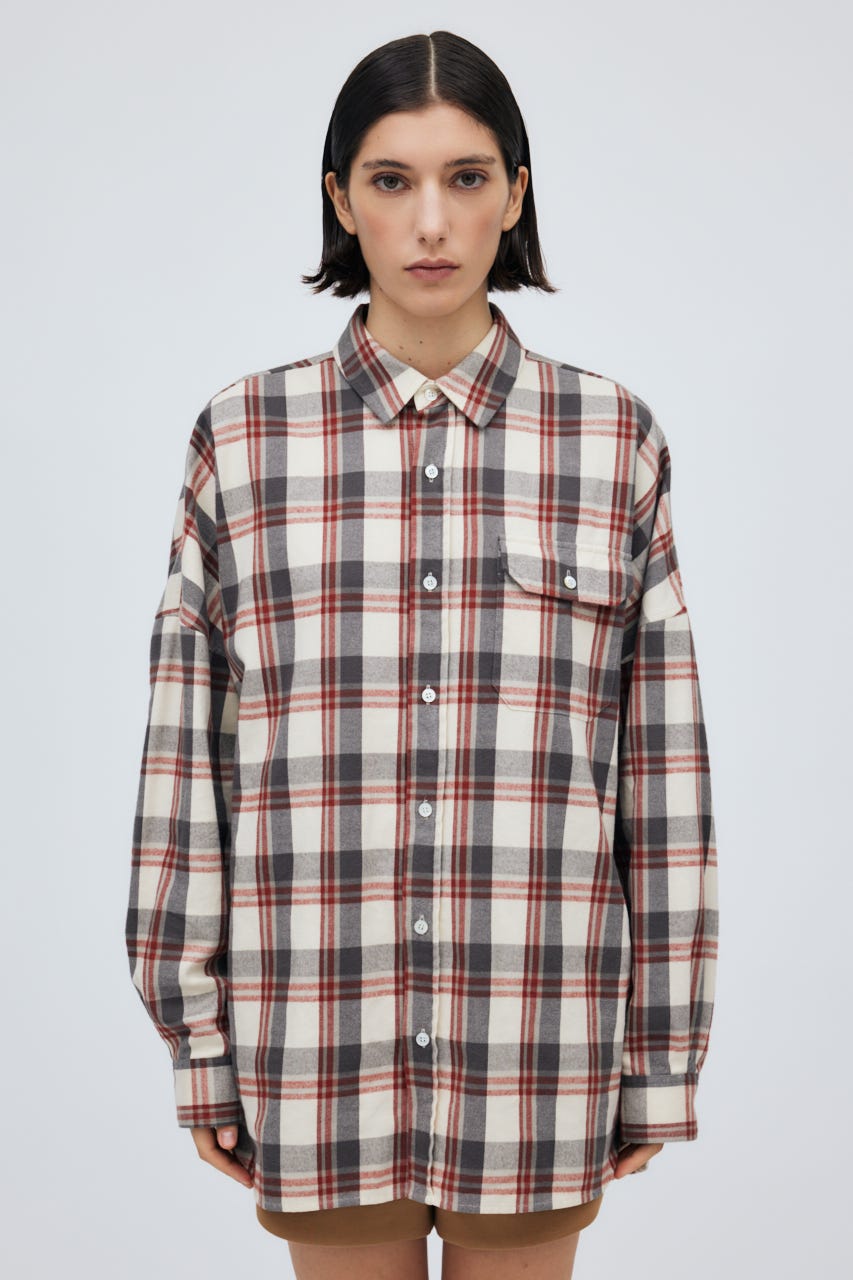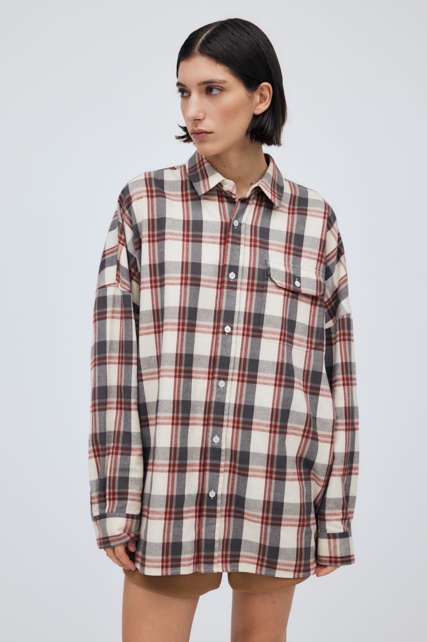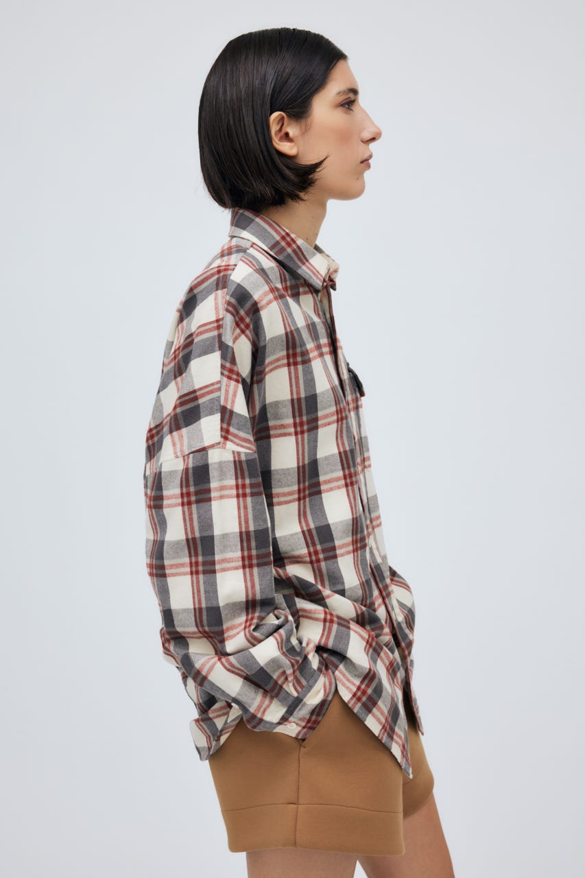 起毛をかけた綿100%のチェック柄長袖シャツ。