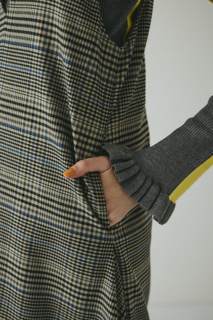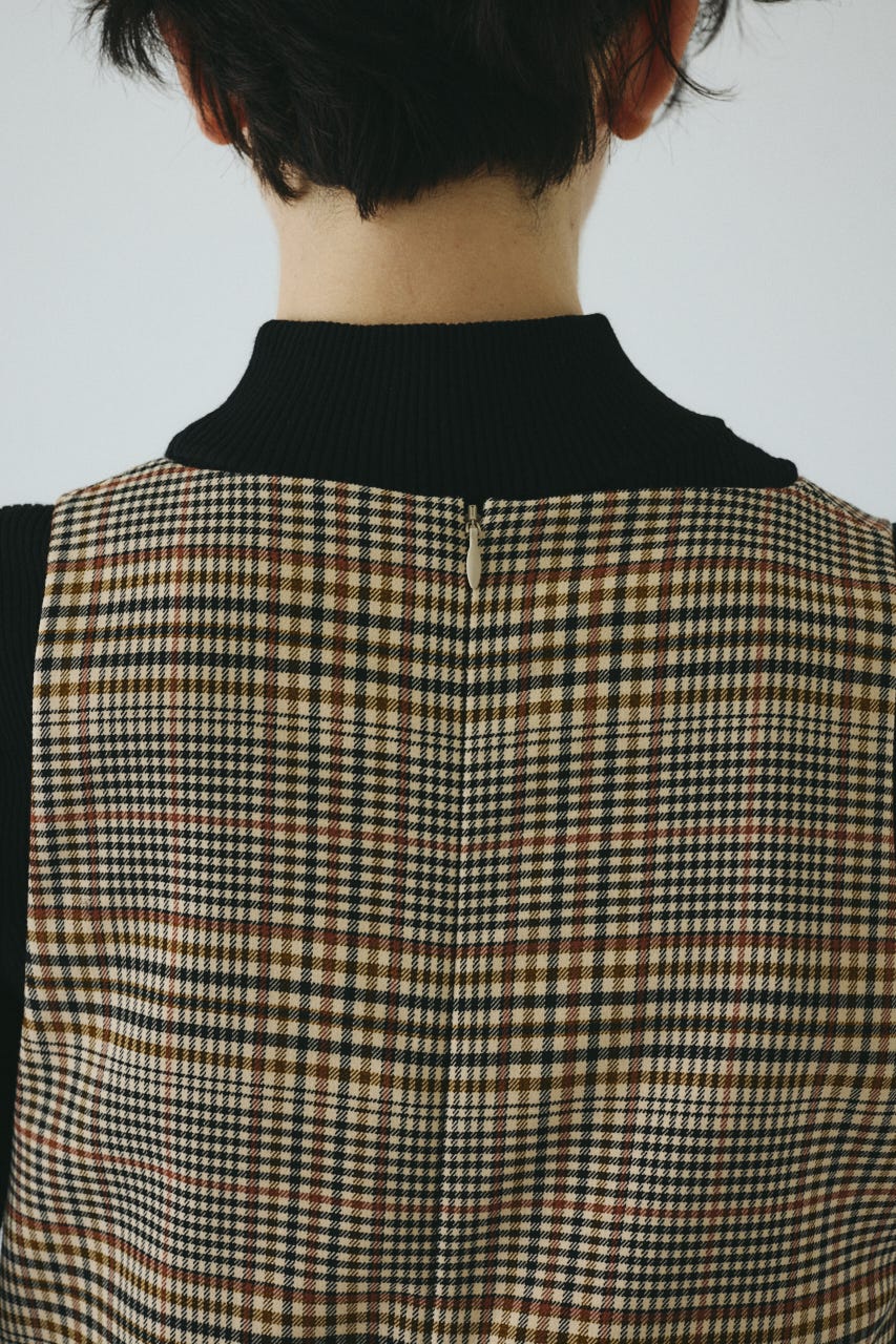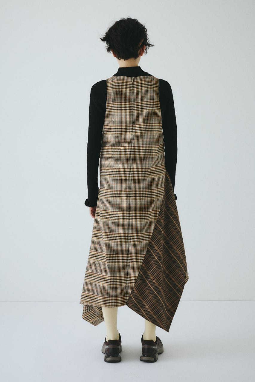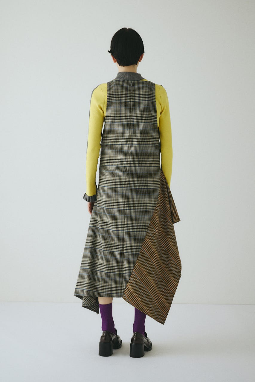 チェック柄の色違いをリメイクのように仕立てたワンピース