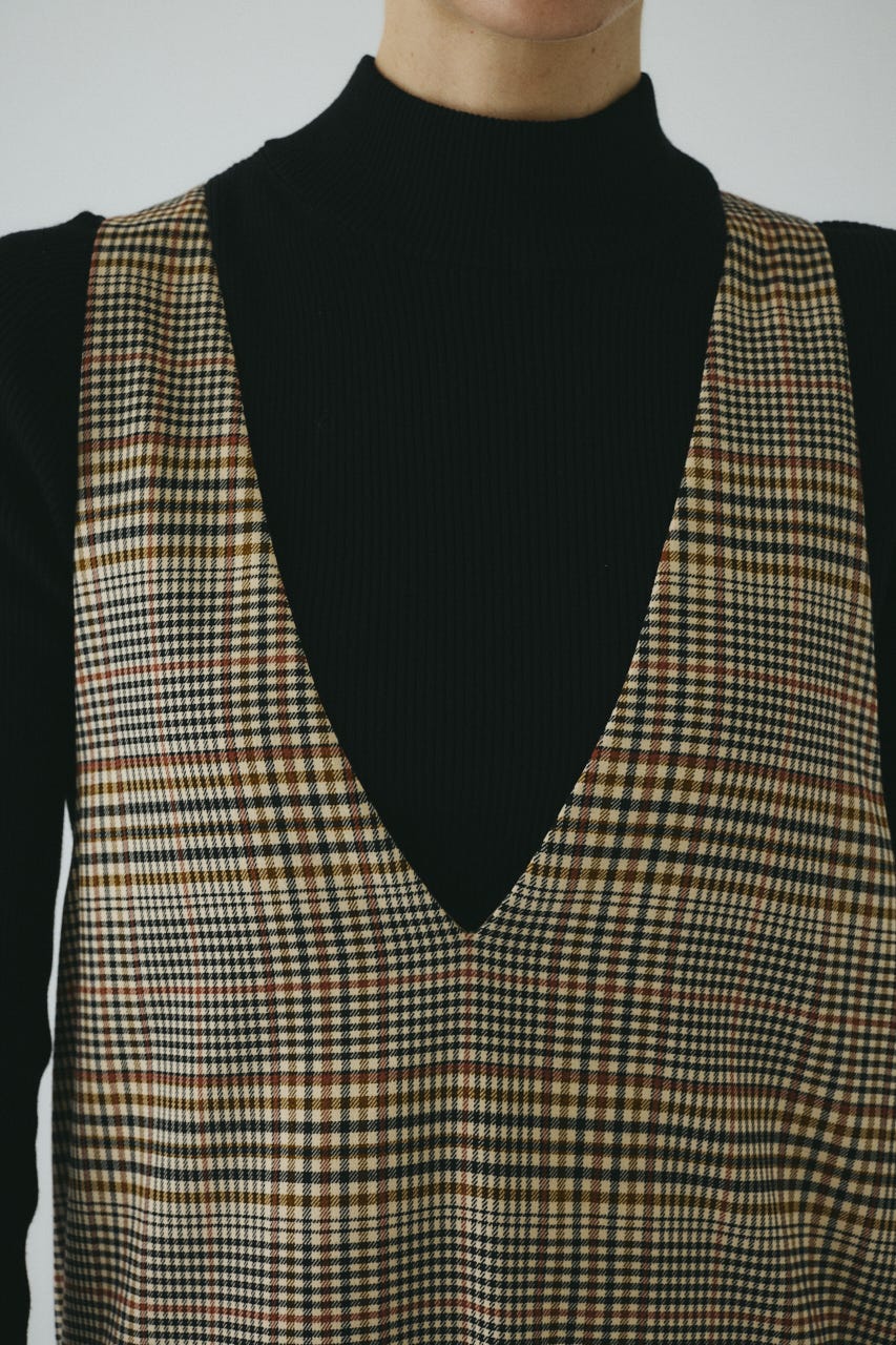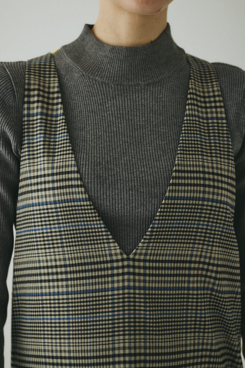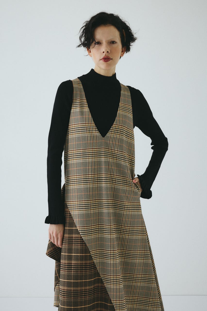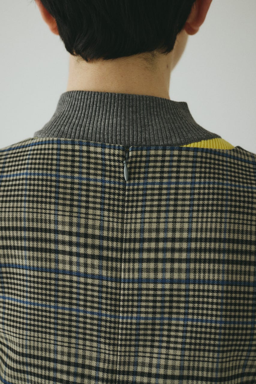チェック柄の色違いをリメイクのように仕立てたワンピース