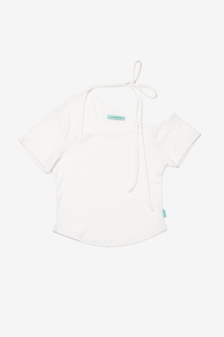 【INSTANTFUNK】リボン ワンショルダーショートスリーブ トップ