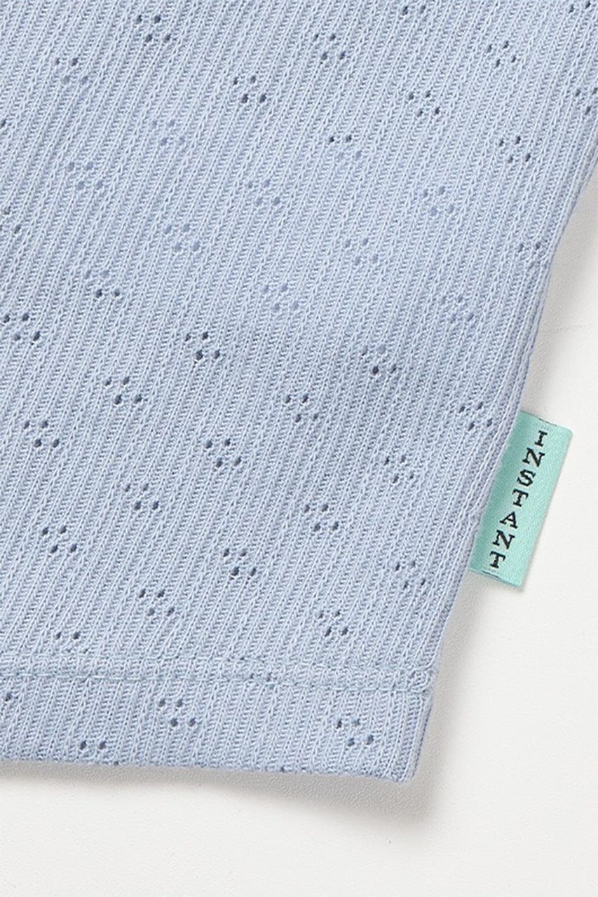 パンチングディテールが特徴的な薄ニット素材の半袖シャツ。