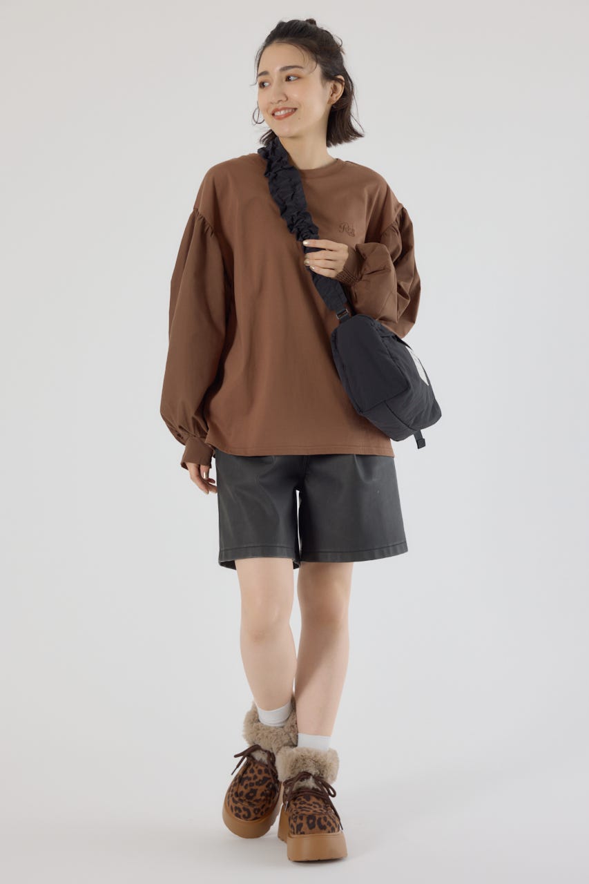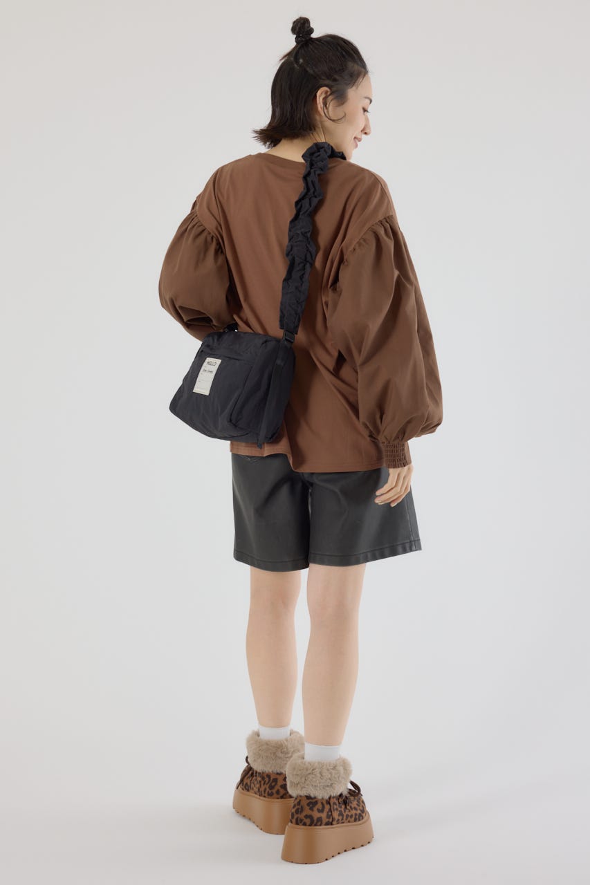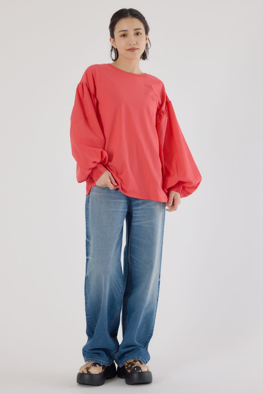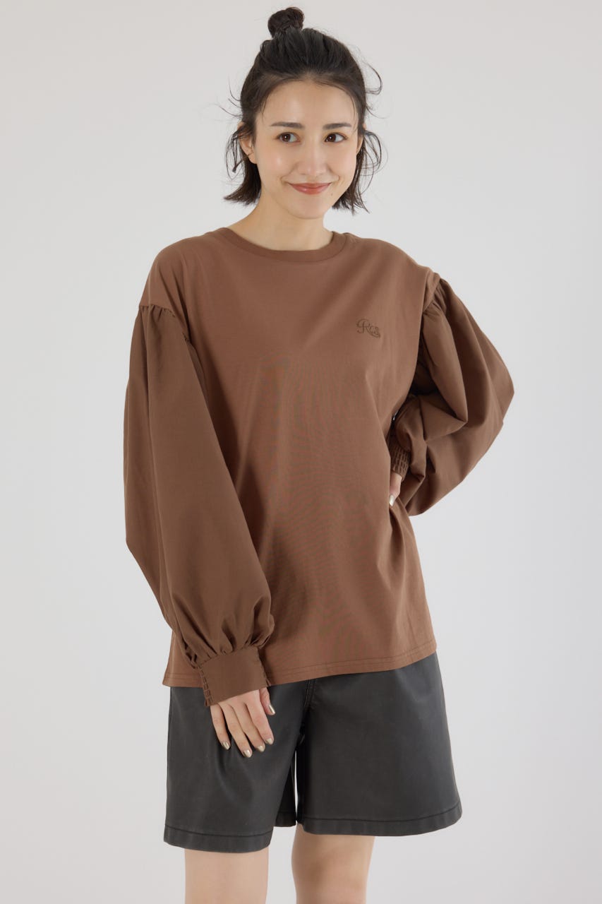 袖口がシャーリングのゴム入りなので袖を上げてバルーンのシルエットを変えてもかわいいです。