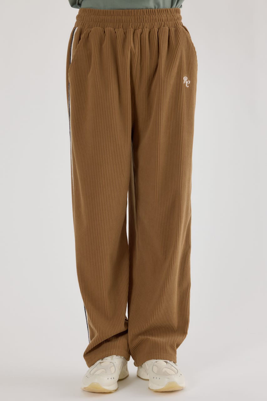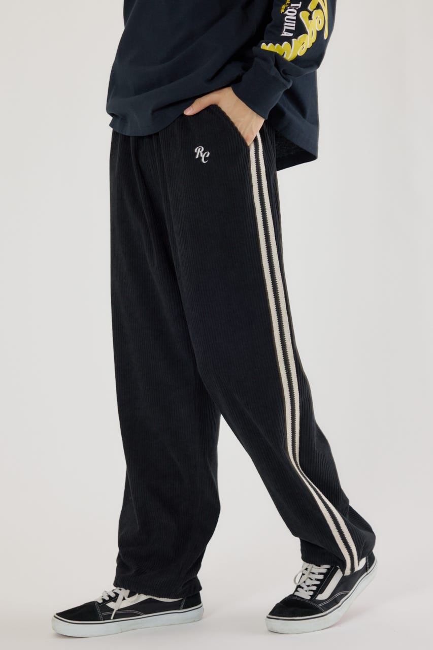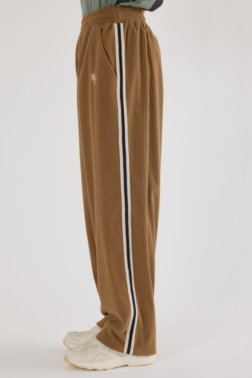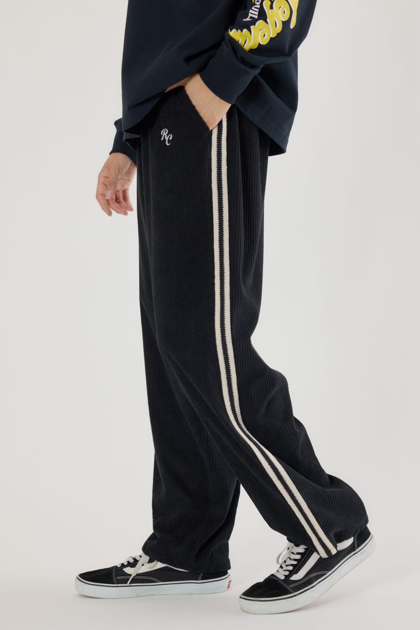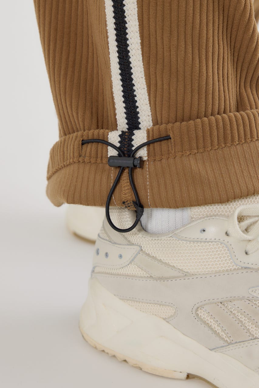 トラックテープをサイドにあしらったストレートシルエットのイージータイプ。
