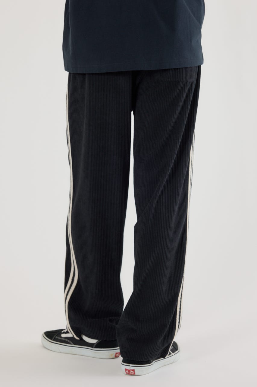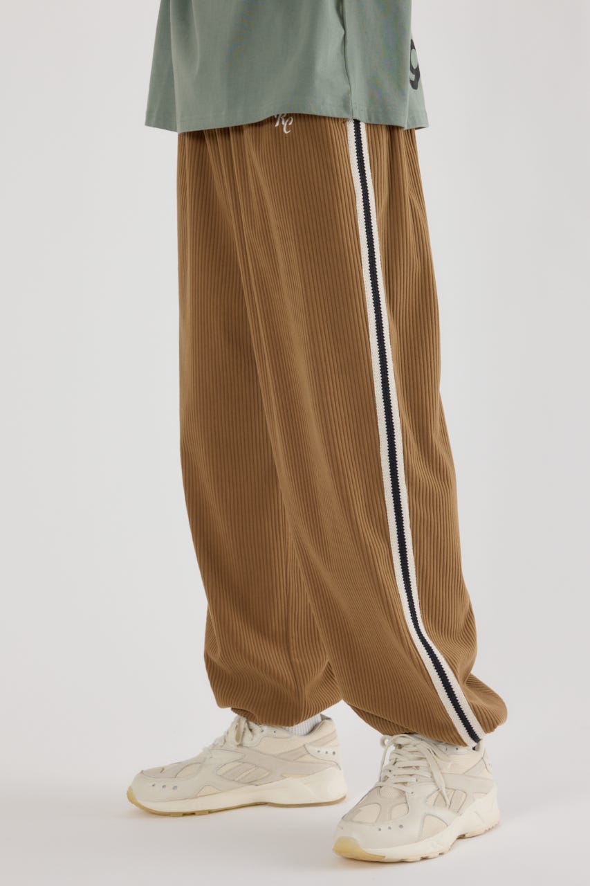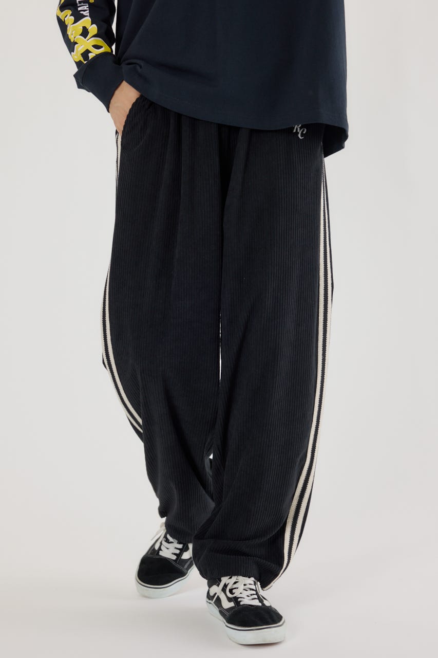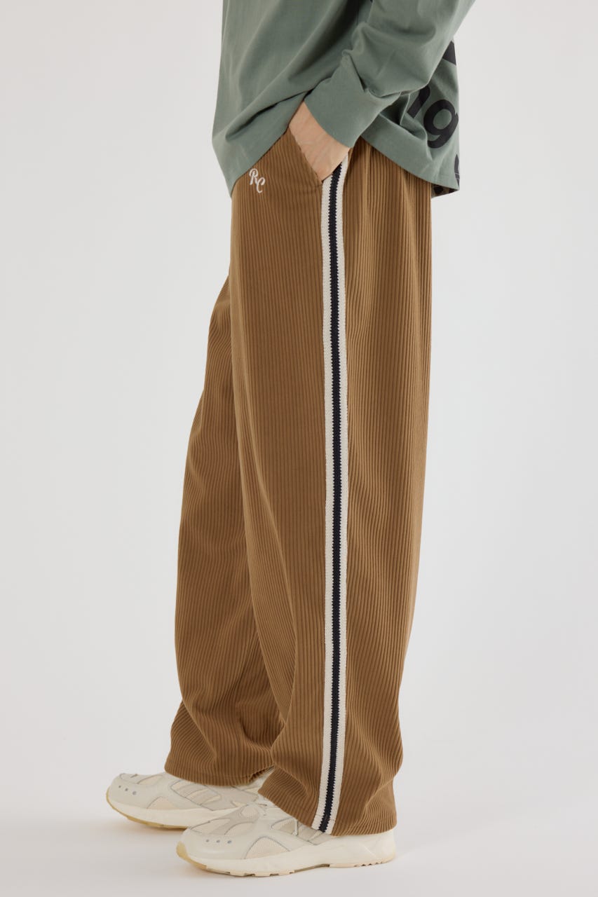 トラックテープをサイドにあしらったストレートシルエットのイージータイプ。