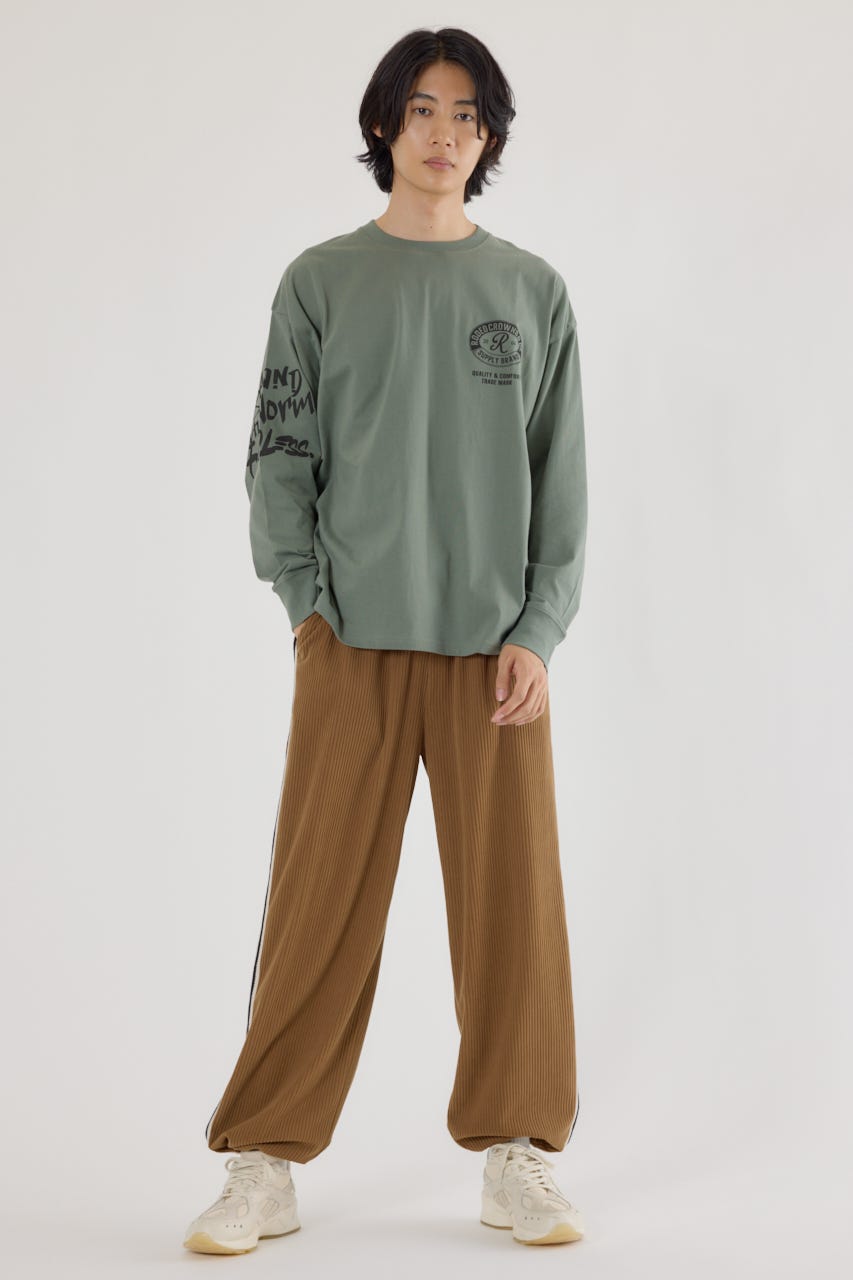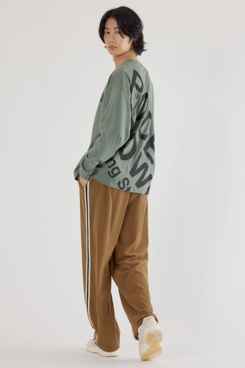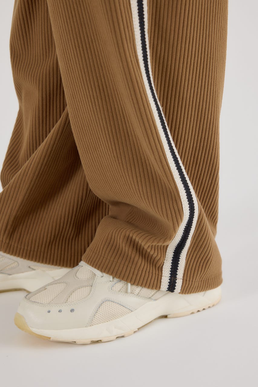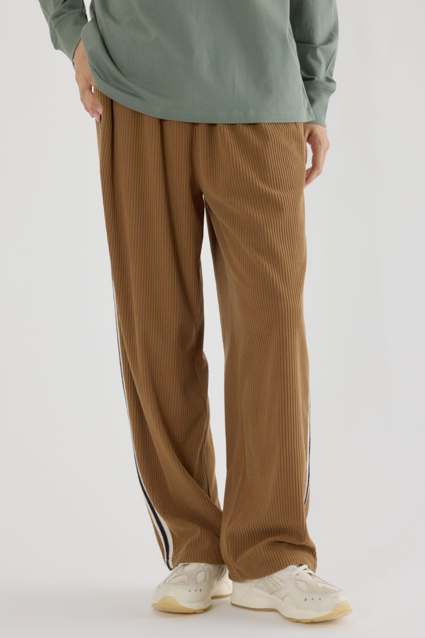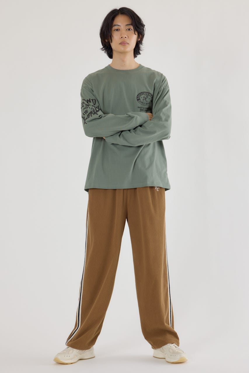 トラックテープをサイドにあしらったストレートシルエットのイージータイプ。