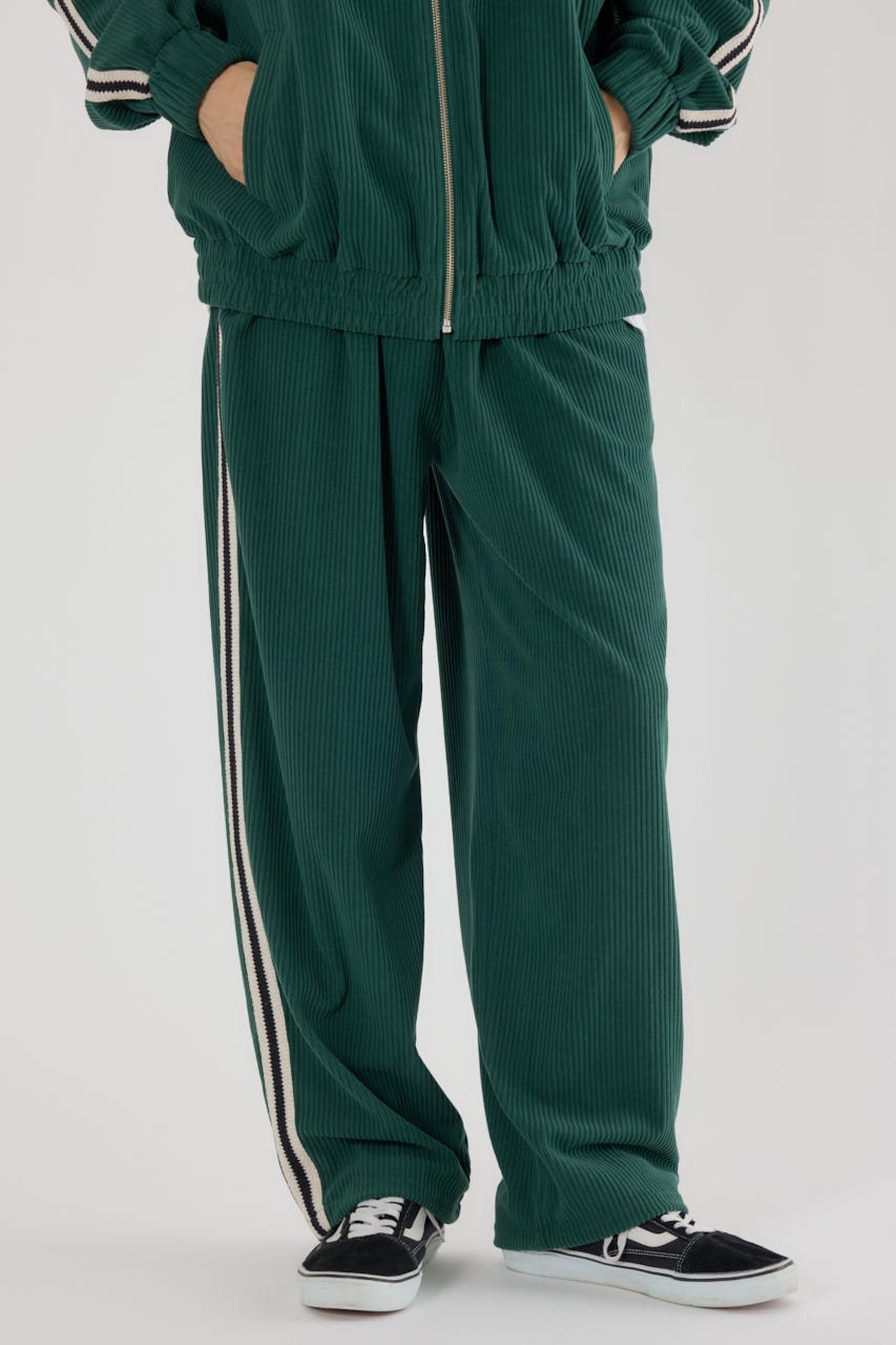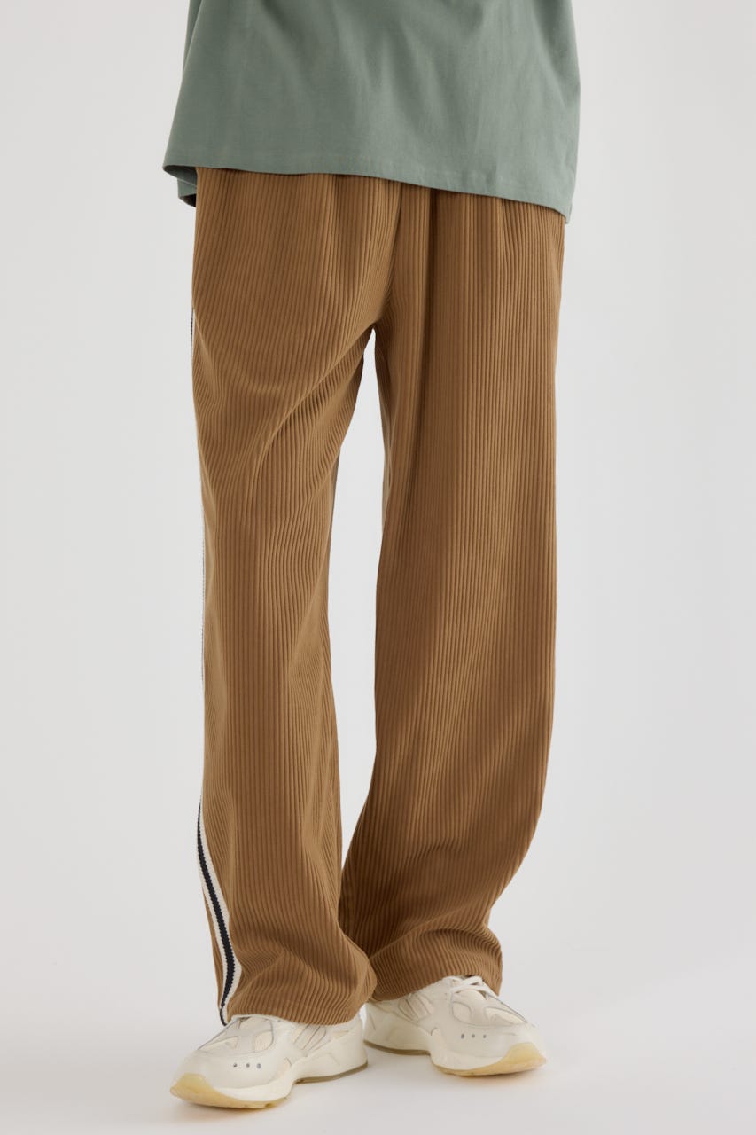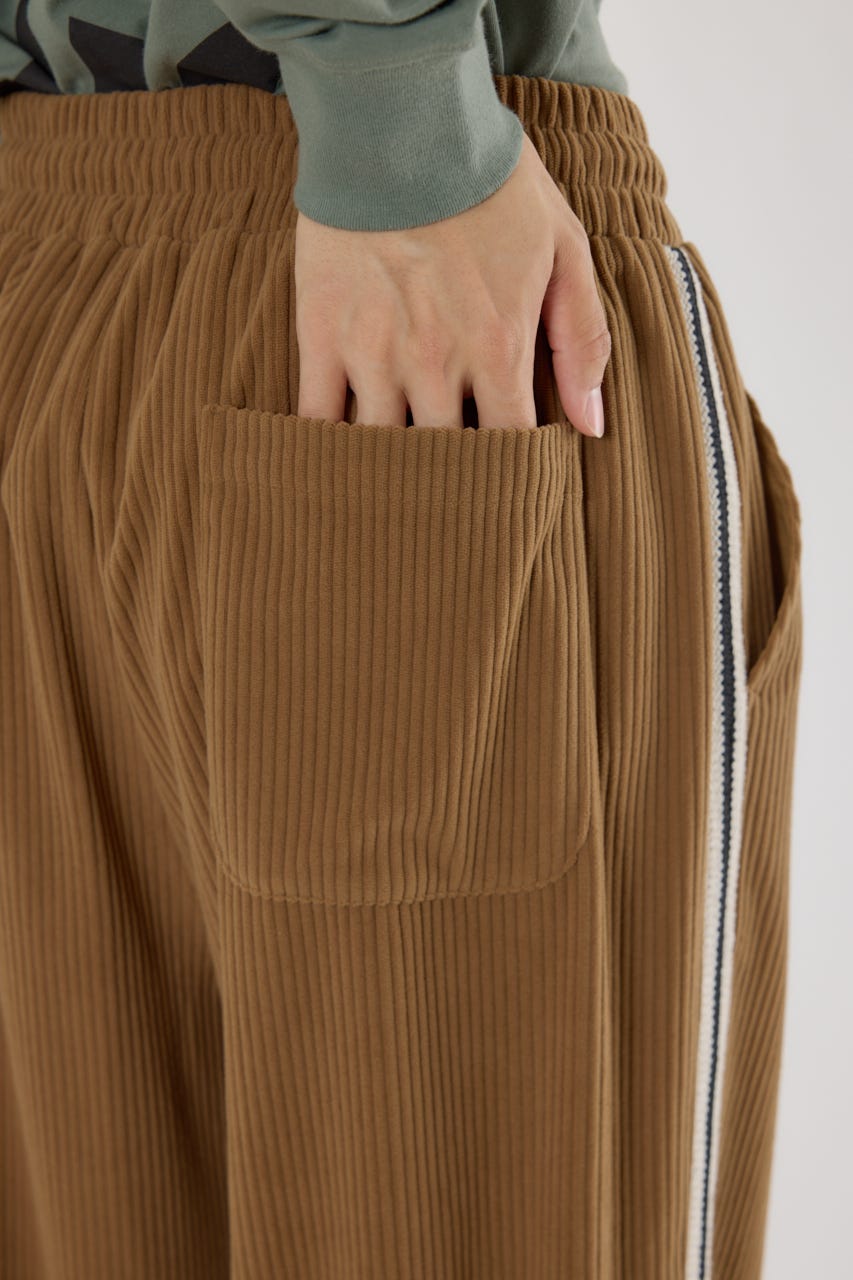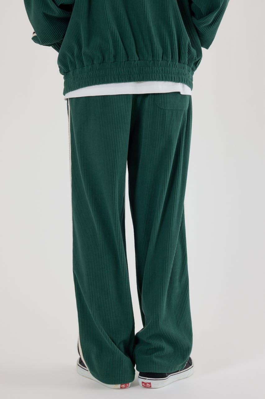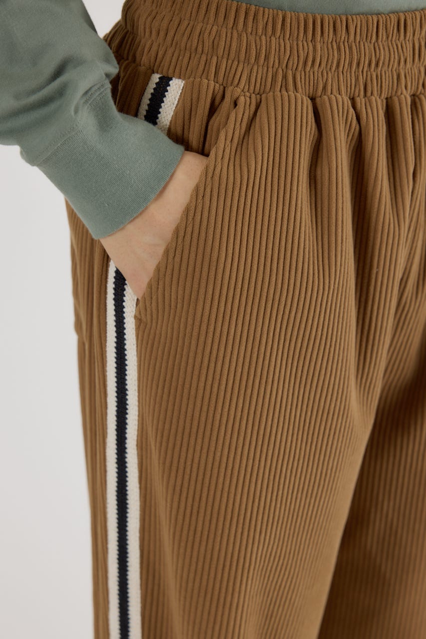 トラックテープをサイドにあしらったストレートシルエットのイージータイプ。