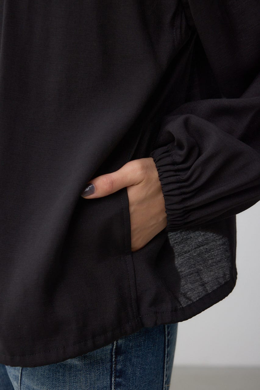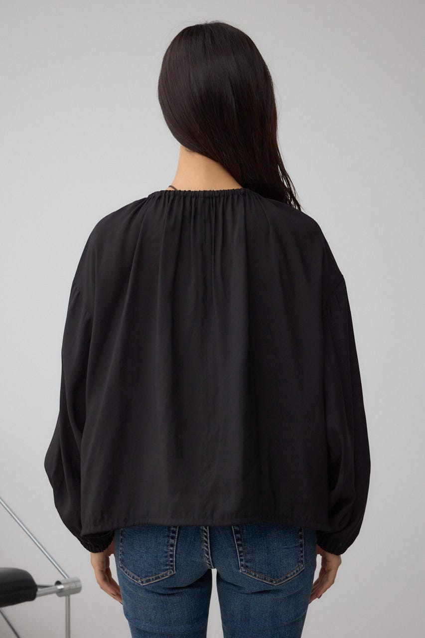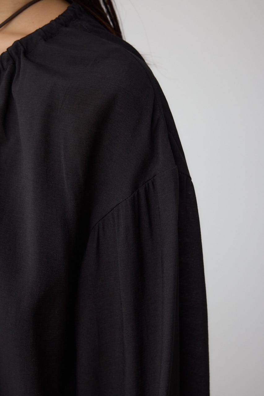 シンプルなデザインですが、ネック周りのギャザーやスピンドルがアクセントに。