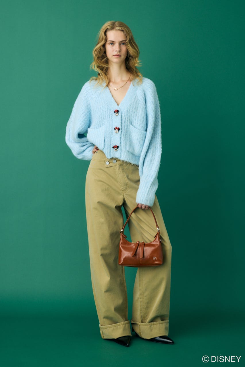 立体的なミニーマウスのお顔ボタンが、さりげなくもキュートなニットカーディガン。