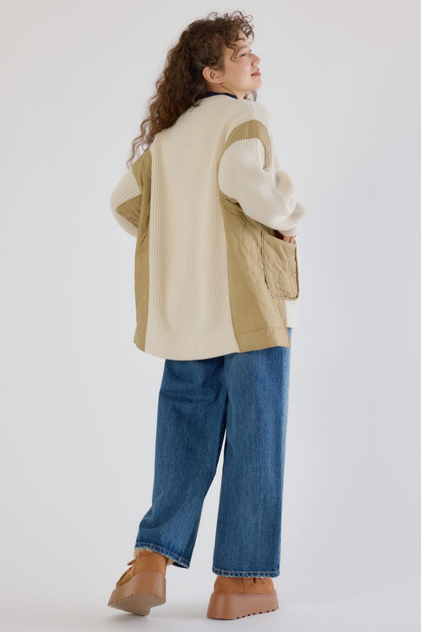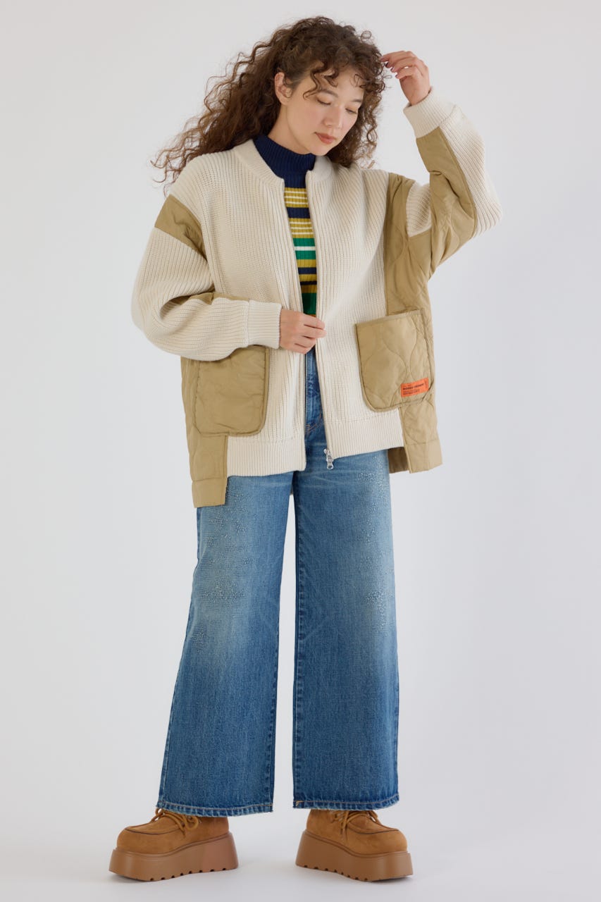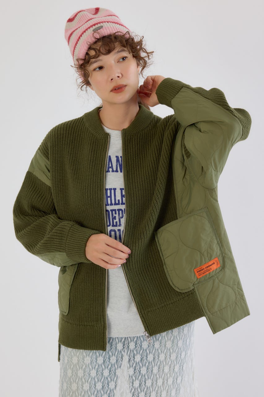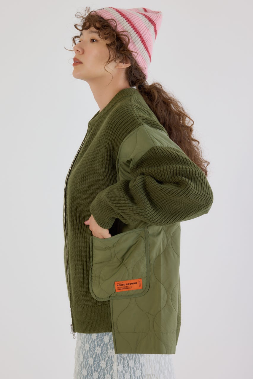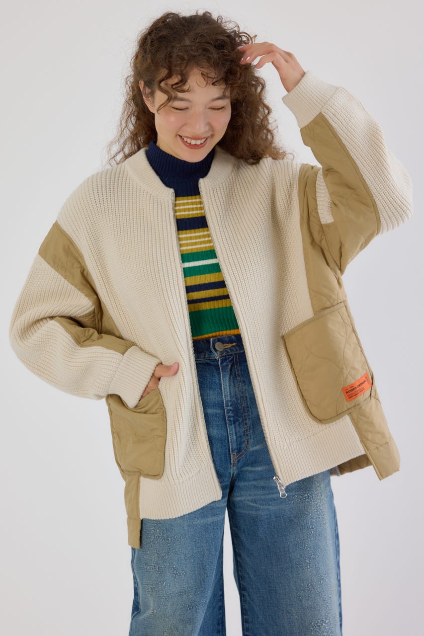 ニット素材とキルト素材のドッキングで、まるでリメイクしたかのような遊び心あるデザインなブルゾン。