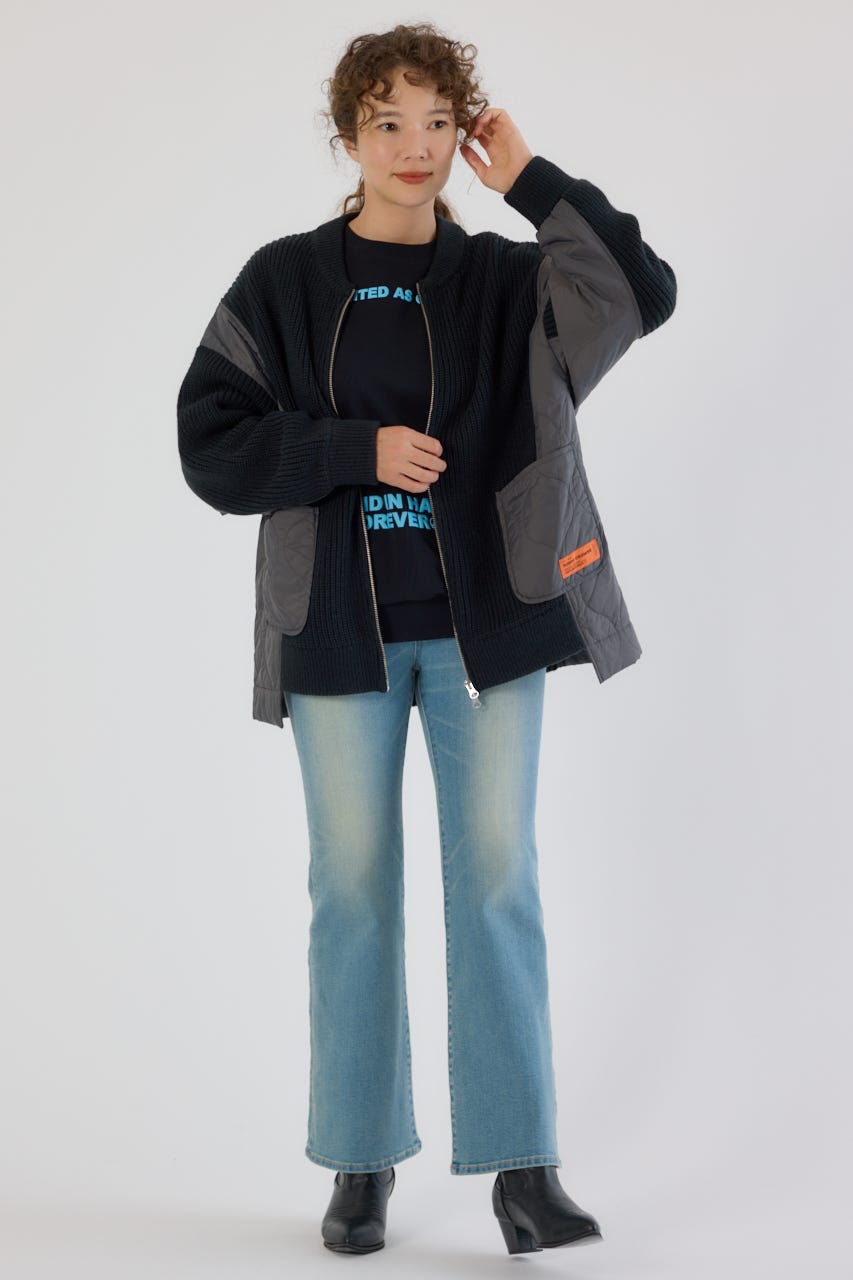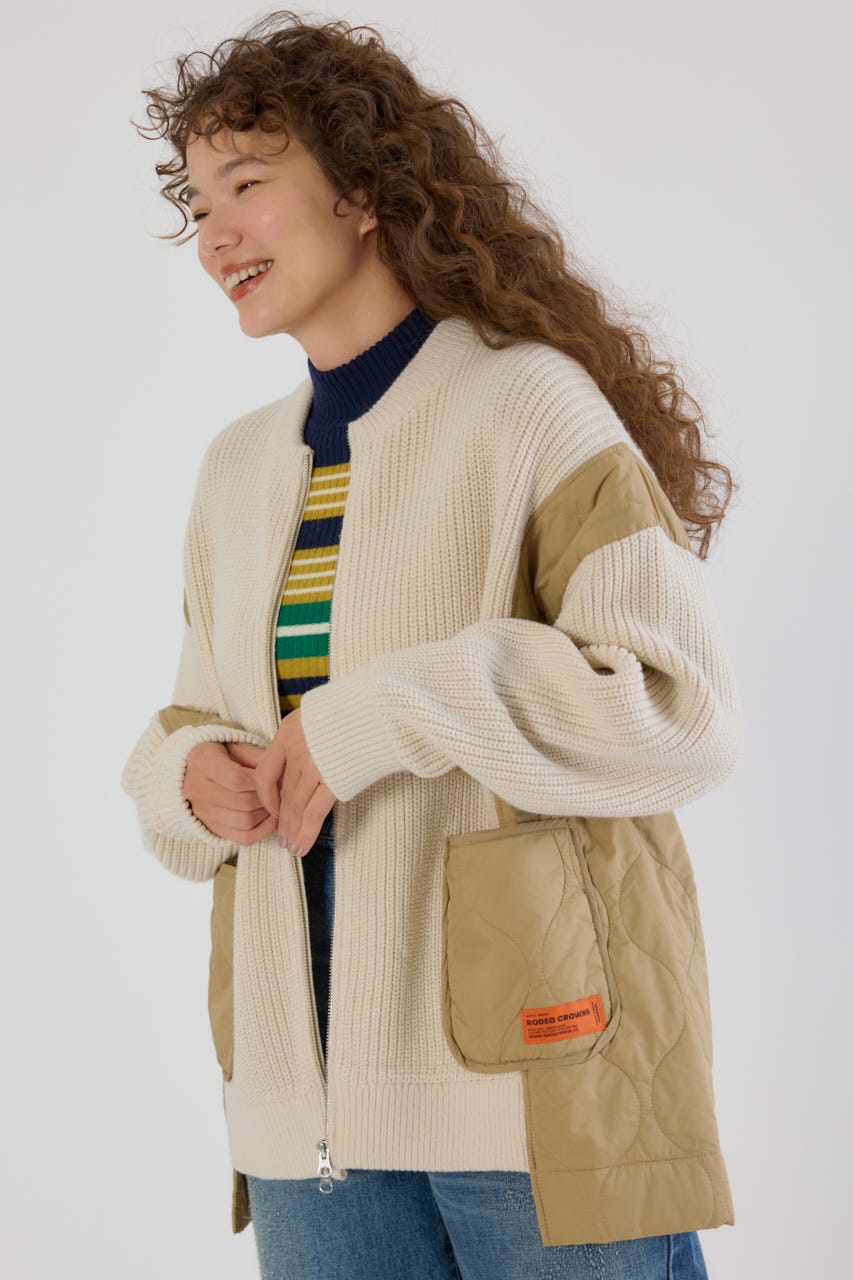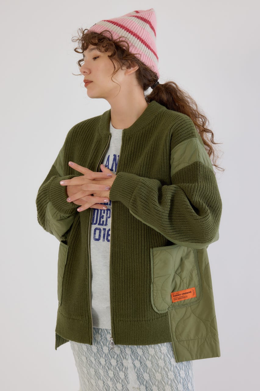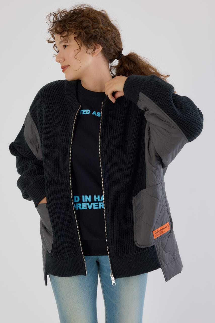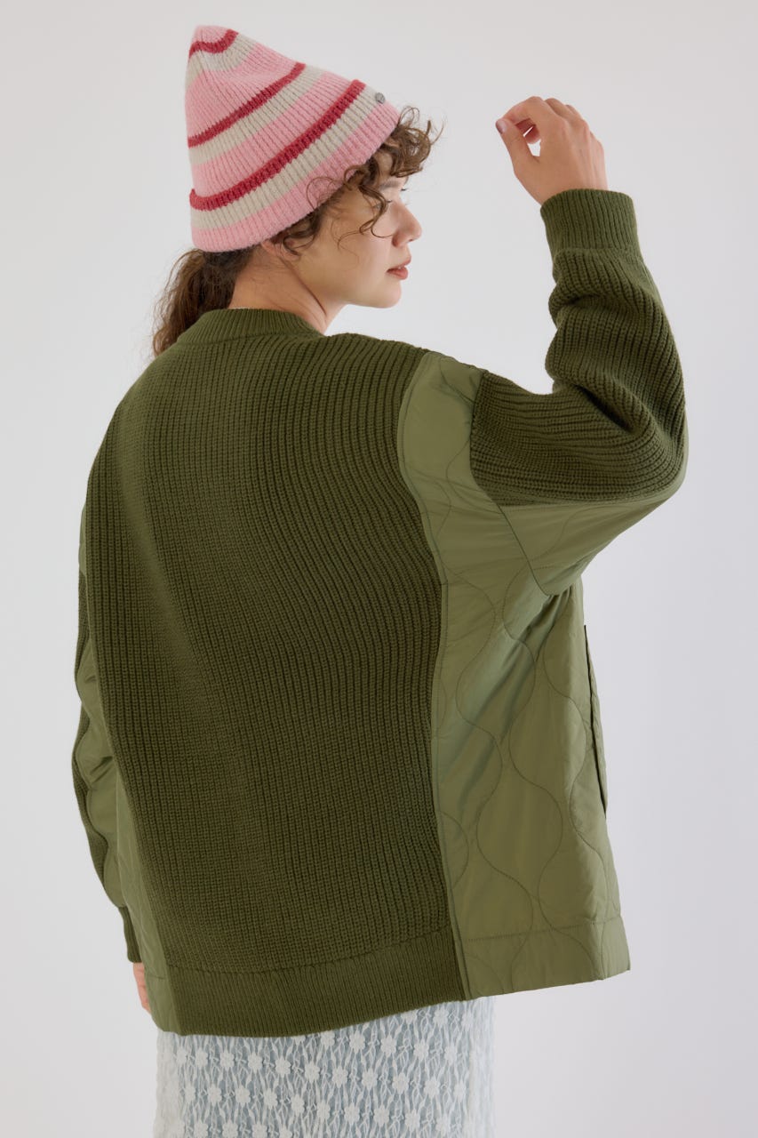 ニット素材とキルト素材のドッキングで、まるでリメイクしたかのような遊び心あるデザインなブルゾン。