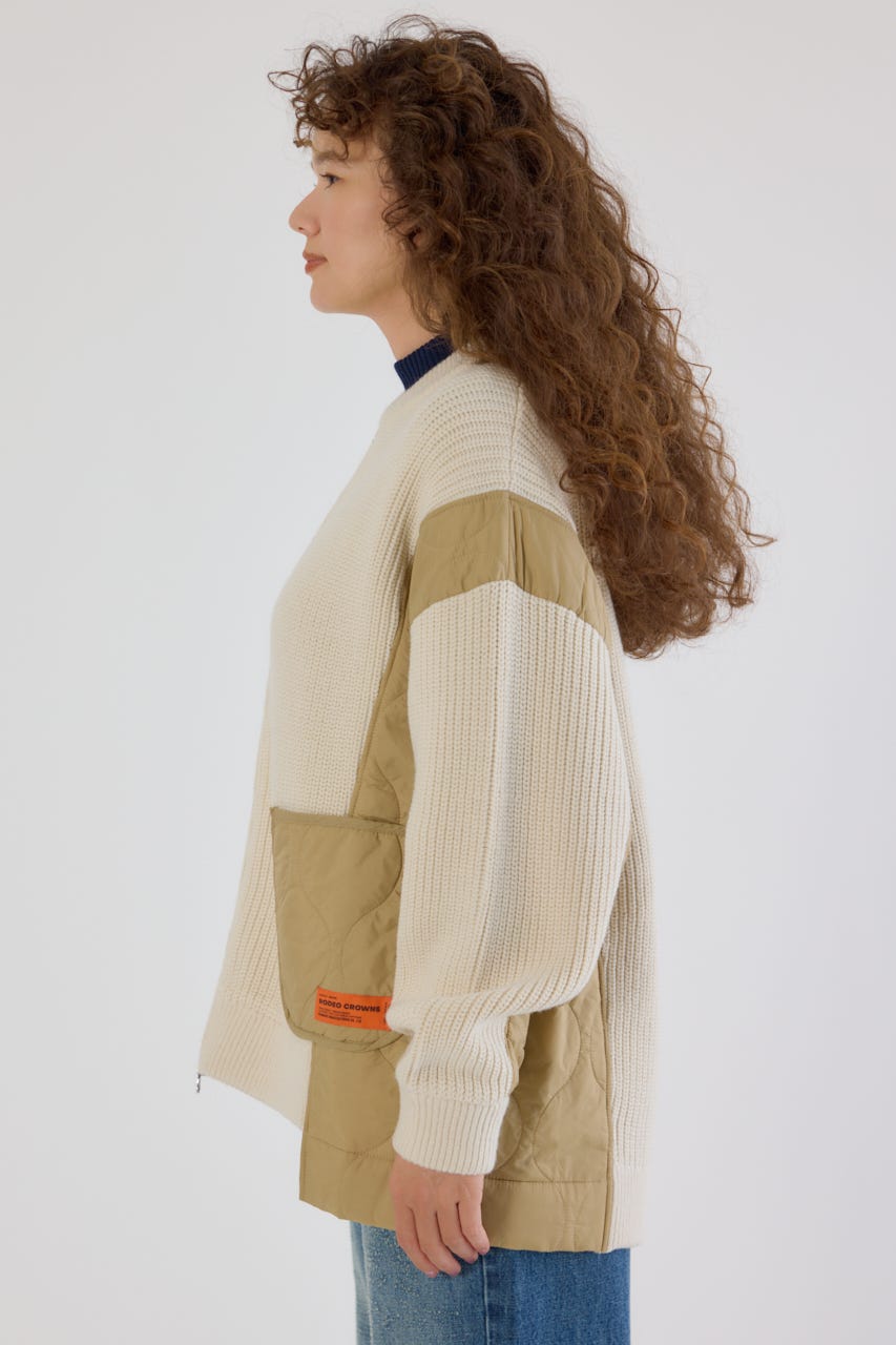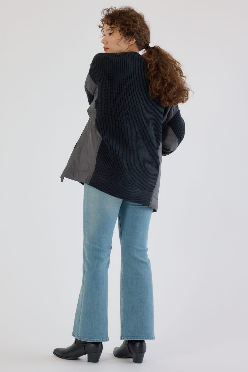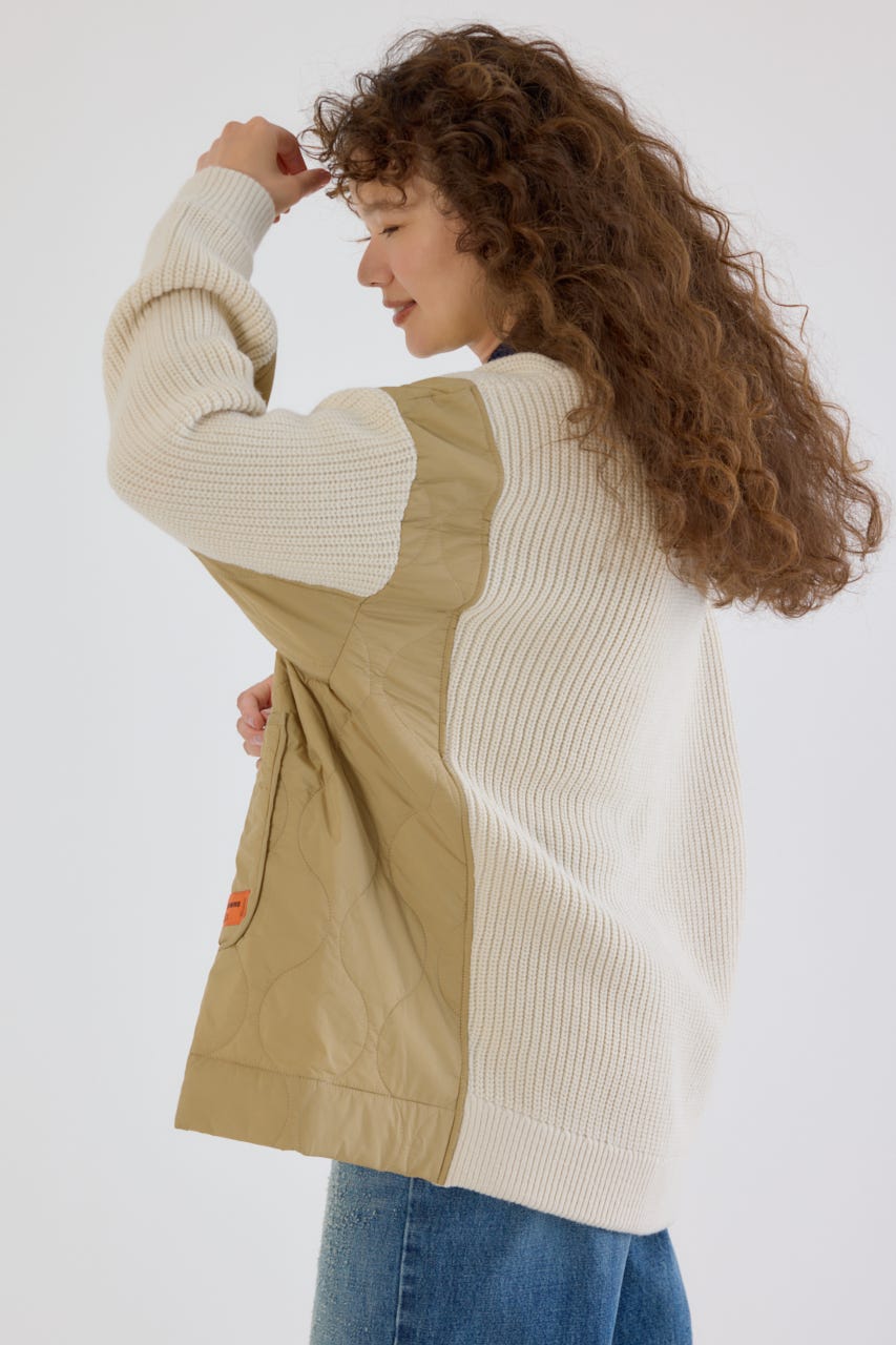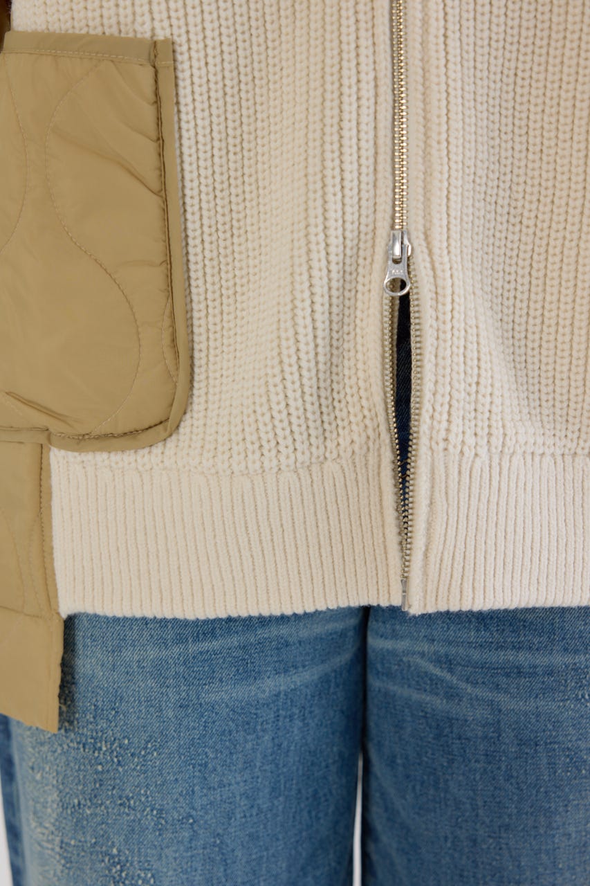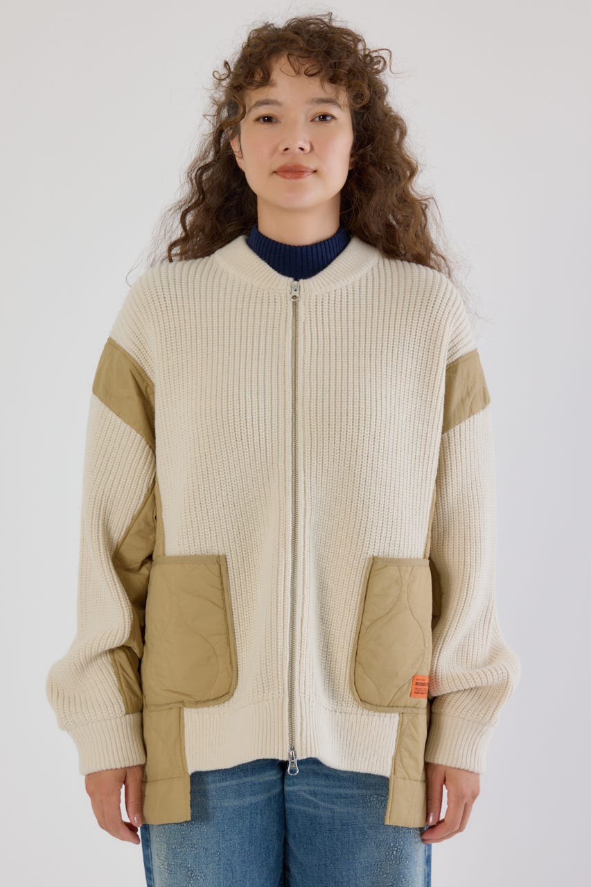 ニット素材とキルト素材のドッキングで、まるでリメイクしたかのような遊び心あるデザインなブルゾン。