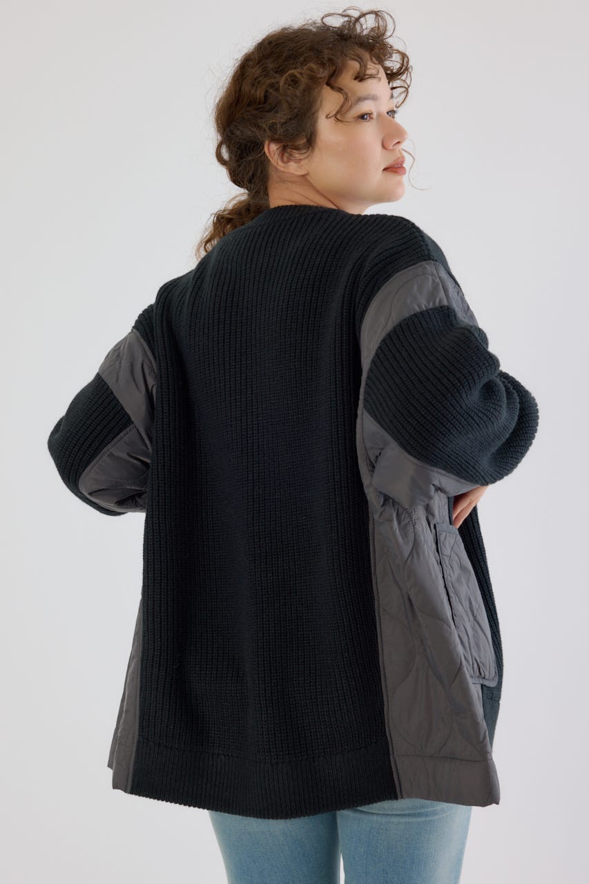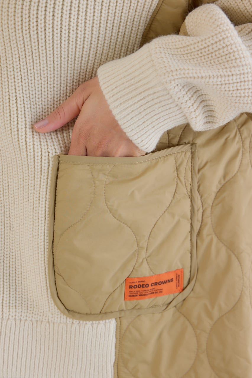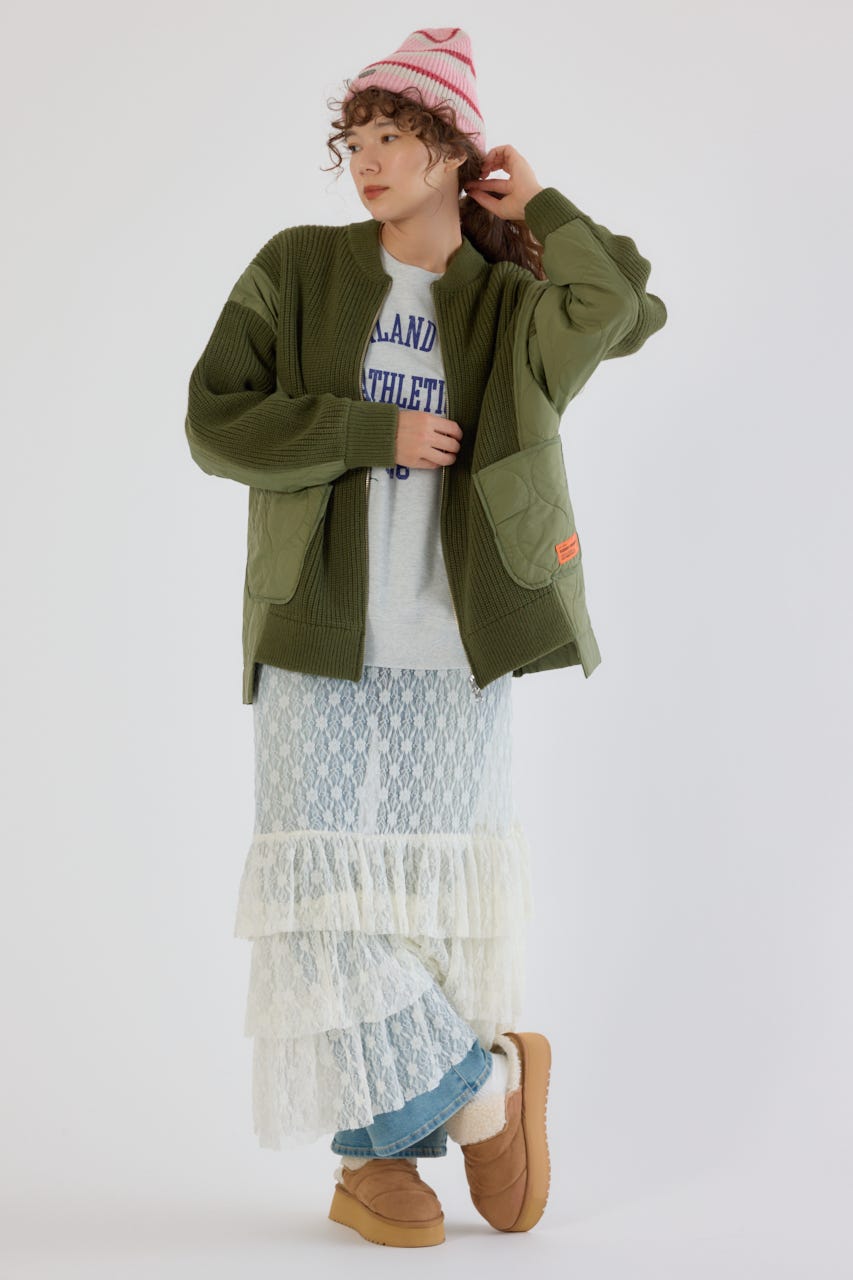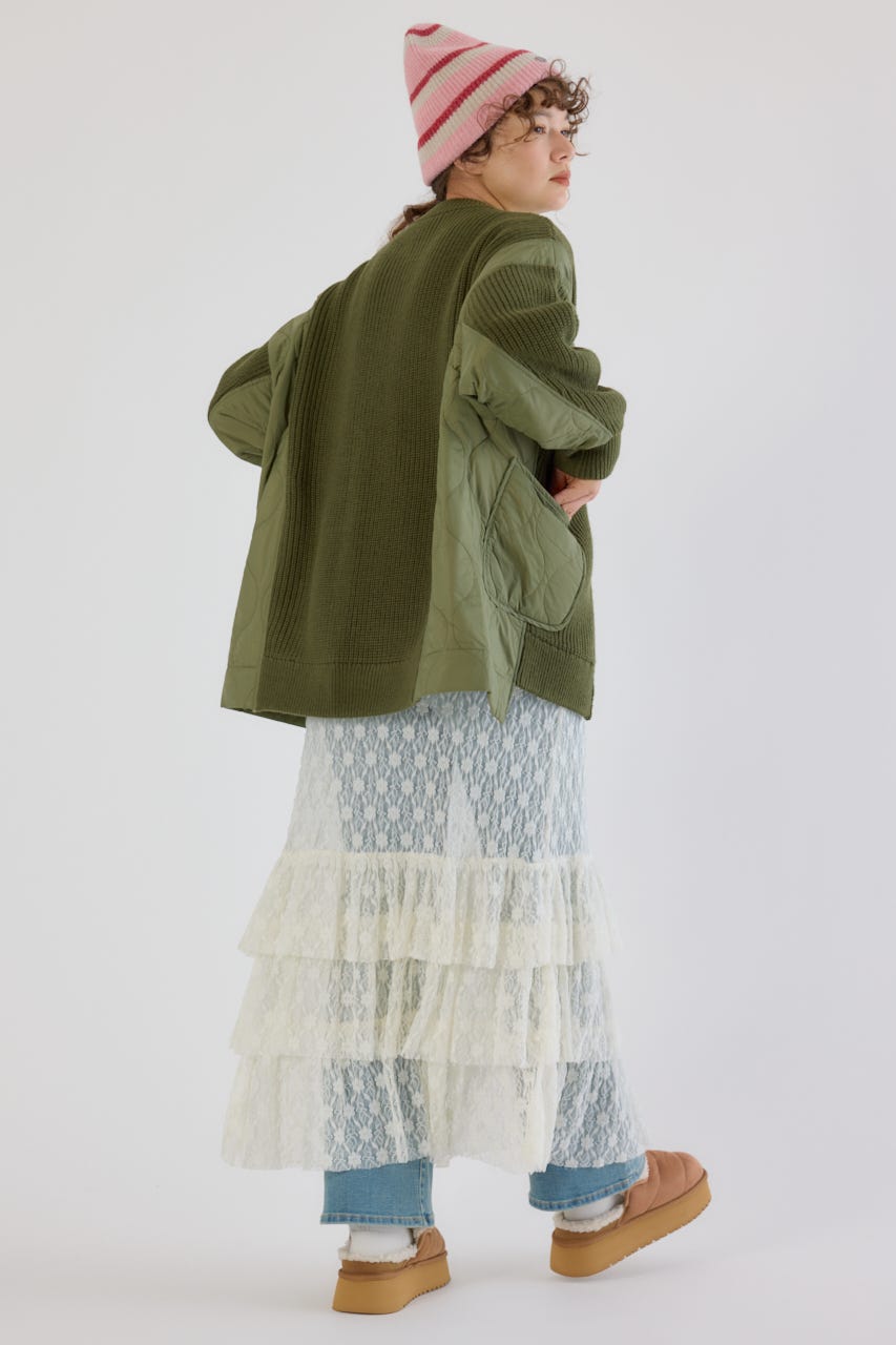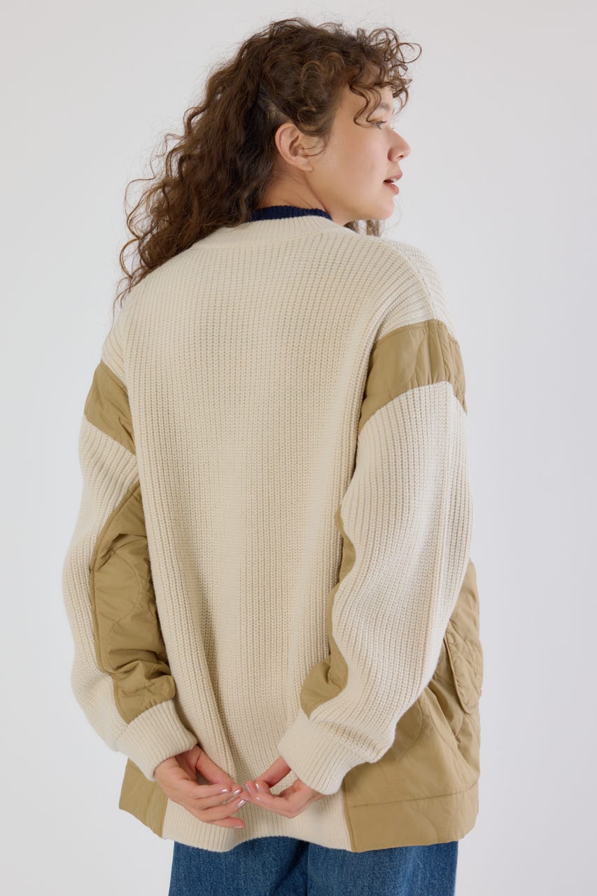 ニット素材とキルト素材のドッキングで、まるでリメイクしたかのような遊び心あるデザインなブルゾン。