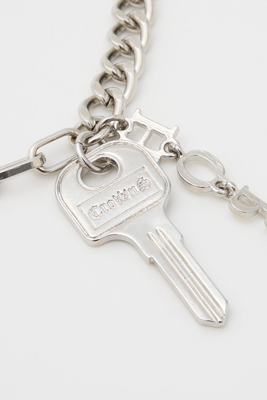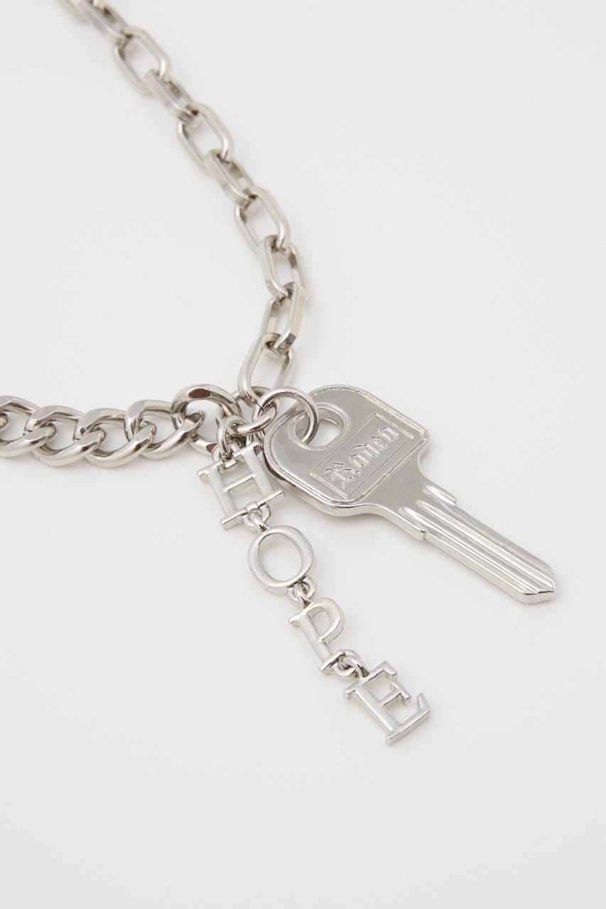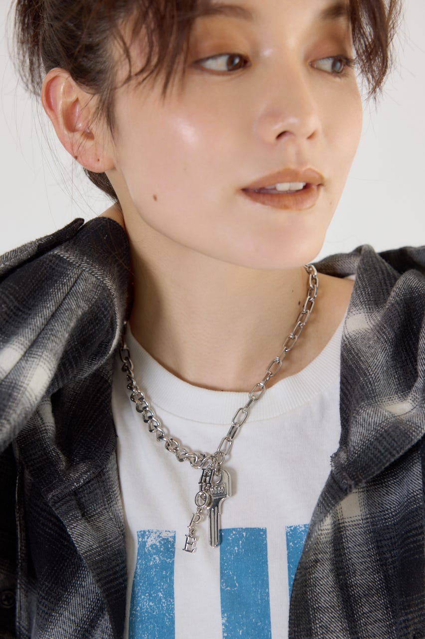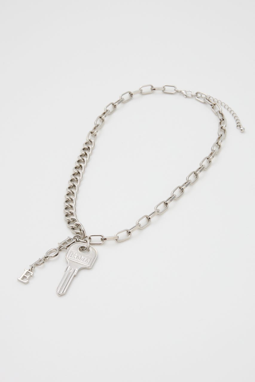 キーモチーフとイニシャルモチーフが組み合わさった個性的なネックレス。