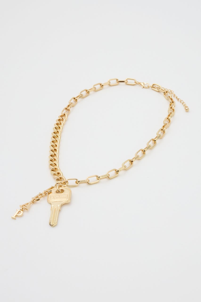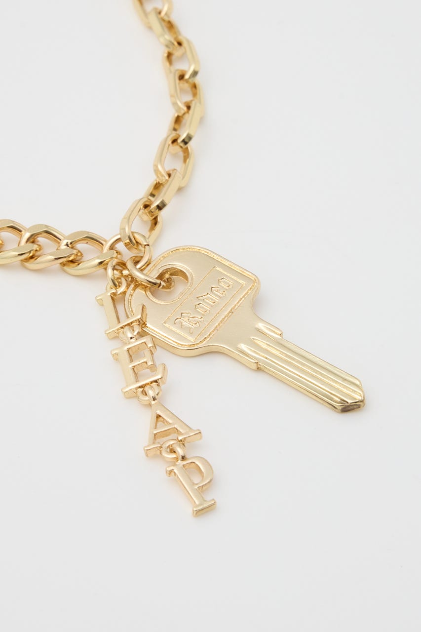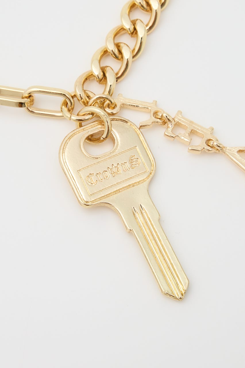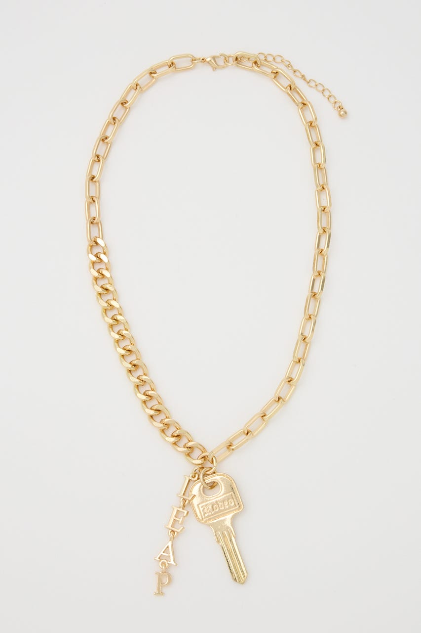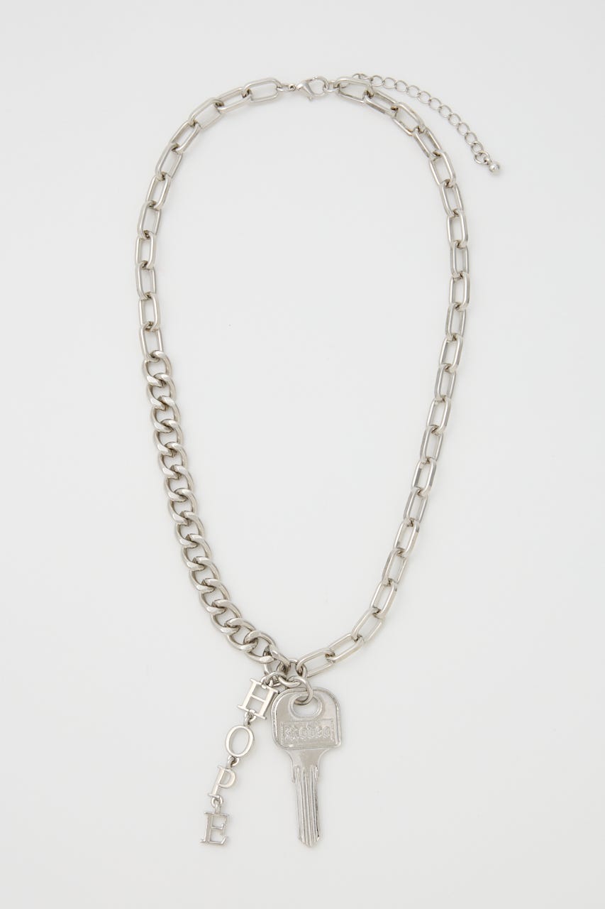 キーモチーフとイニシャルモチーフが組み合わさった個性的なネックレス。