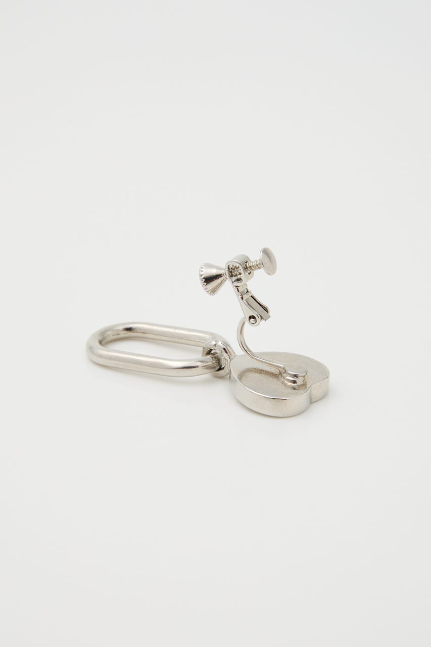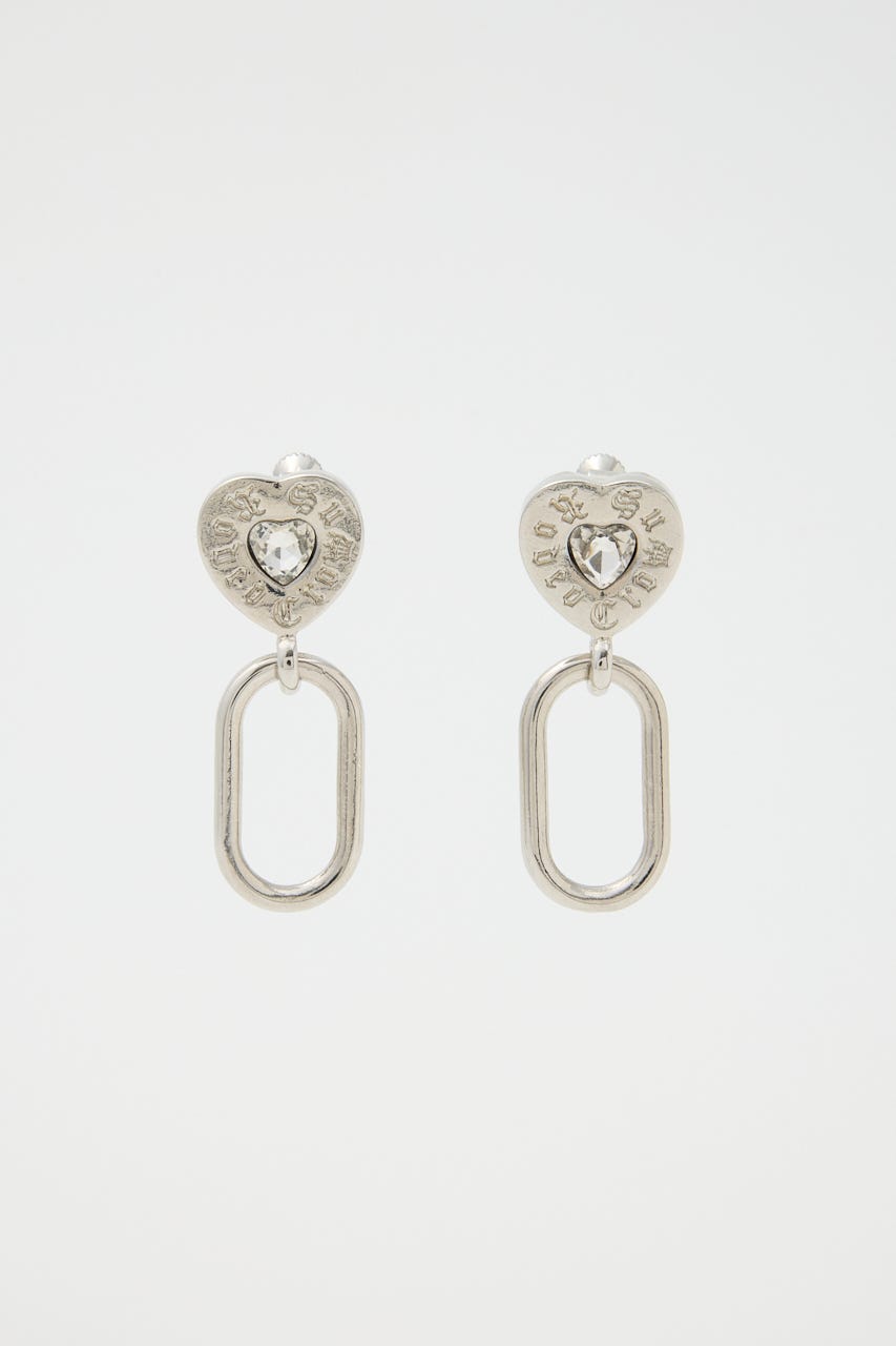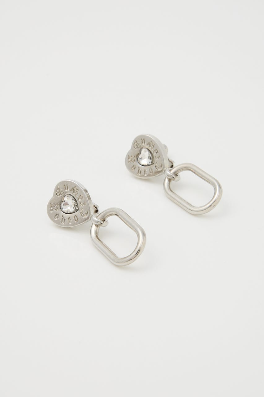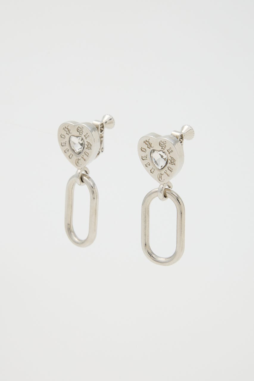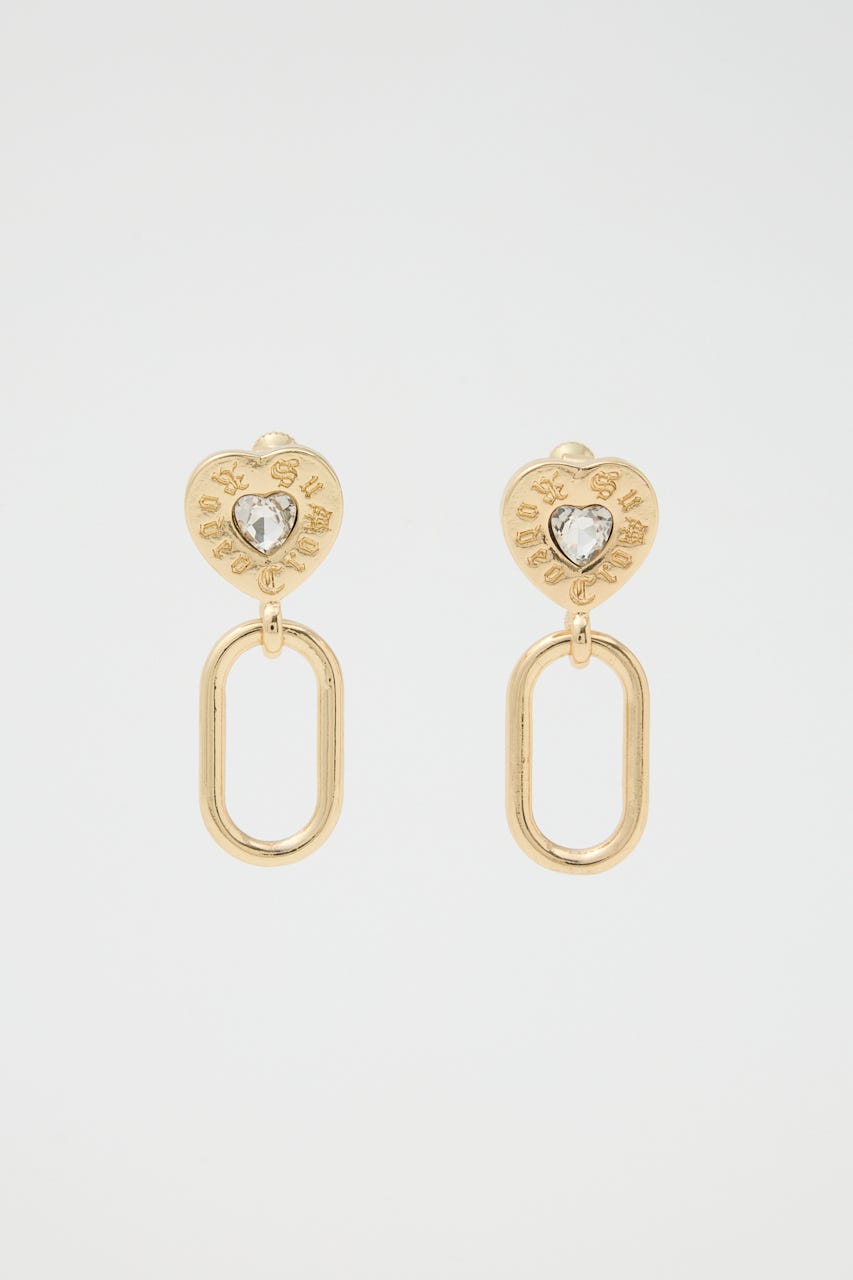 ハートチャームにクラシカルな印象のロゴが刻印された大人っぽいイヤリング。
