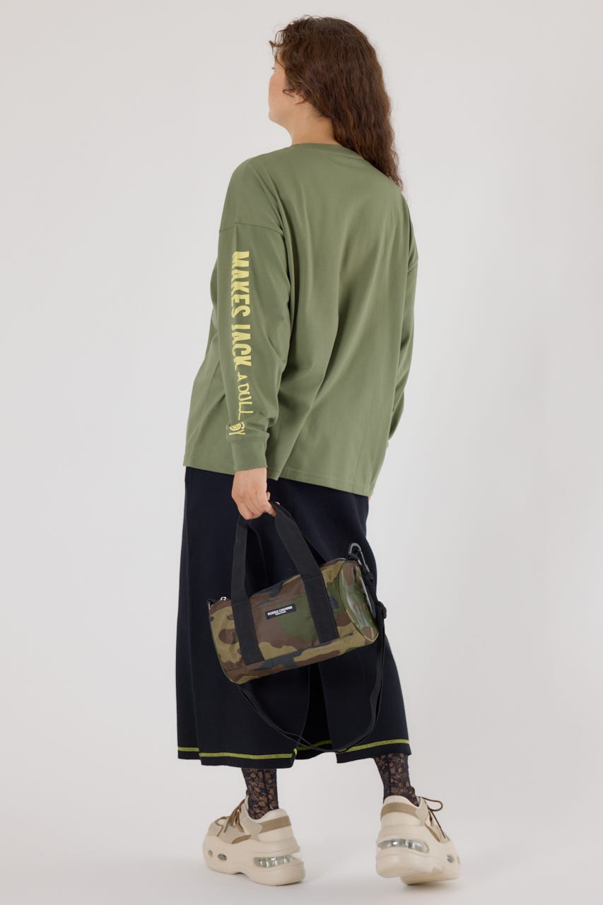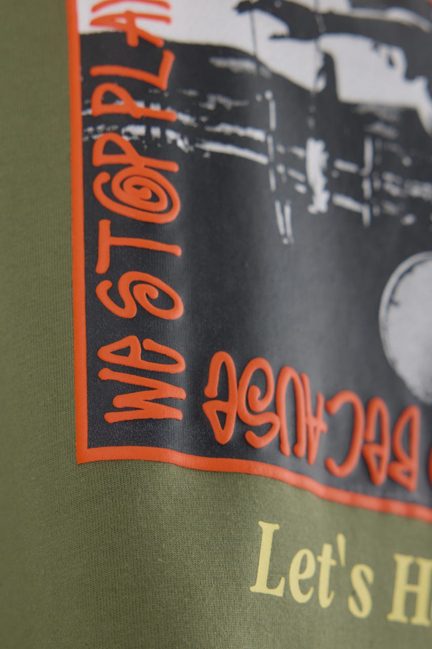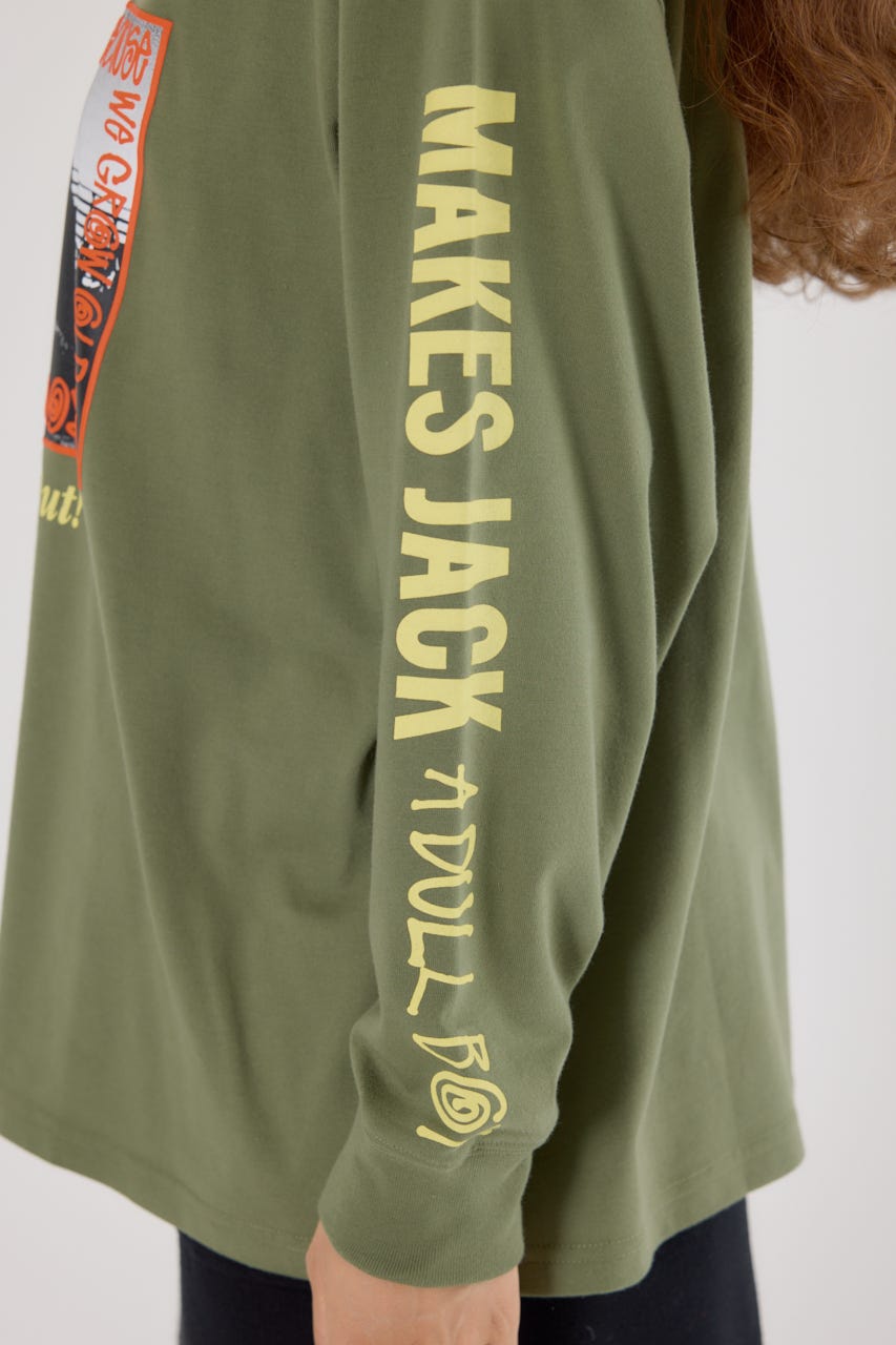 バックのフォトまわりのグラフィティメッセージが発泡プリントになっていて遊び心のあるロンTです。