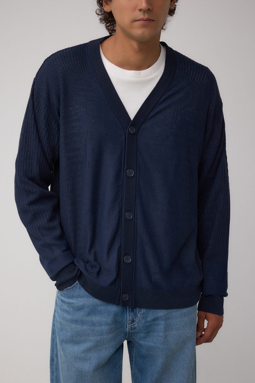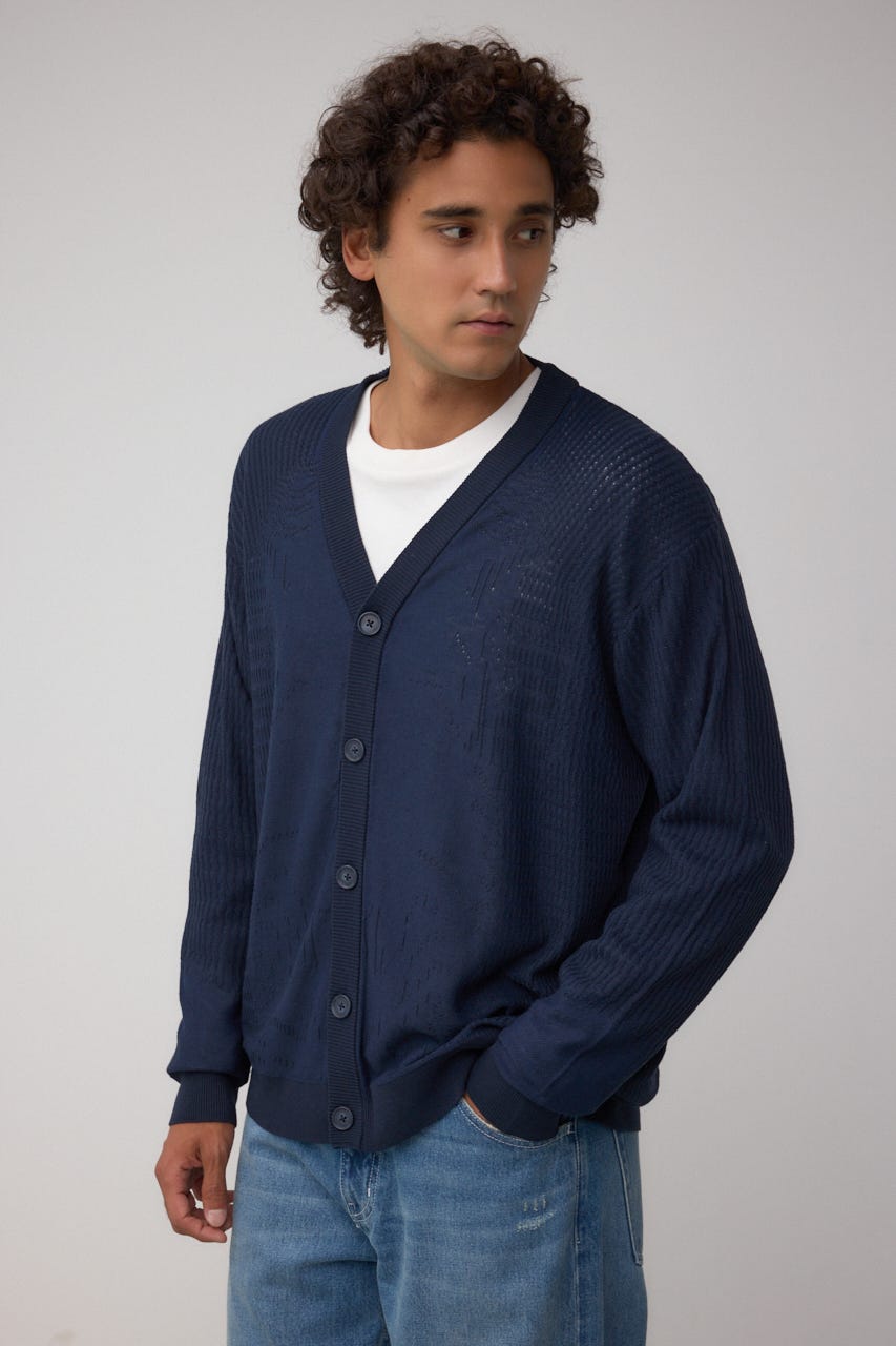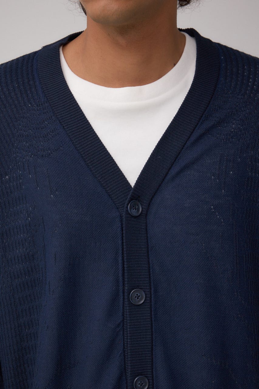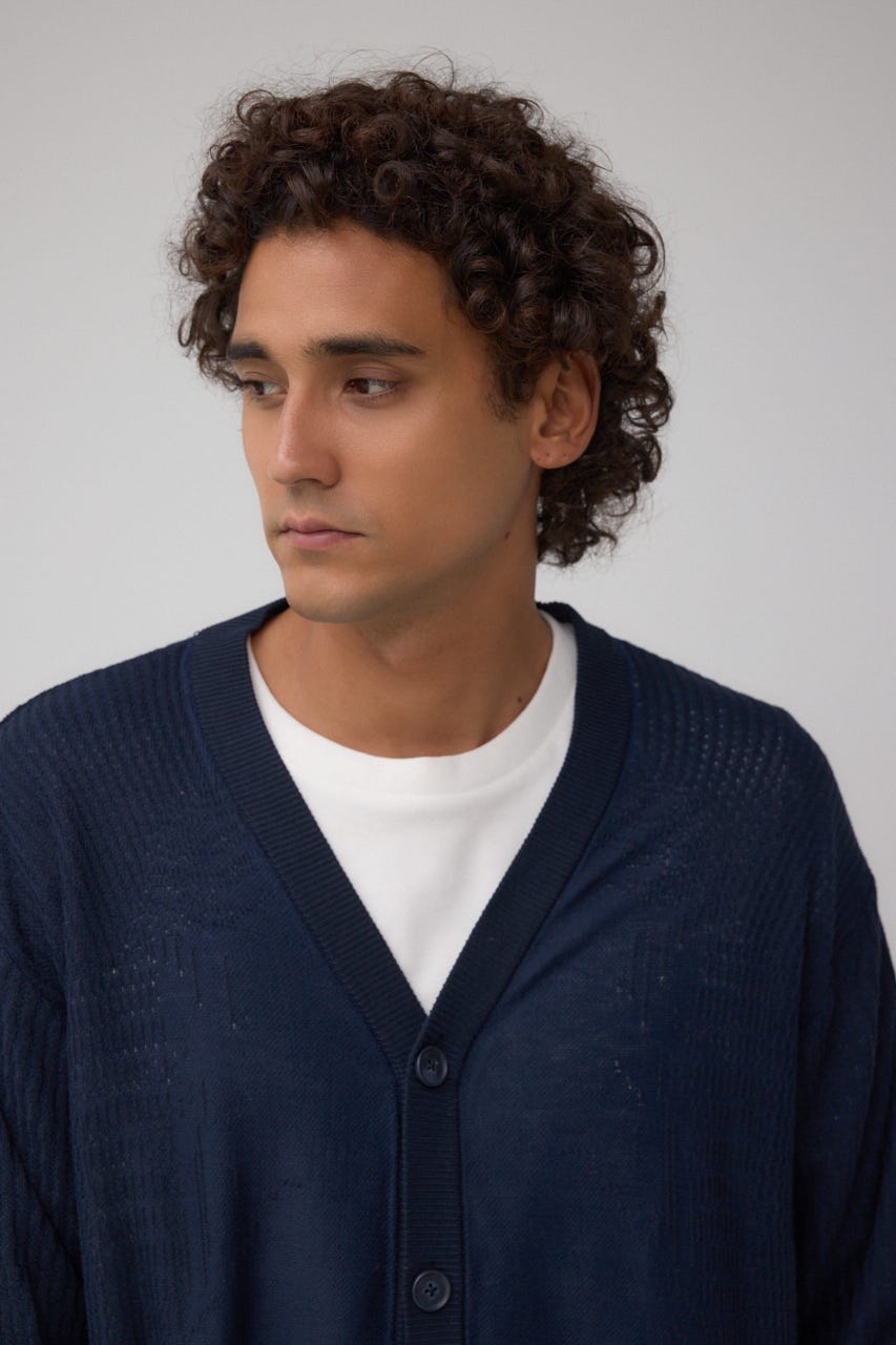 シャドーウィーブのオリジナル編み柄によるシアーな表情が特徴のライトニットカーディガン。
