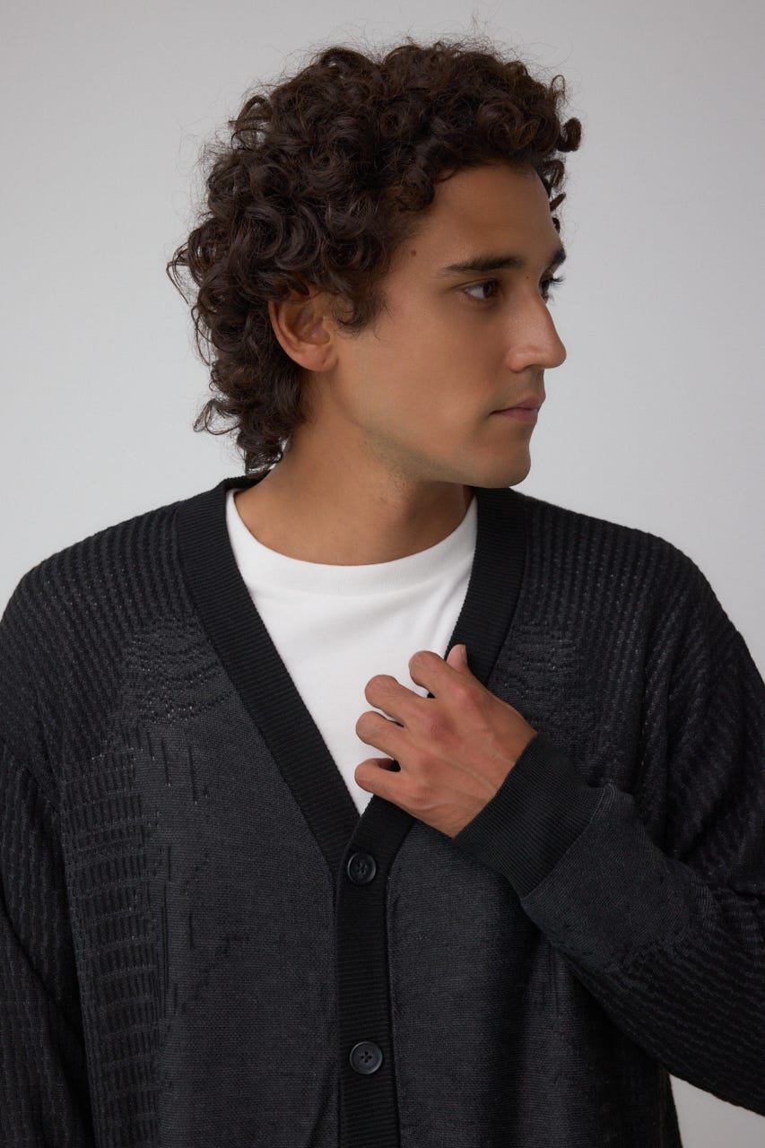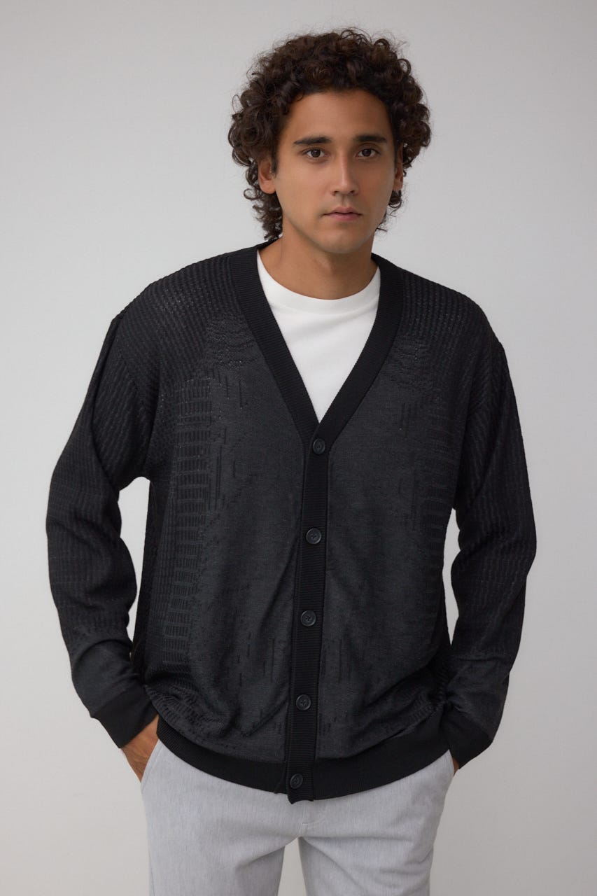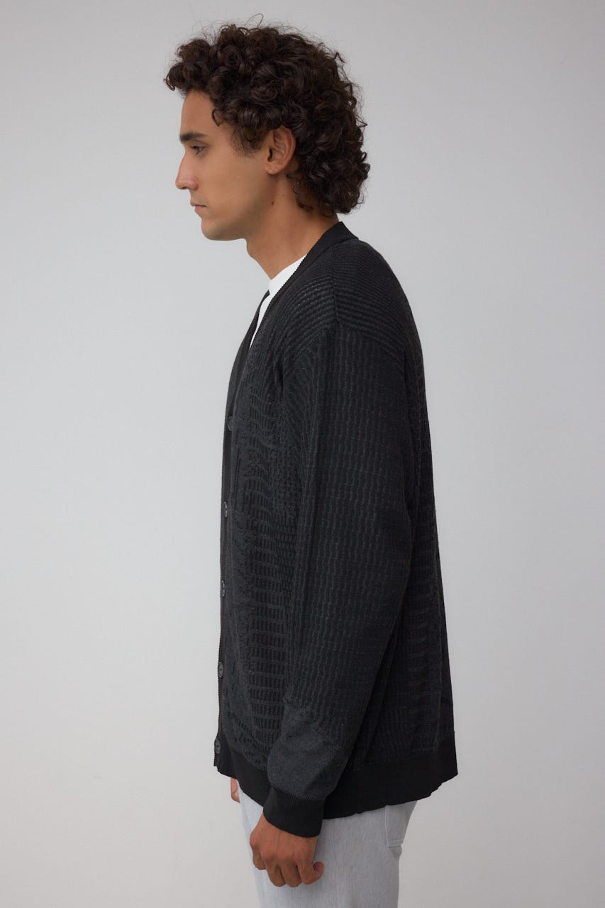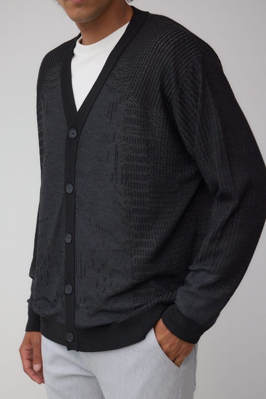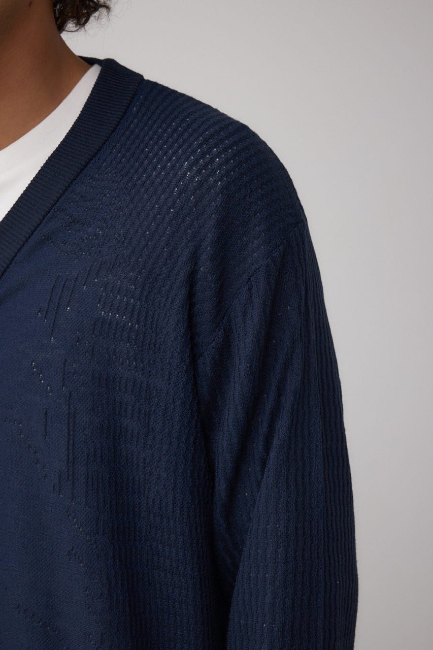 シャドーウィーブのオリジナル編み柄によるシアーな表情が特徴のライトニットカーディガン。