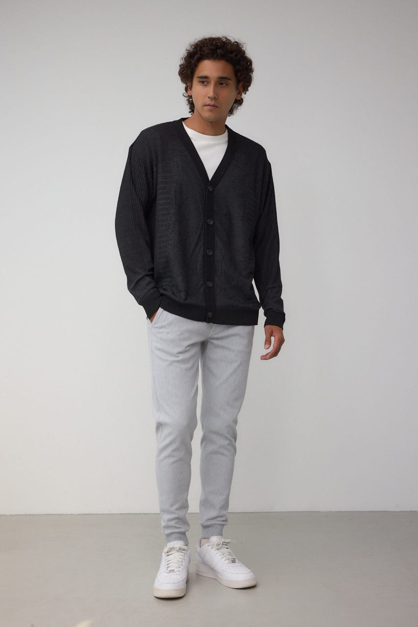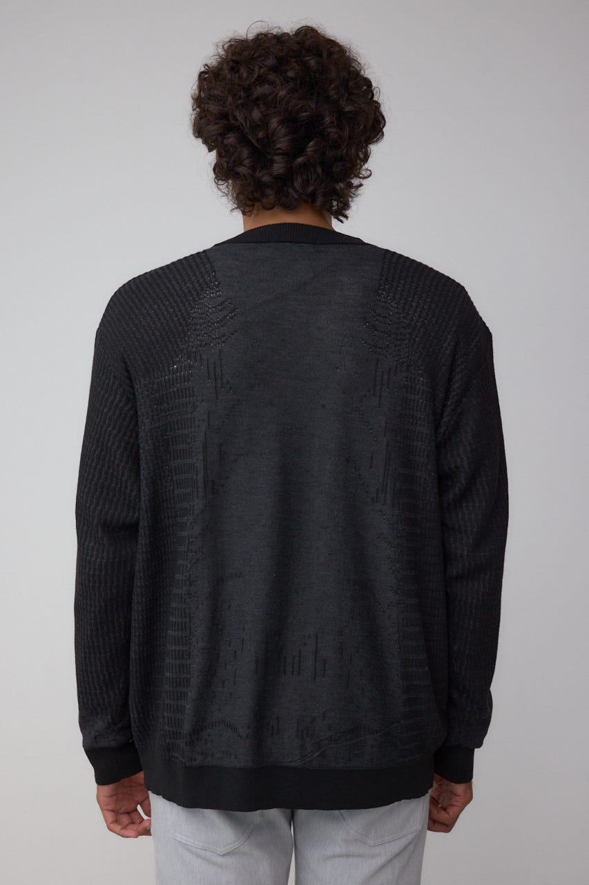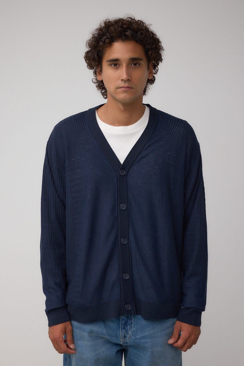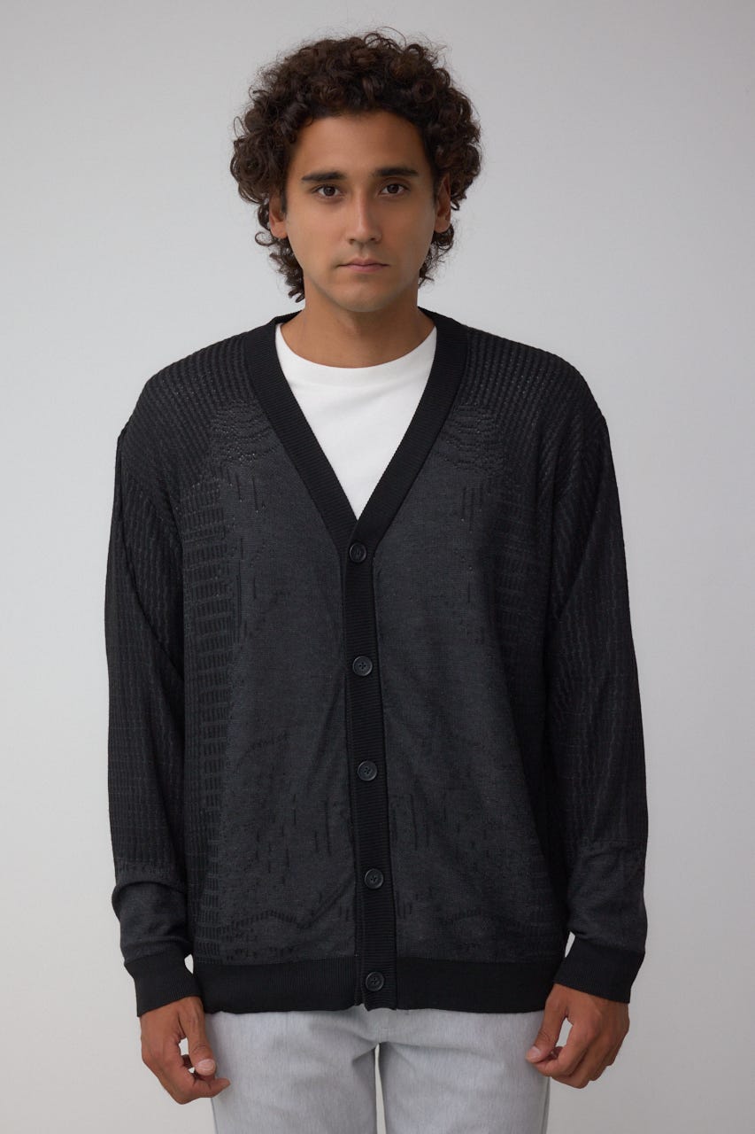 シャドーウィーブのオリジナル編み柄によるシアーな表情が特徴のライトニットカーディガン。
