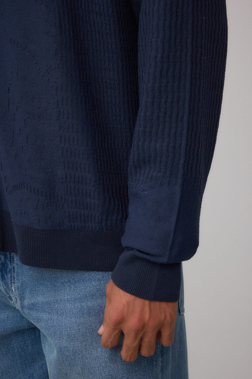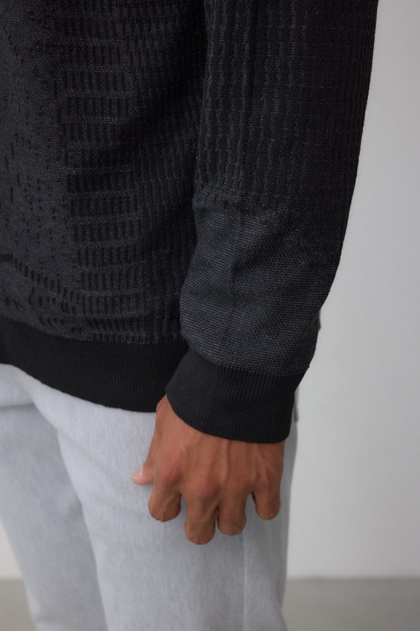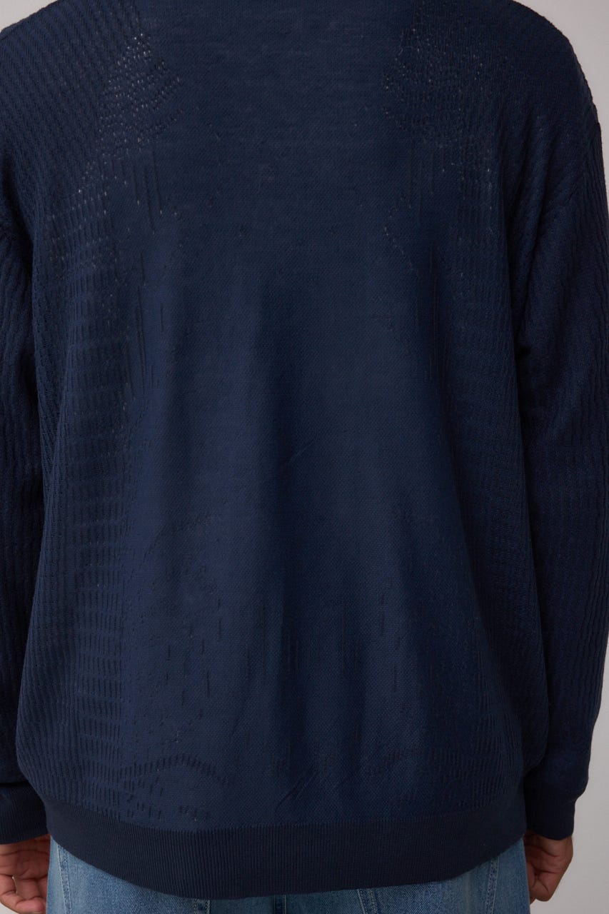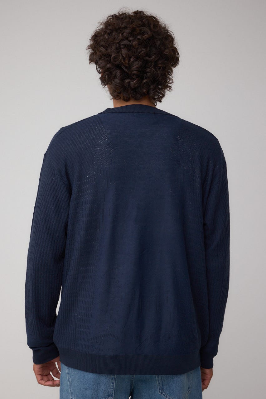 シアーニットをメンズ商品でありながら、AZULオリジナルの編み柄で表現。