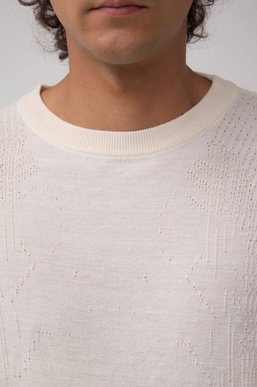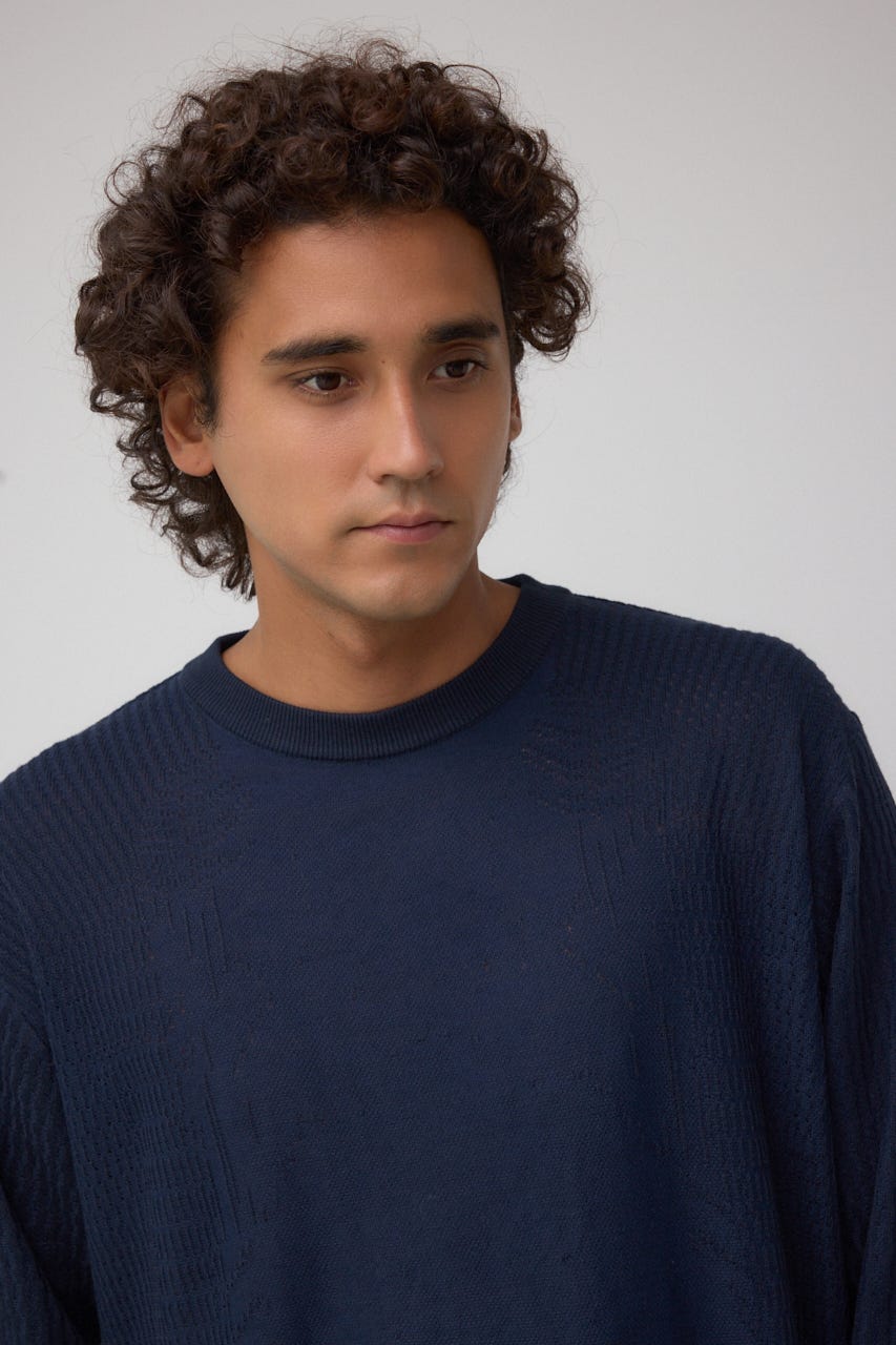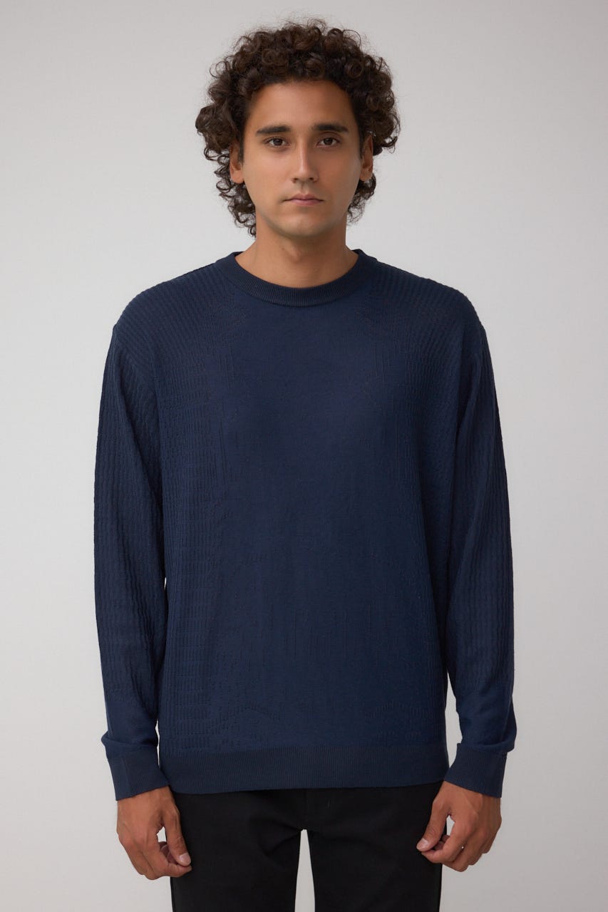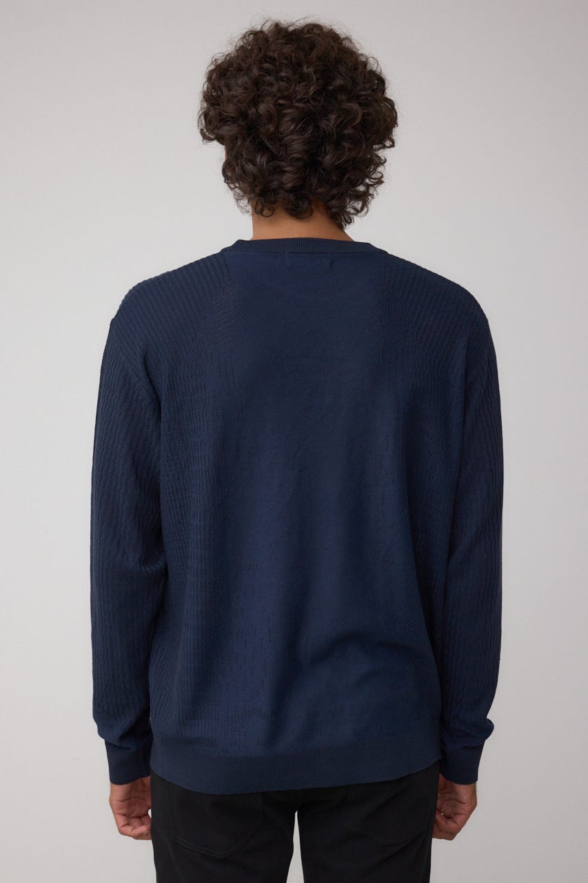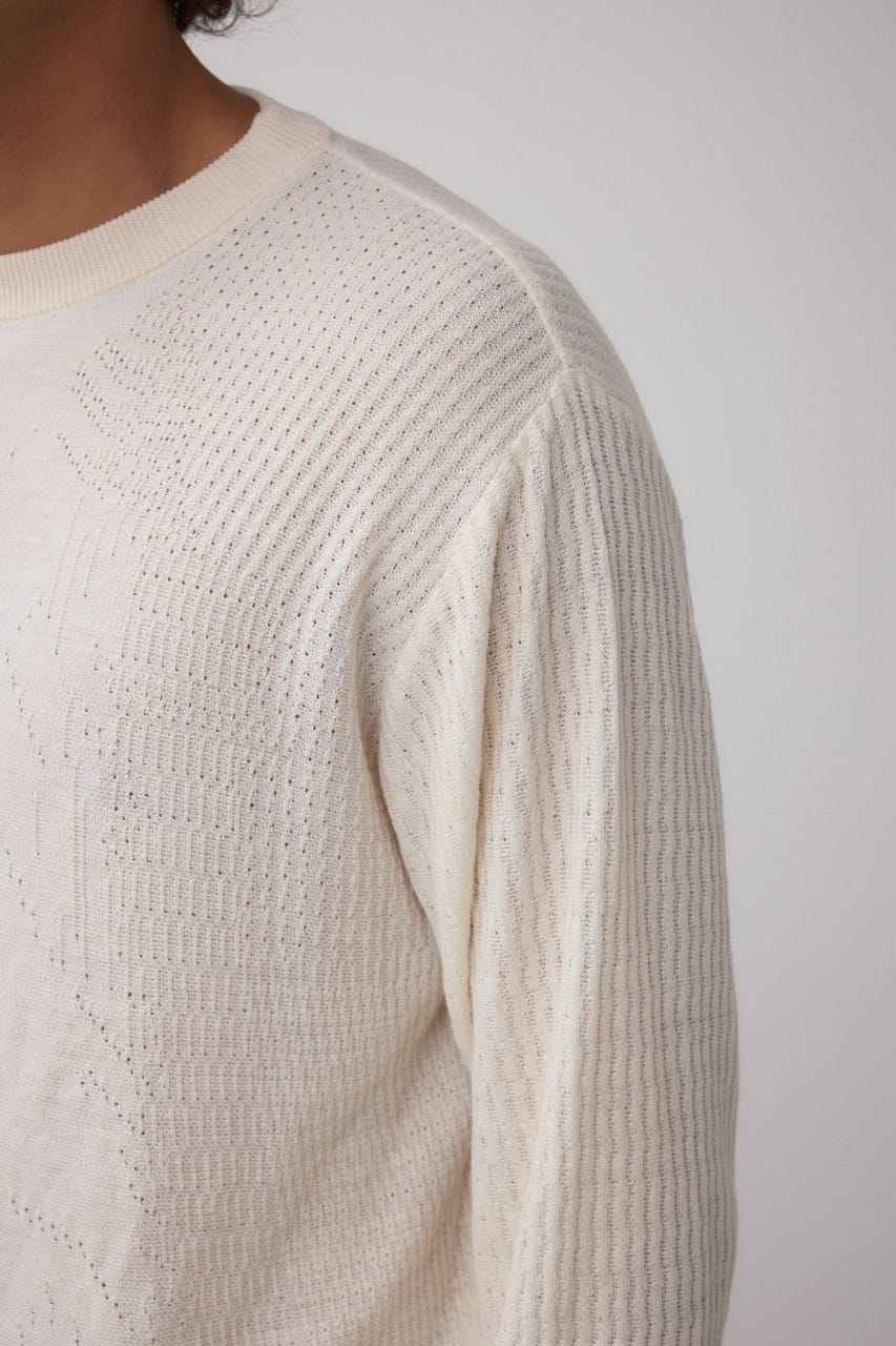 シアーニットをメンズ商品でありながら、AZULオリジナルの編み柄で表現。