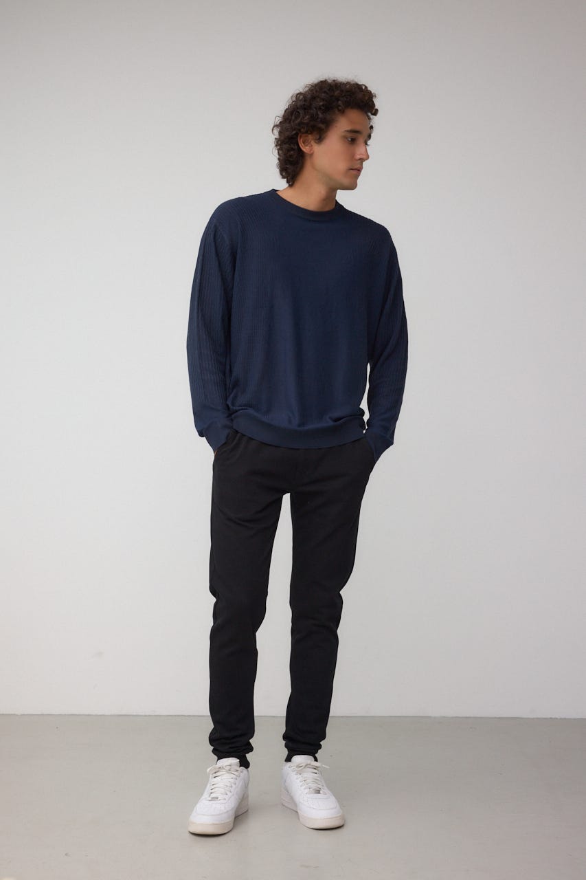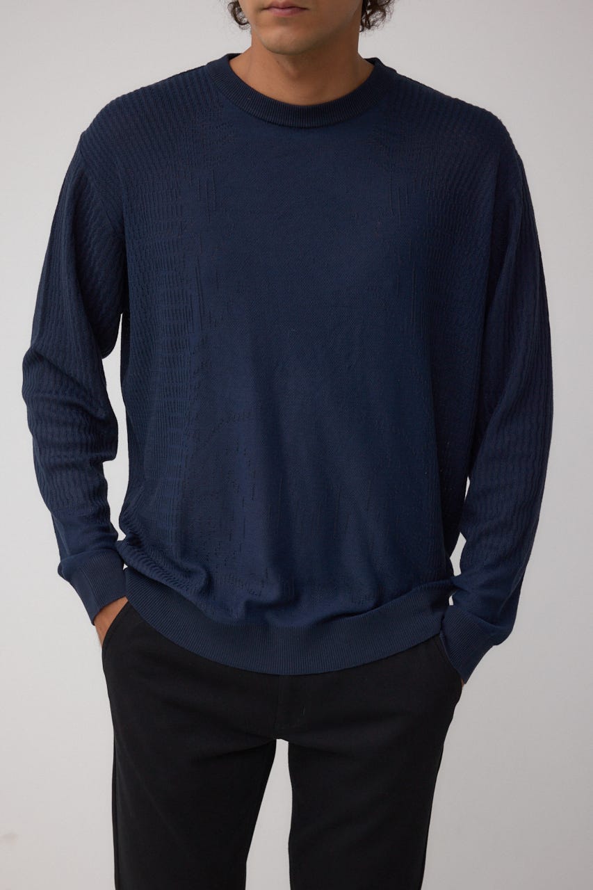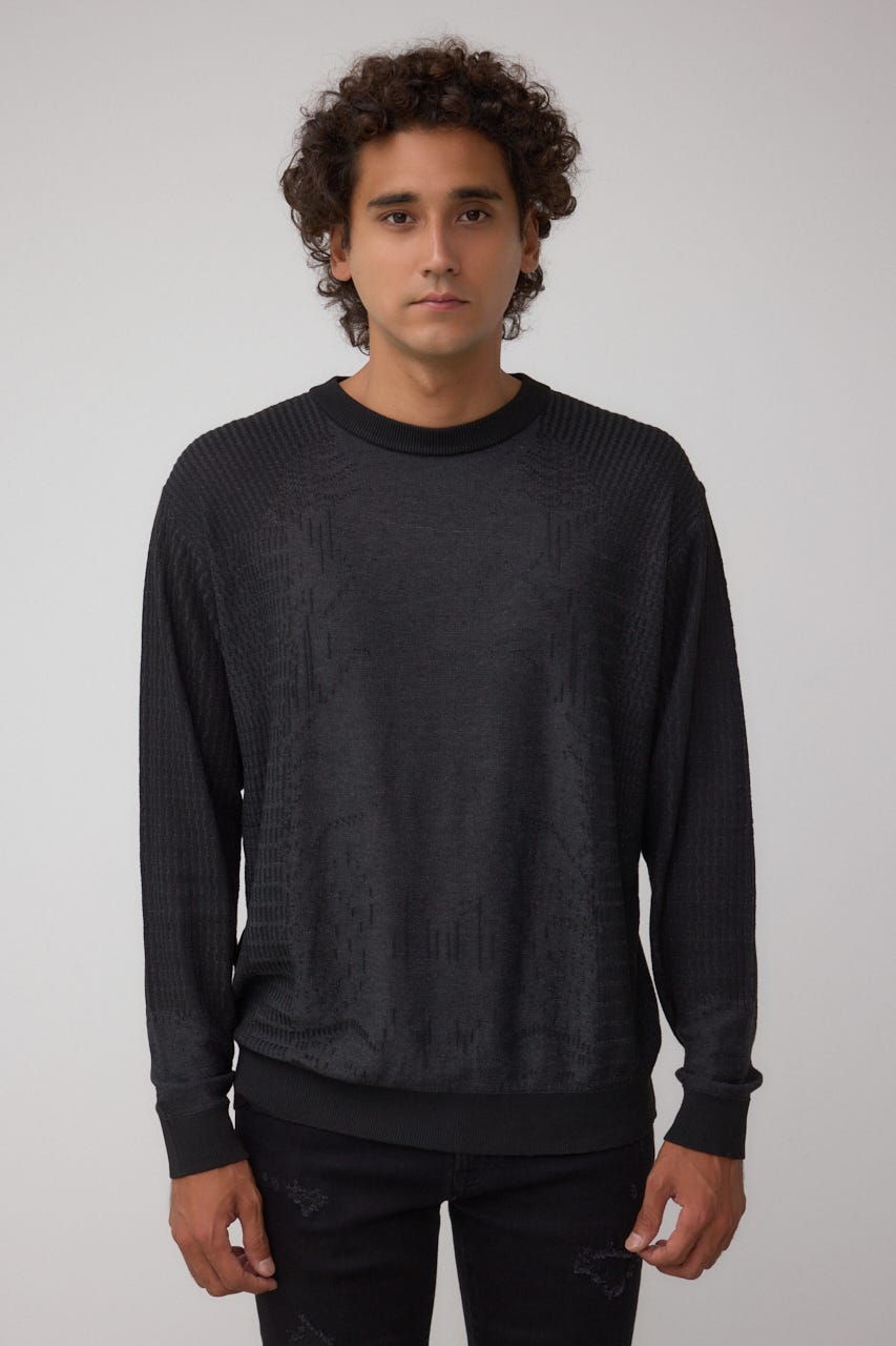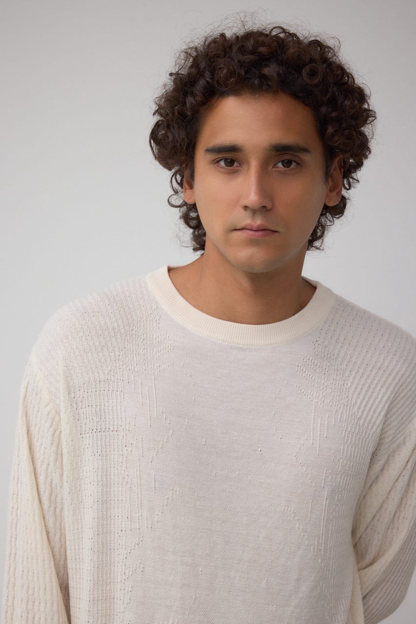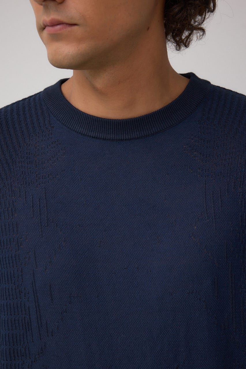 シアーニットをメンズ商品でありながら、AZULオリジナルの編み柄で表現。
