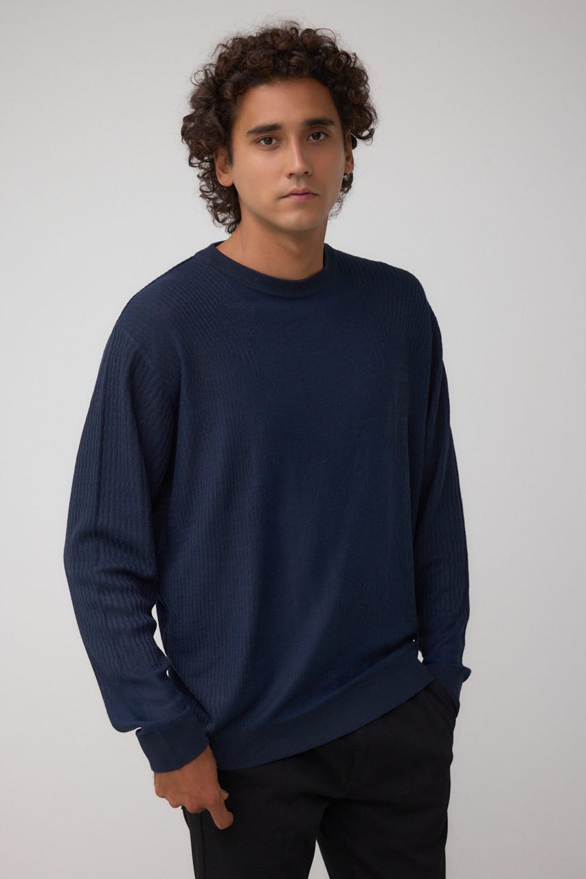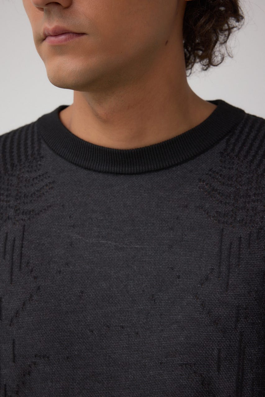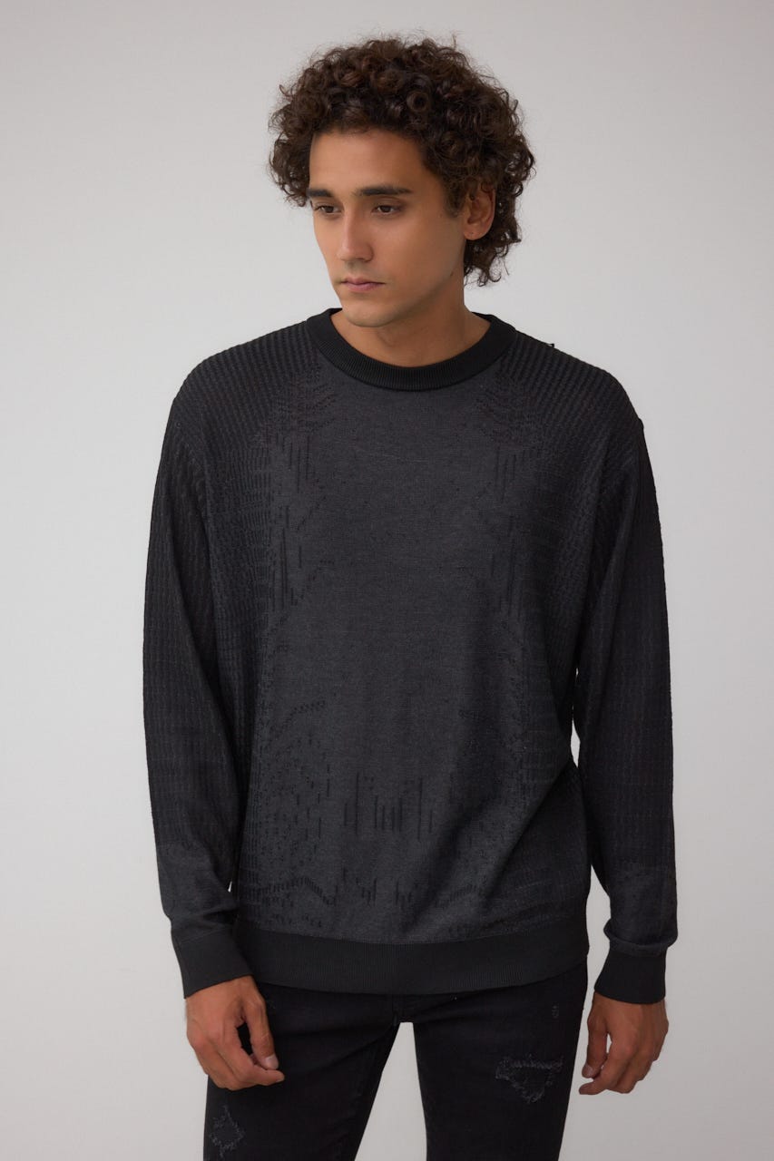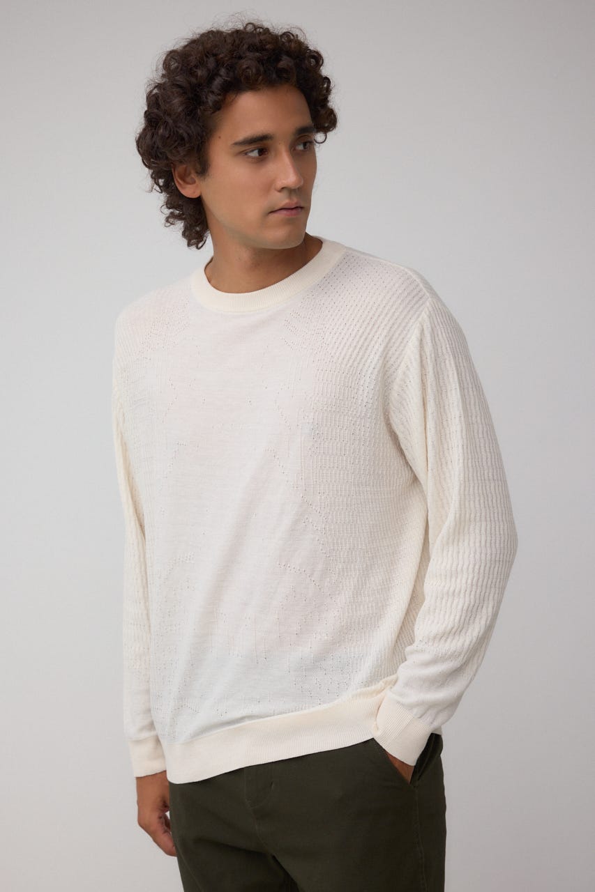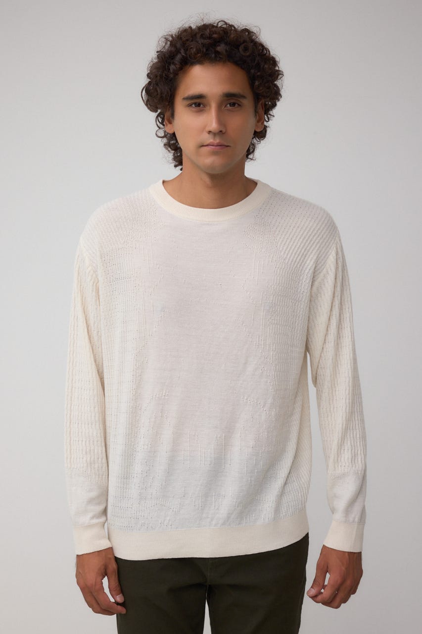 シアーニットをメンズ商品でありながら、AZULオリジナルの編み柄で表現。