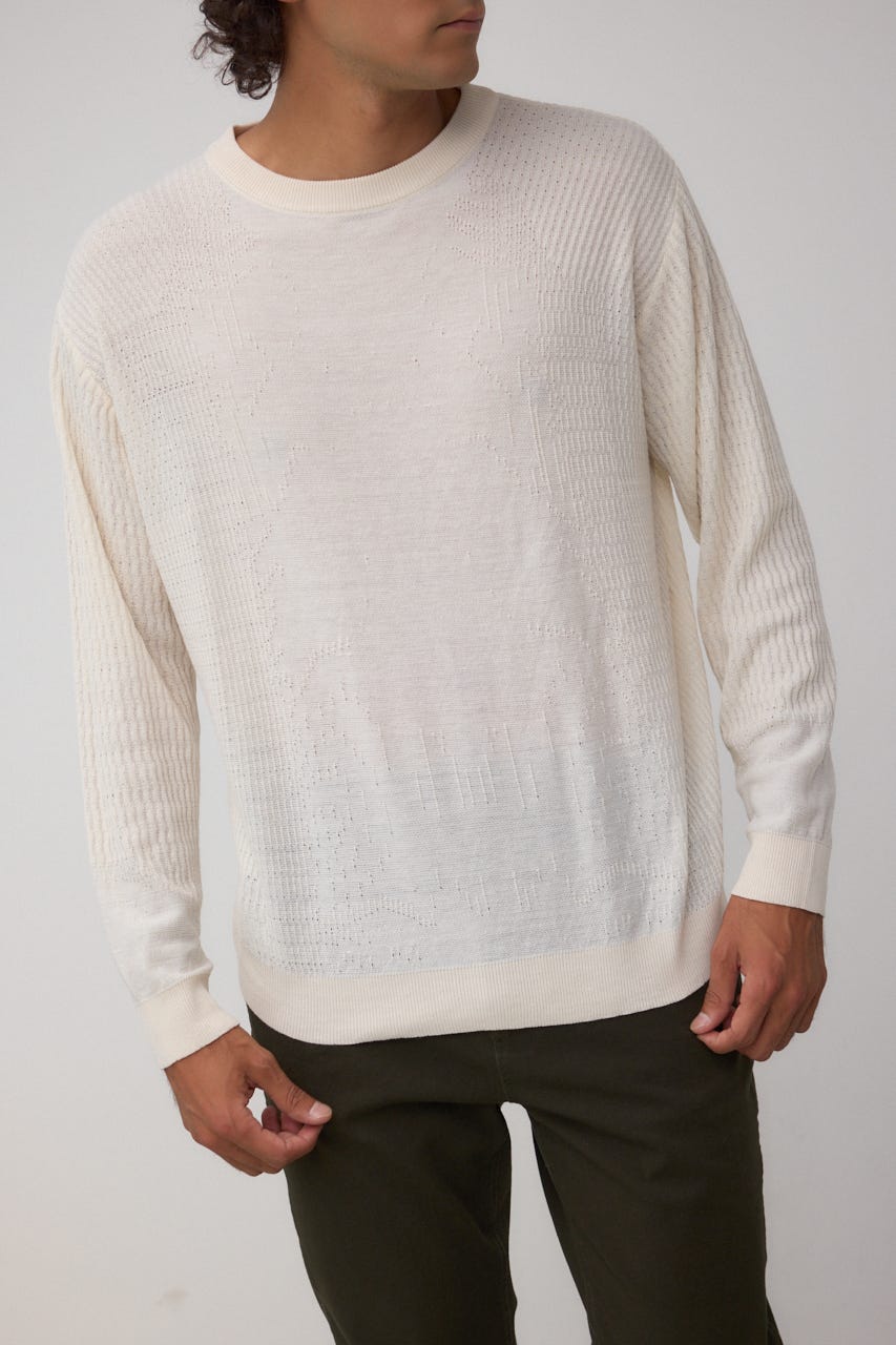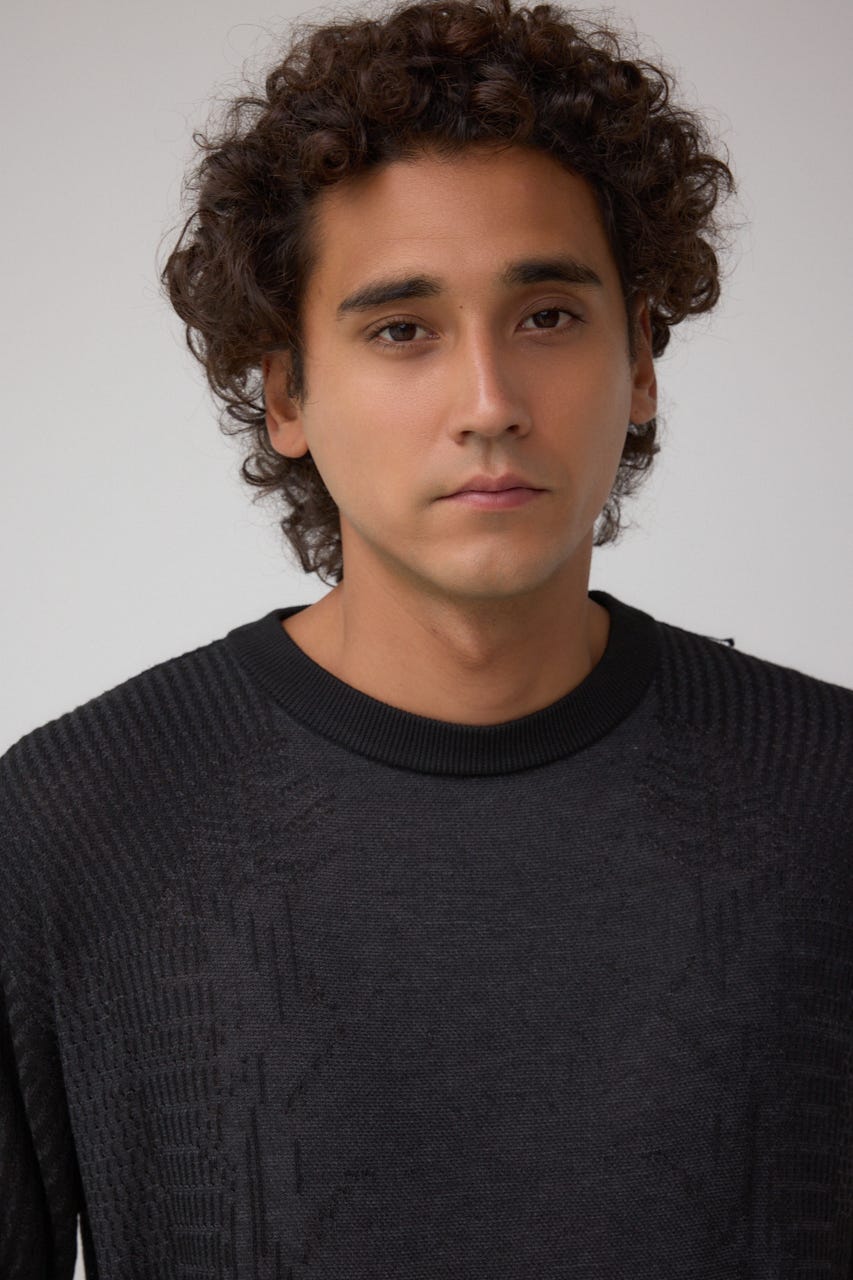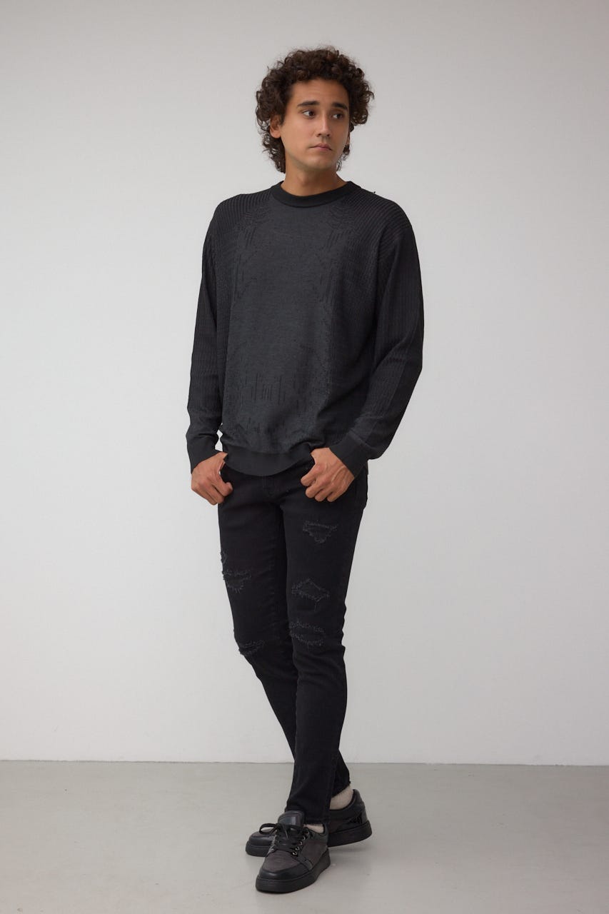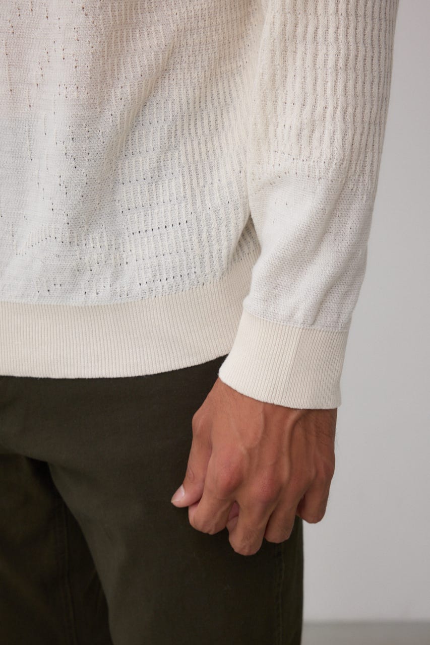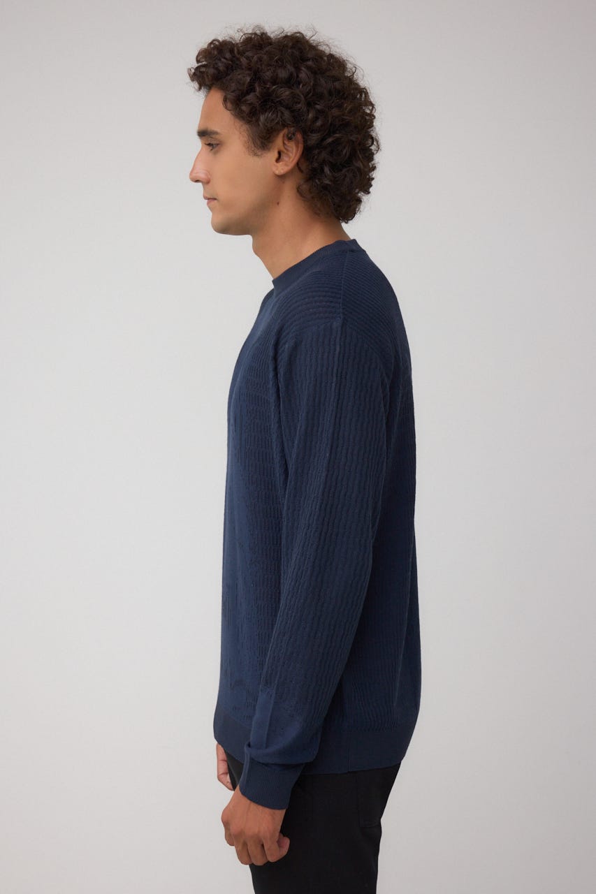 シアーニットをメンズ商品でありながら、AZULオリジナルの編み柄で表現。