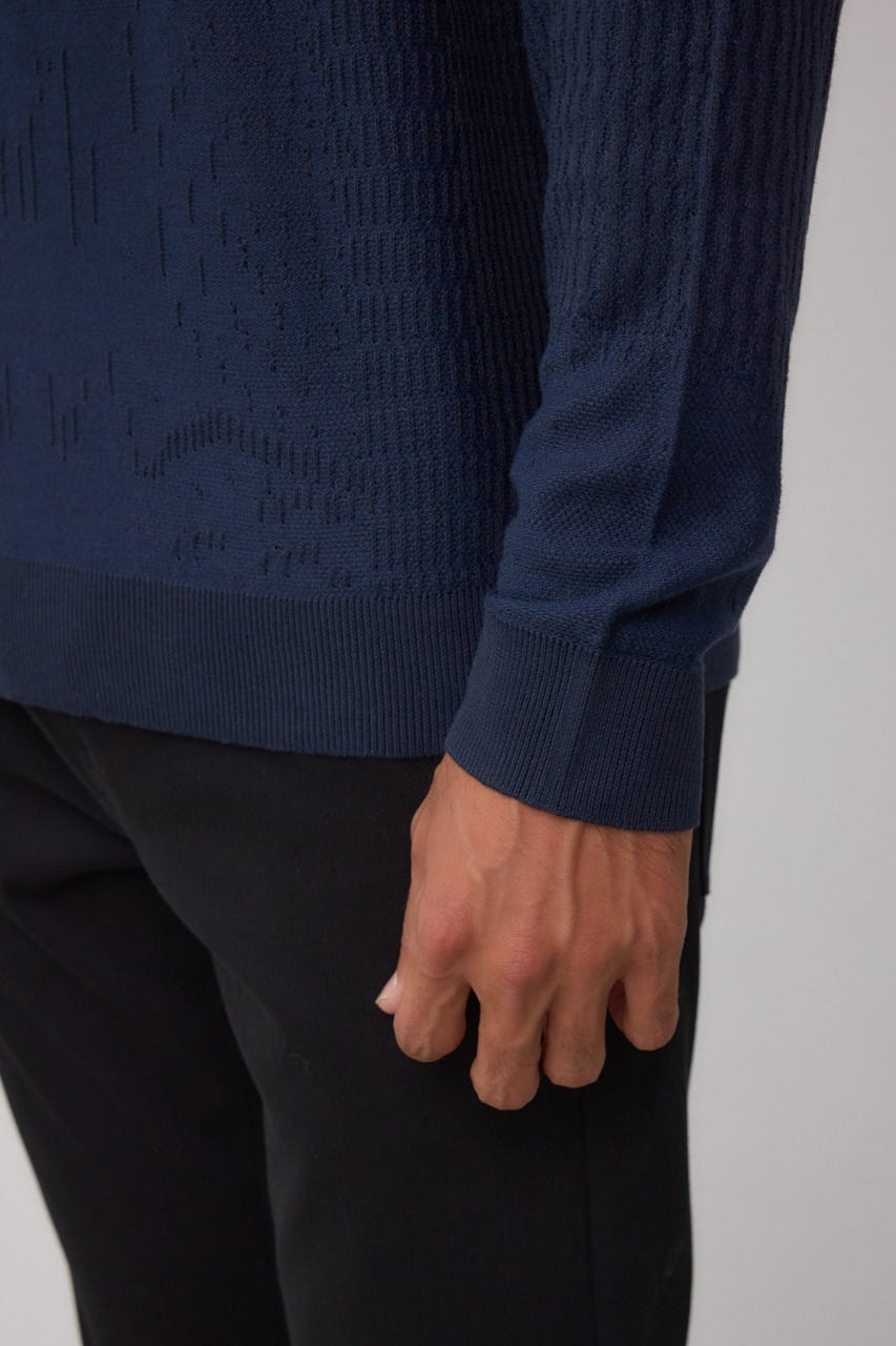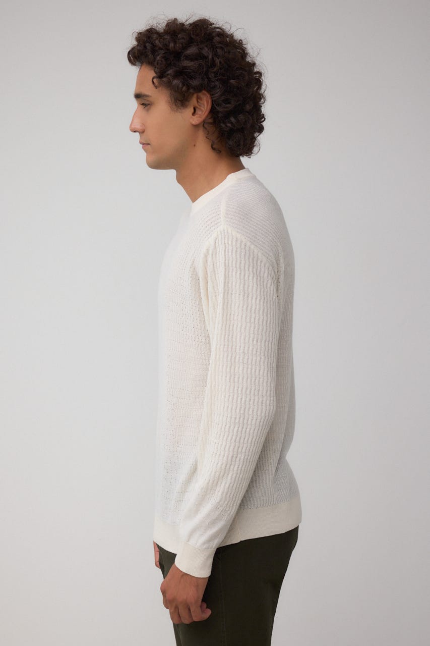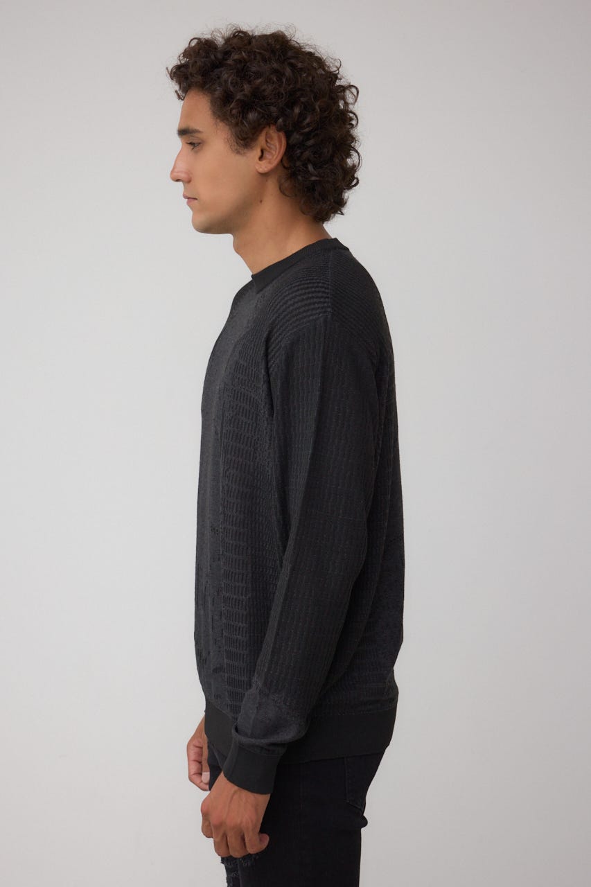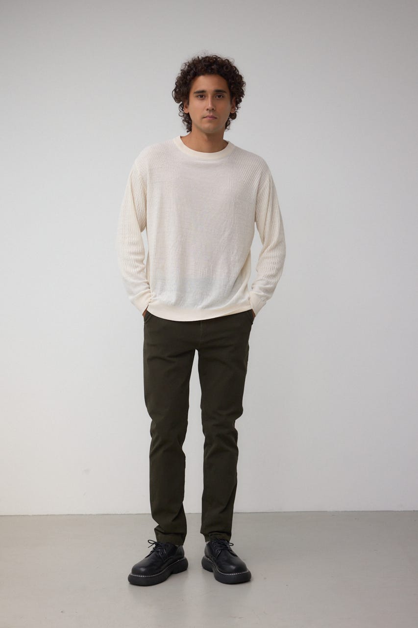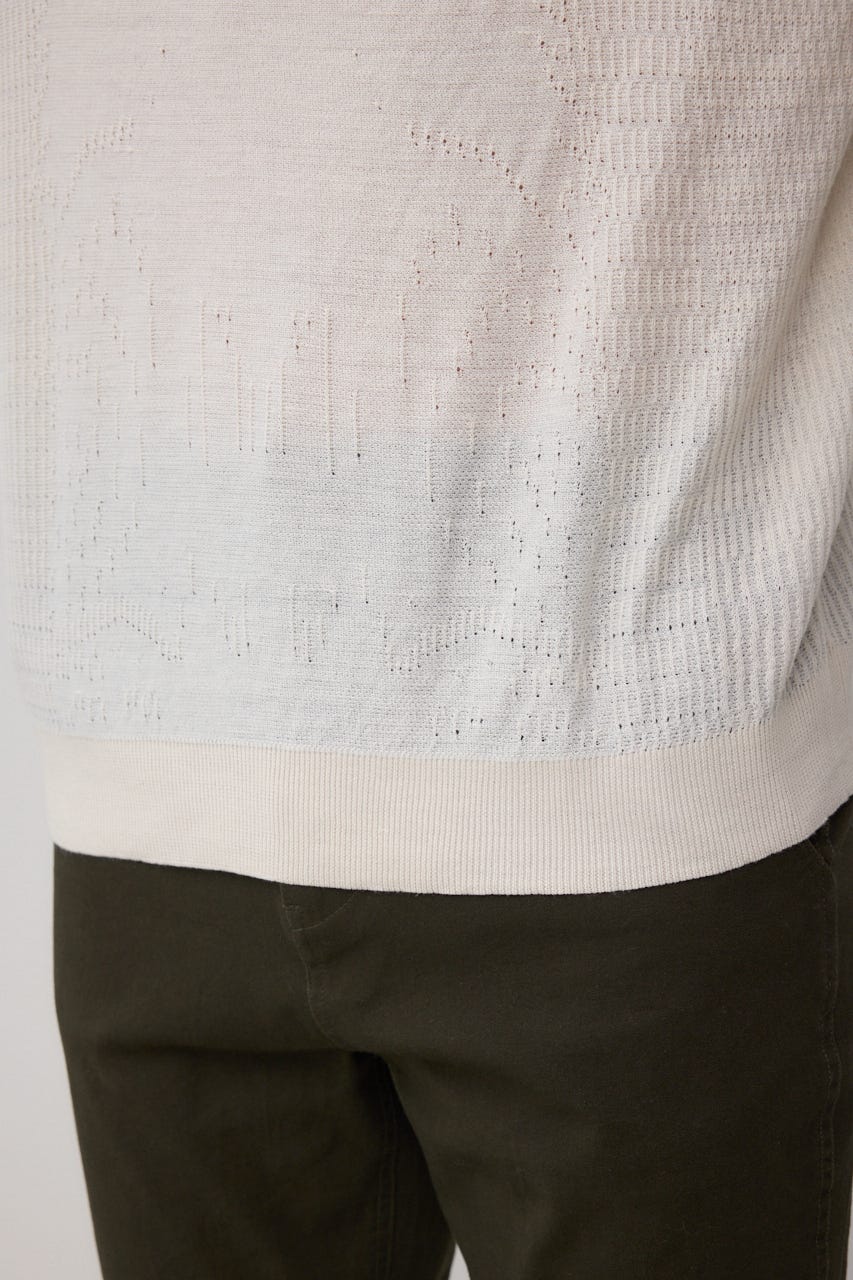 シアーニットをメンズ商品でありながら、AZULオリジナルの編み柄で表現。