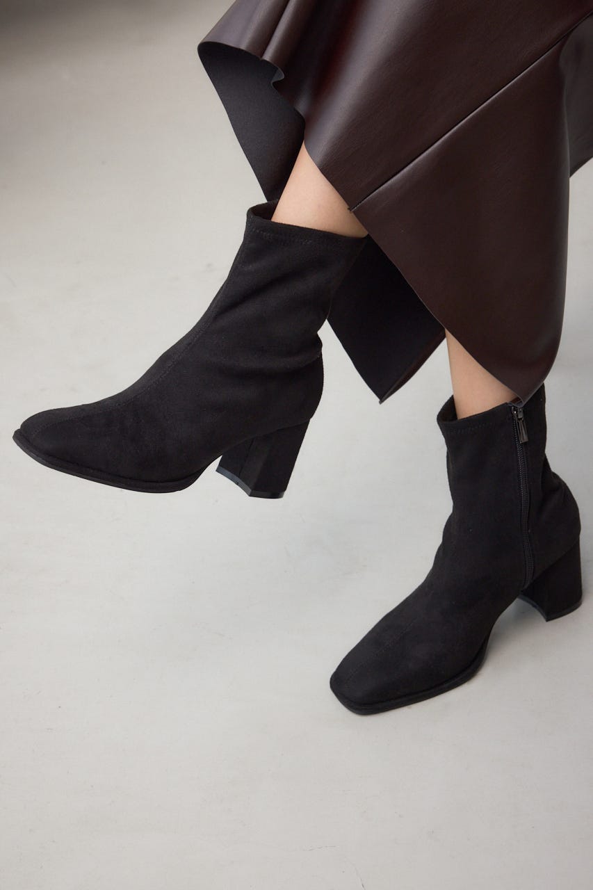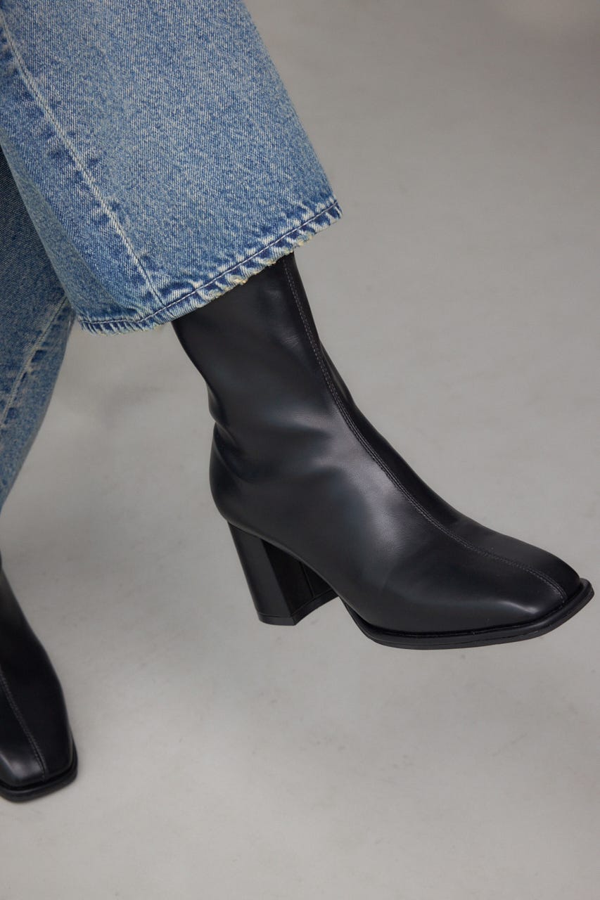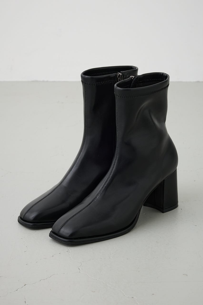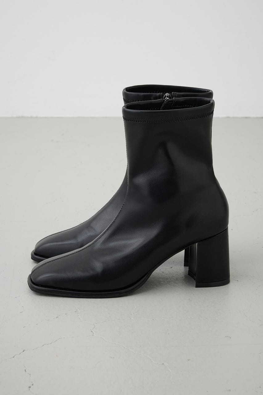 シャープなスクエアトゥとすっきりとした筒のシルエットが、足元に洗練された印象を与えるストレッチブーツ。