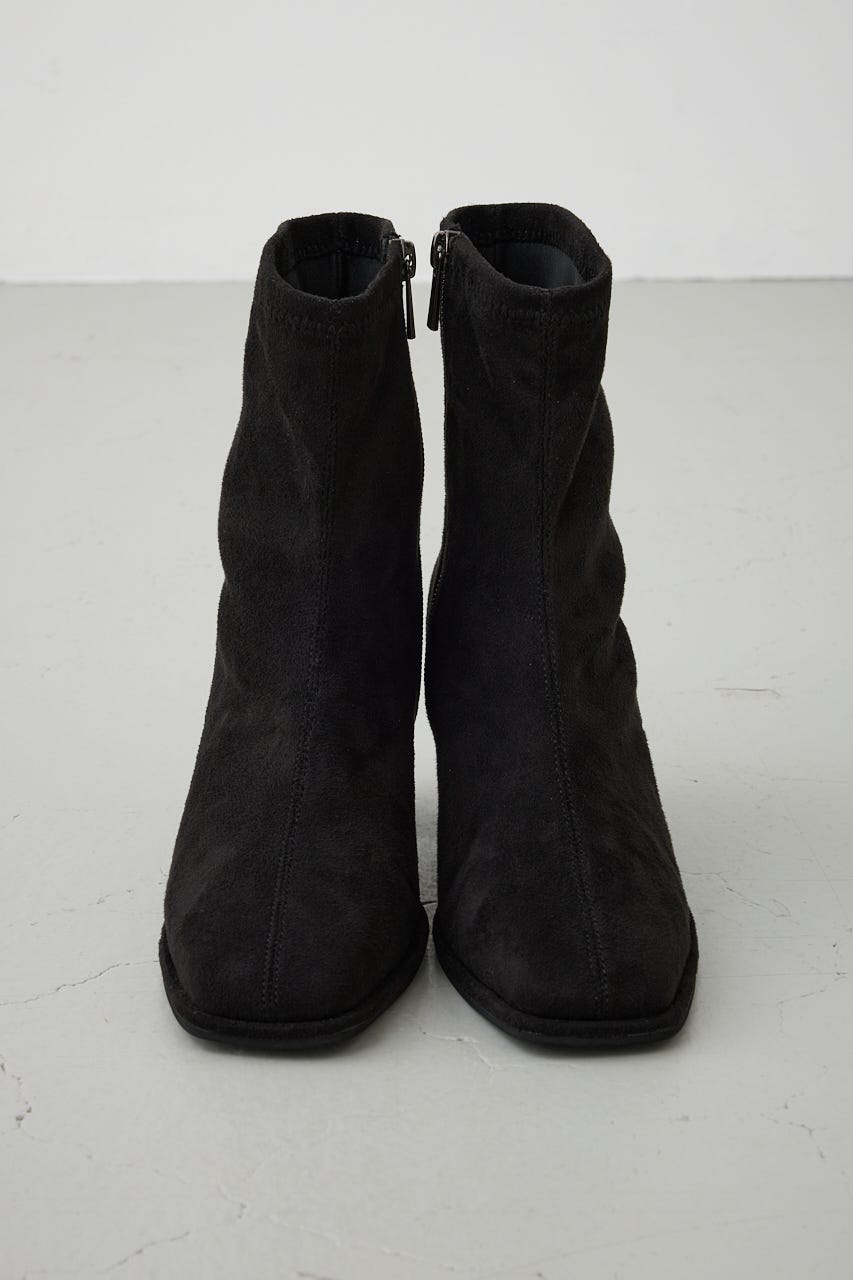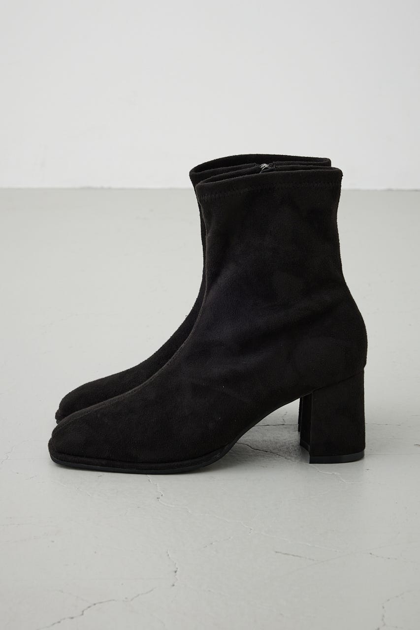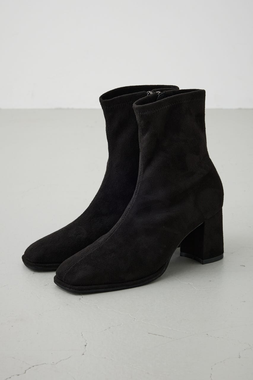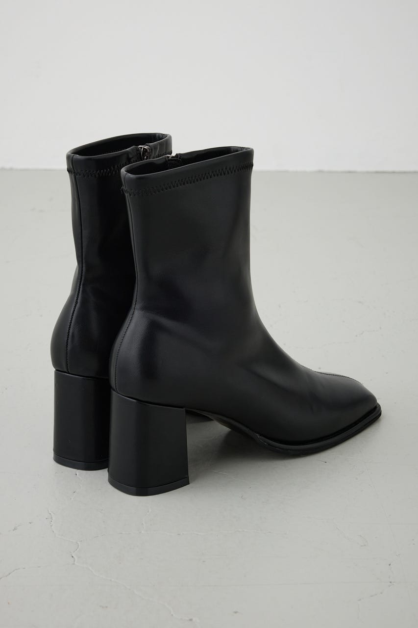 シャープなスクエアトゥとすっきりとした筒のシルエットが、足元に洗練された印象を与えるストレッチブーツ。