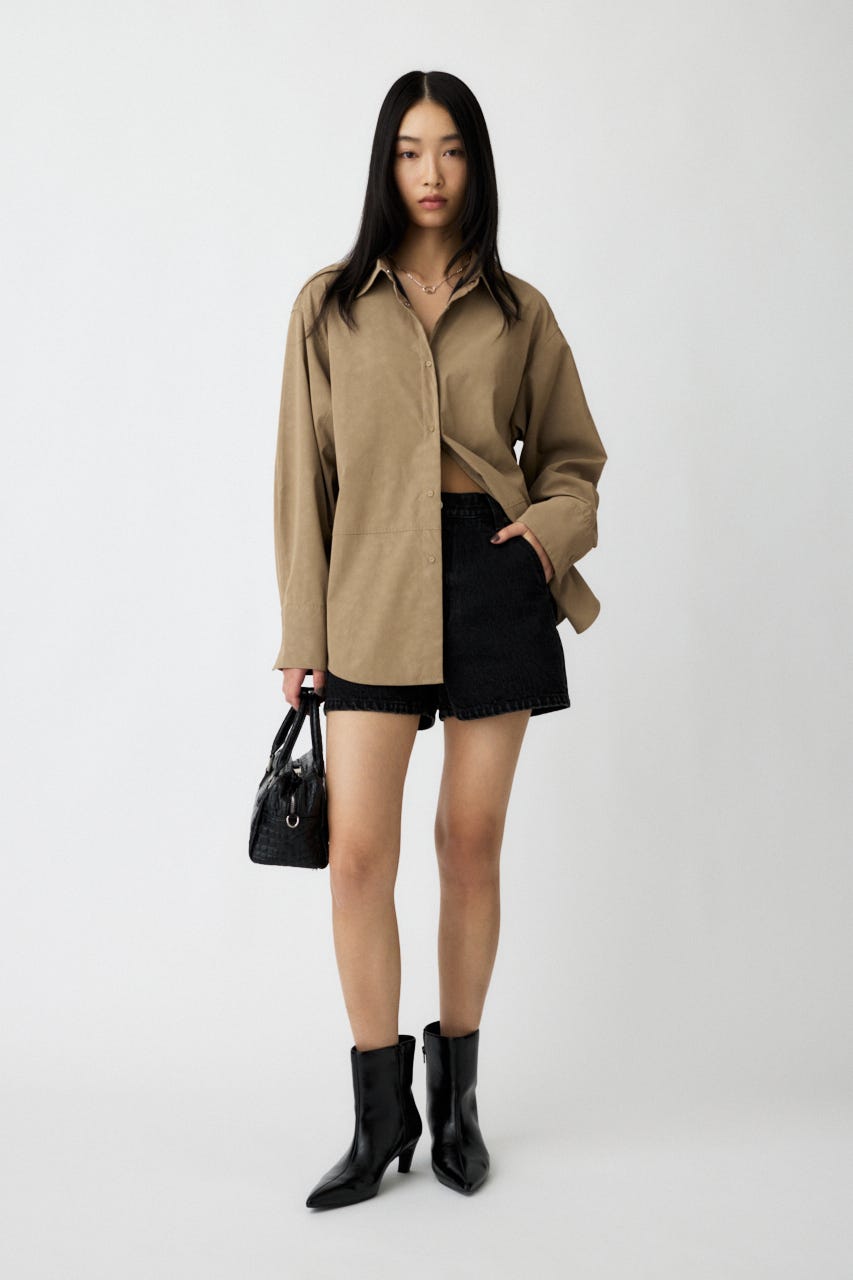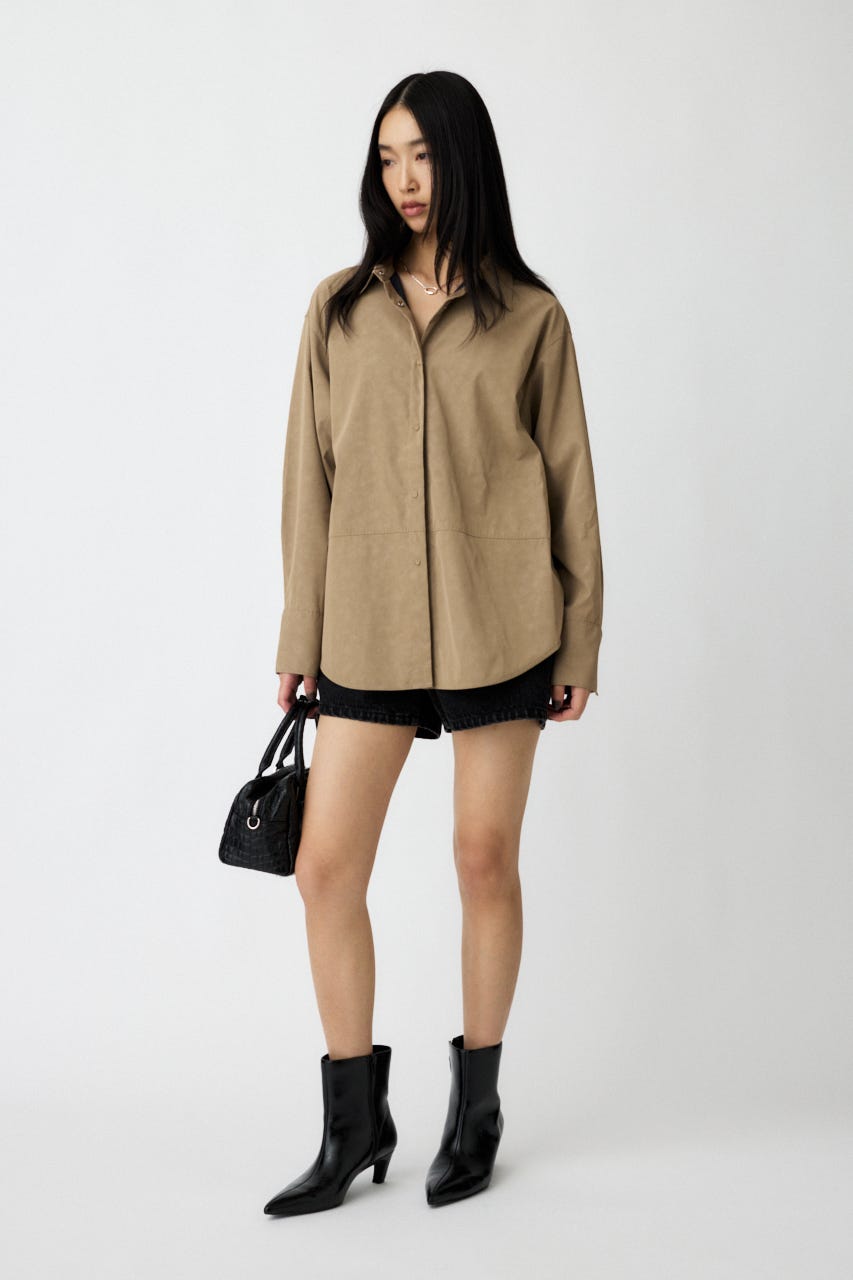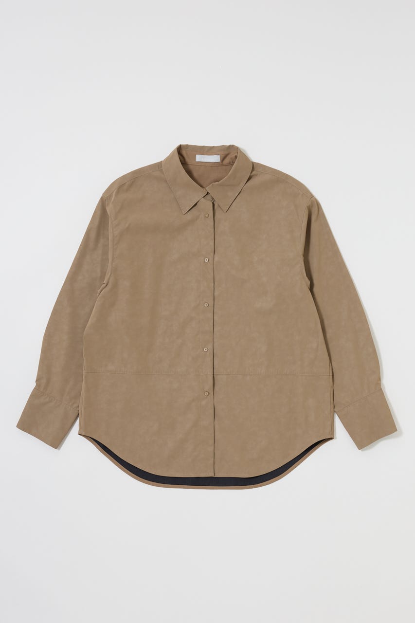 レザーのような雰囲気を持つ独特の風合いのシャツ。