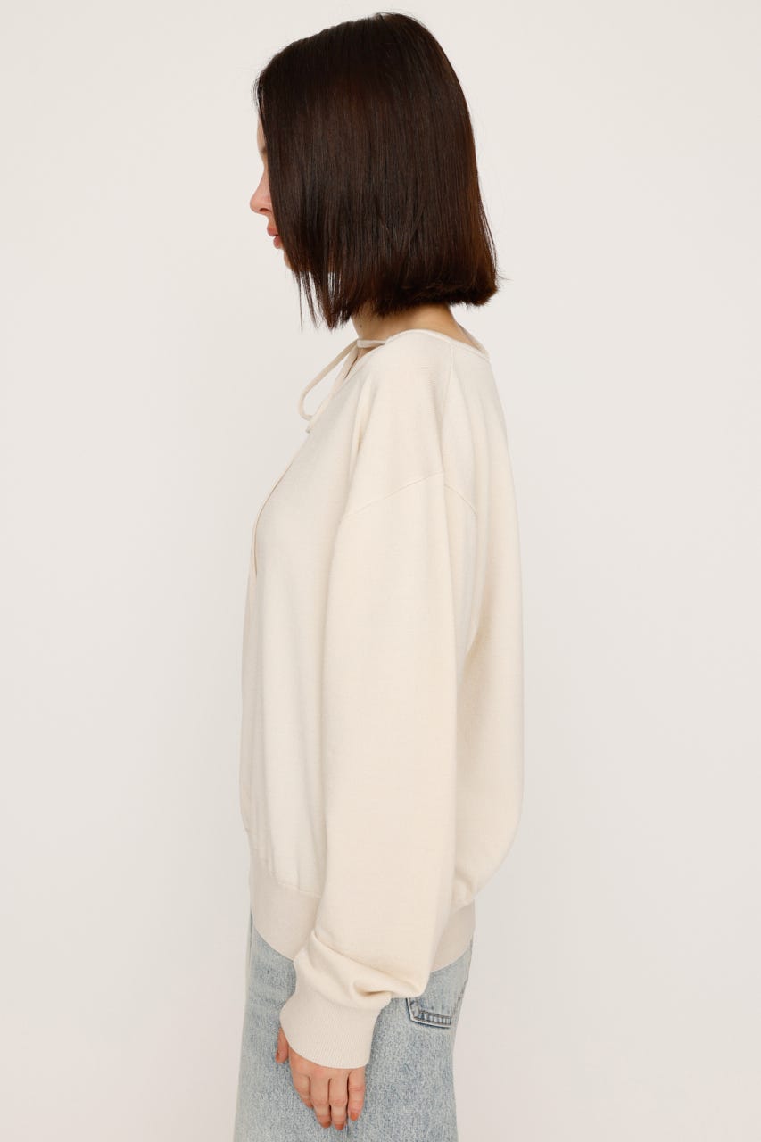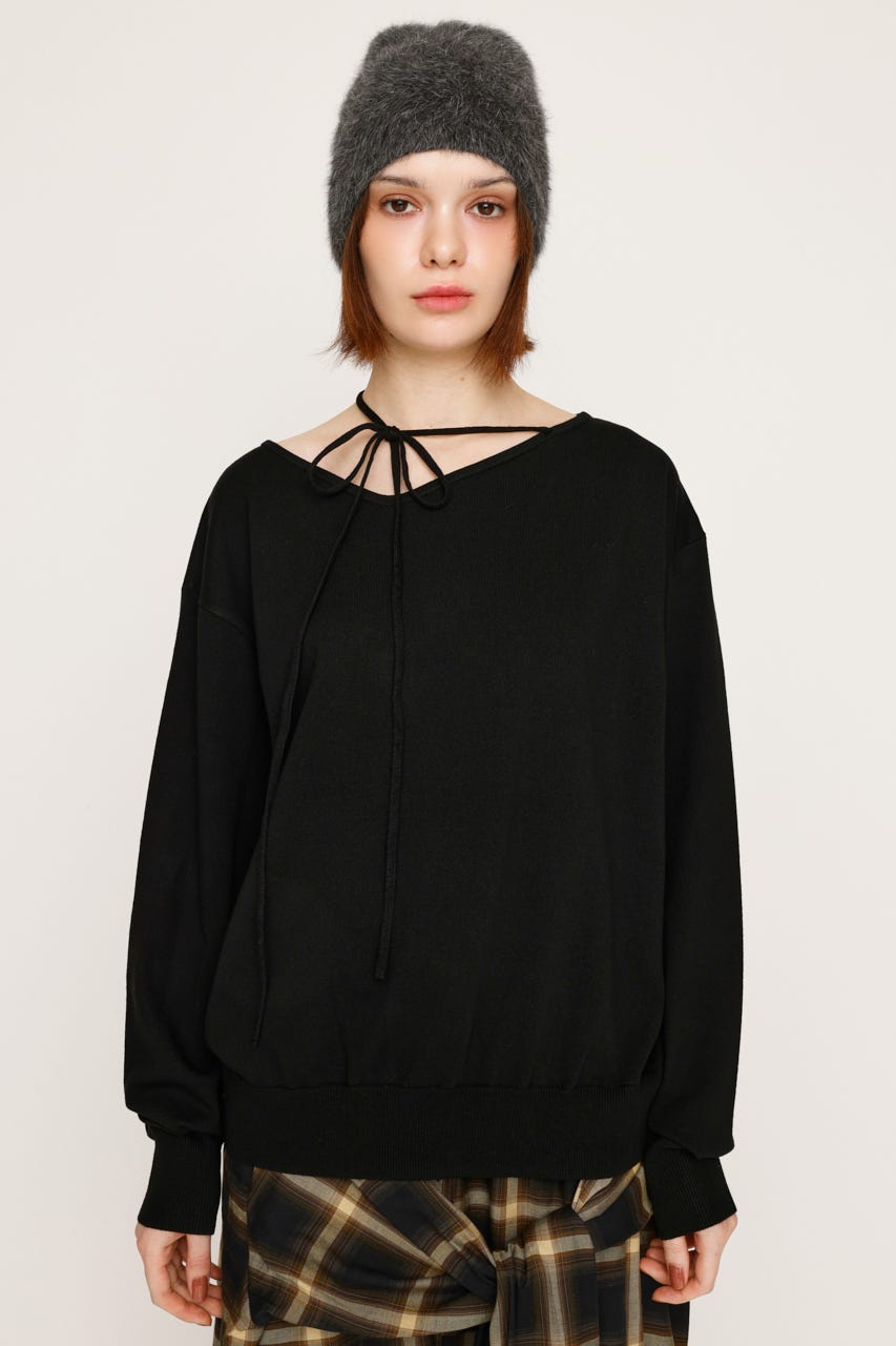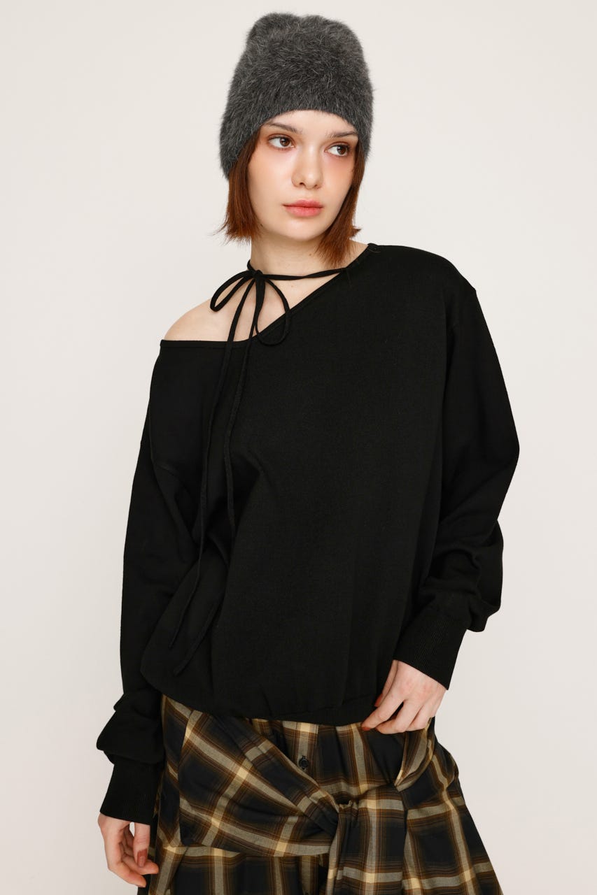 ■POINT:ネックのアシンメトリーデザインとリボンデザインがポイントのニットトップス。
