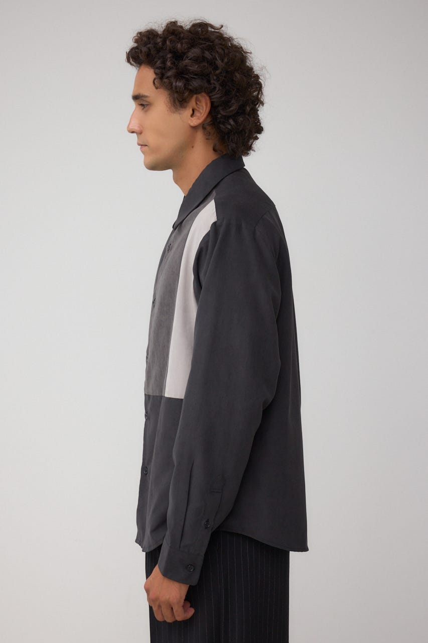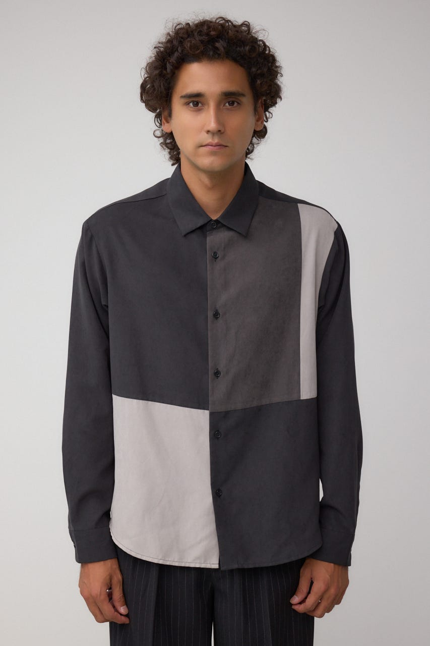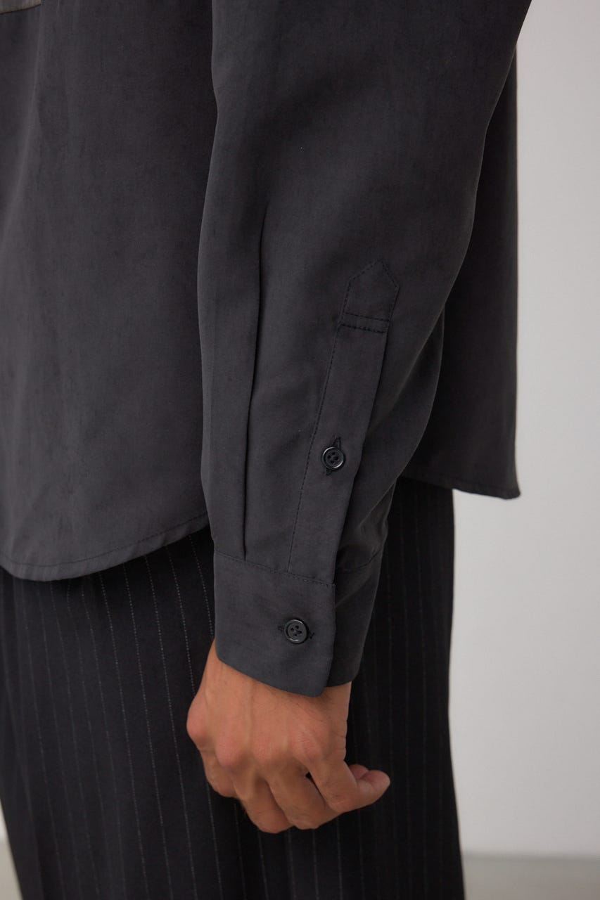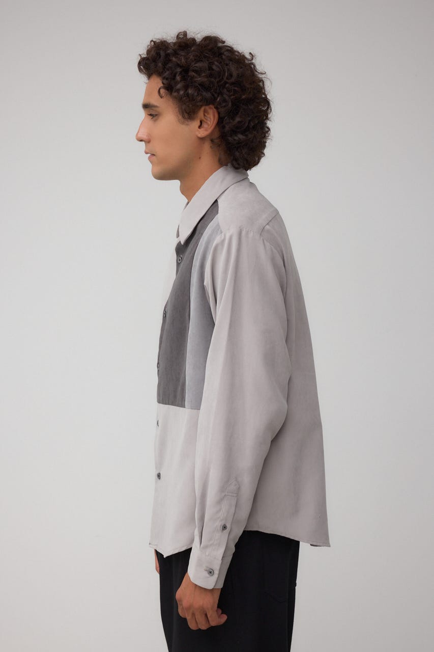 パネル配色デザインが可愛い、フェイクスウェードシャツになります。