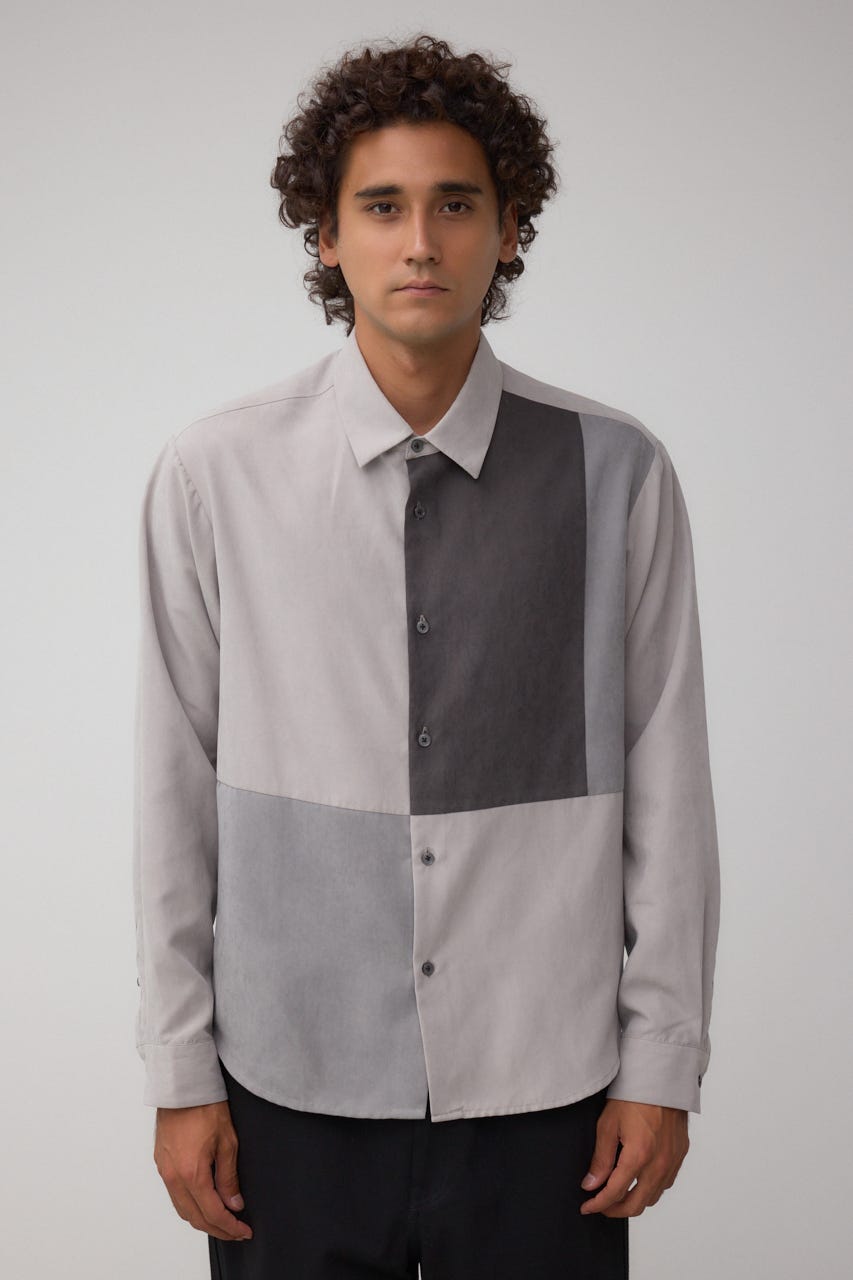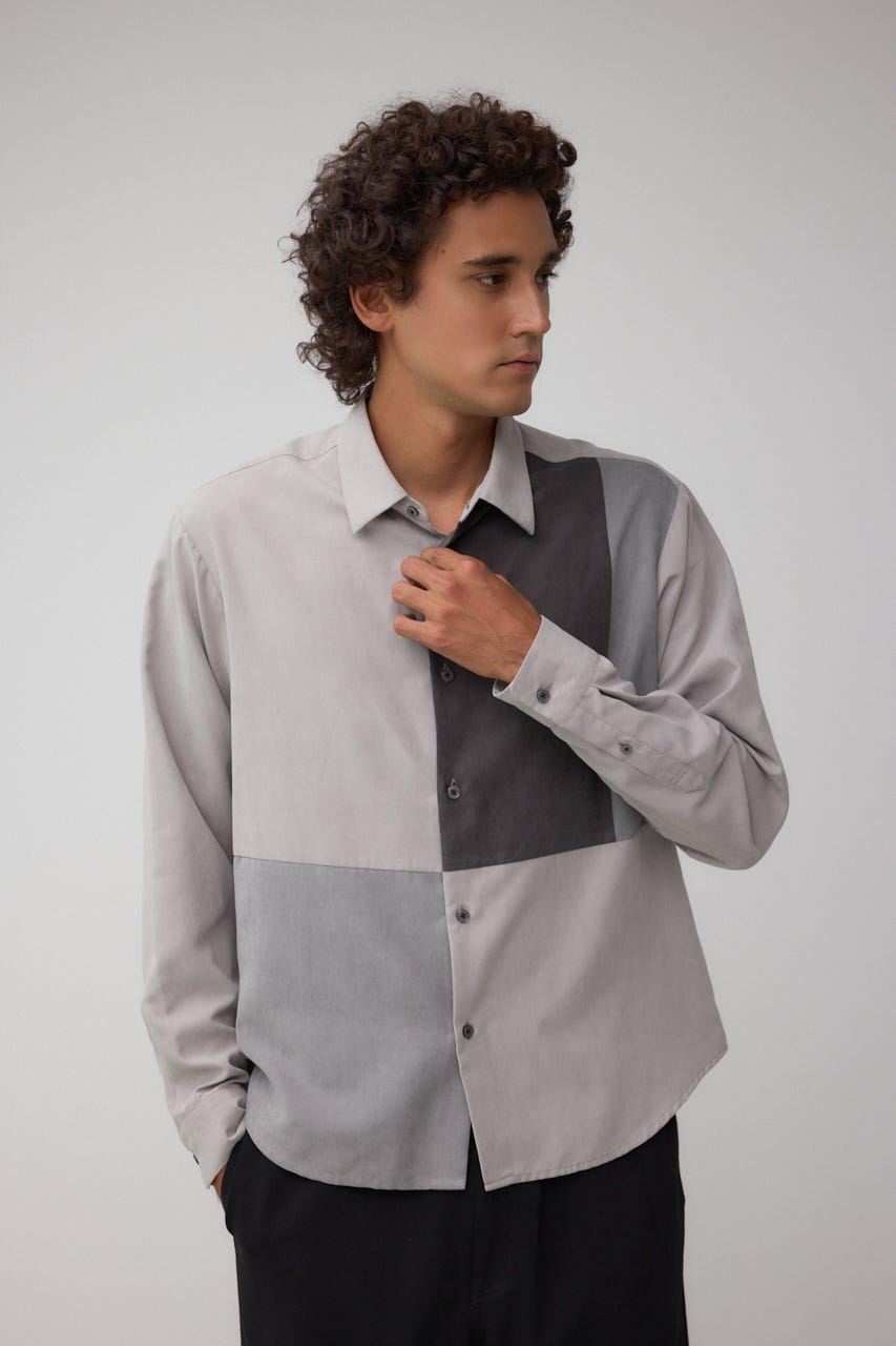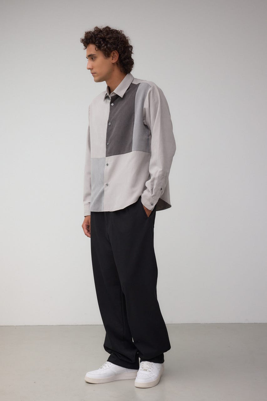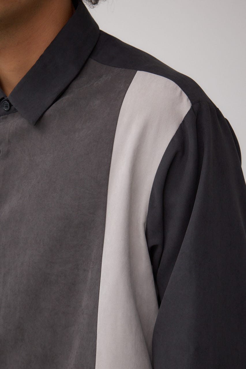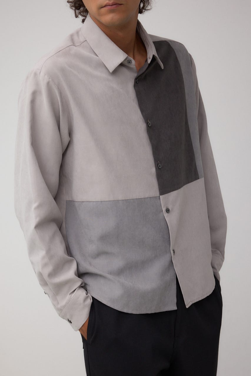 パネル配色デザインが可愛い、フェイクスウェードシャツになります。