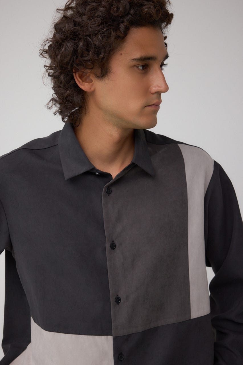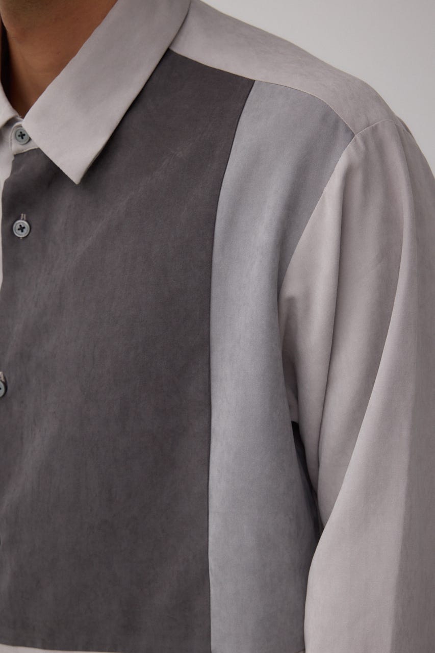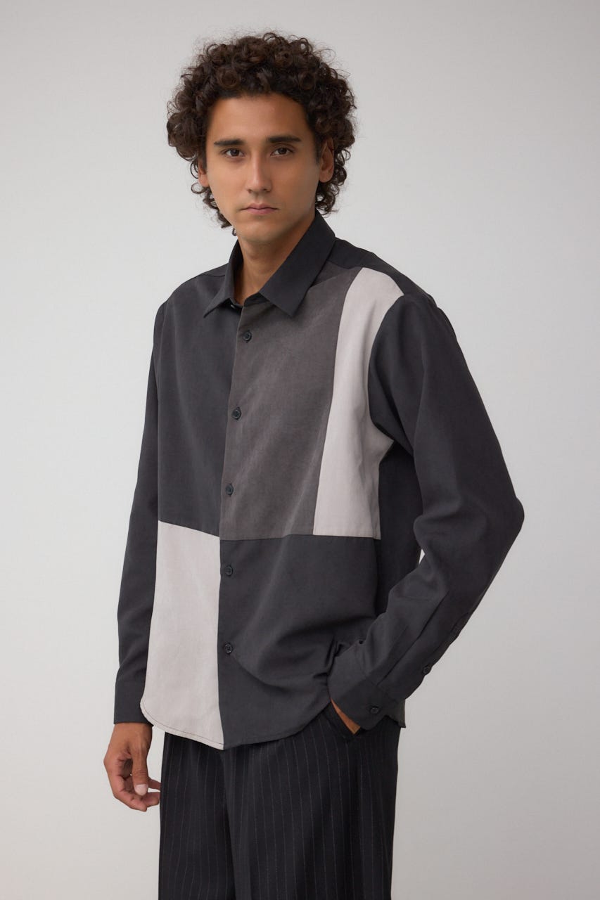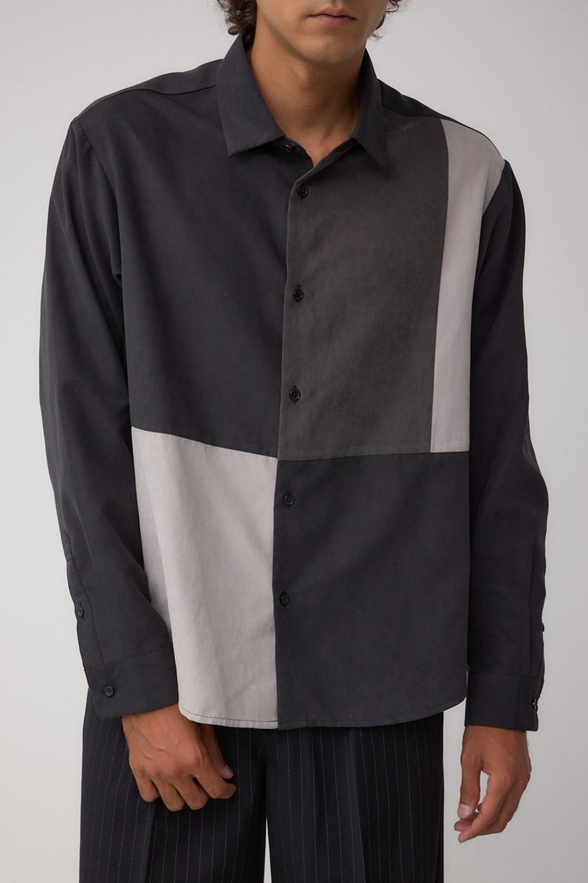 パネル配色デザインが可愛い、フェイクスウェードシャツになります。