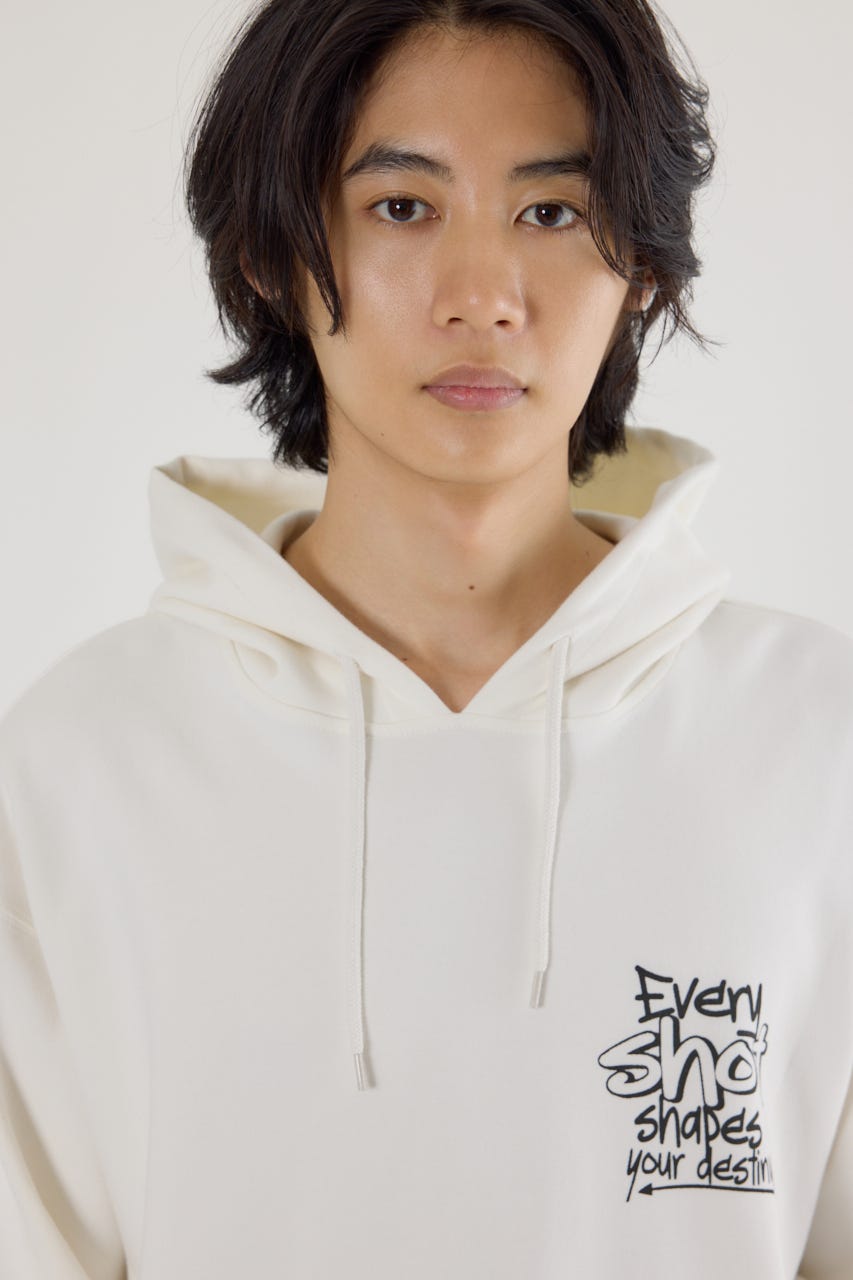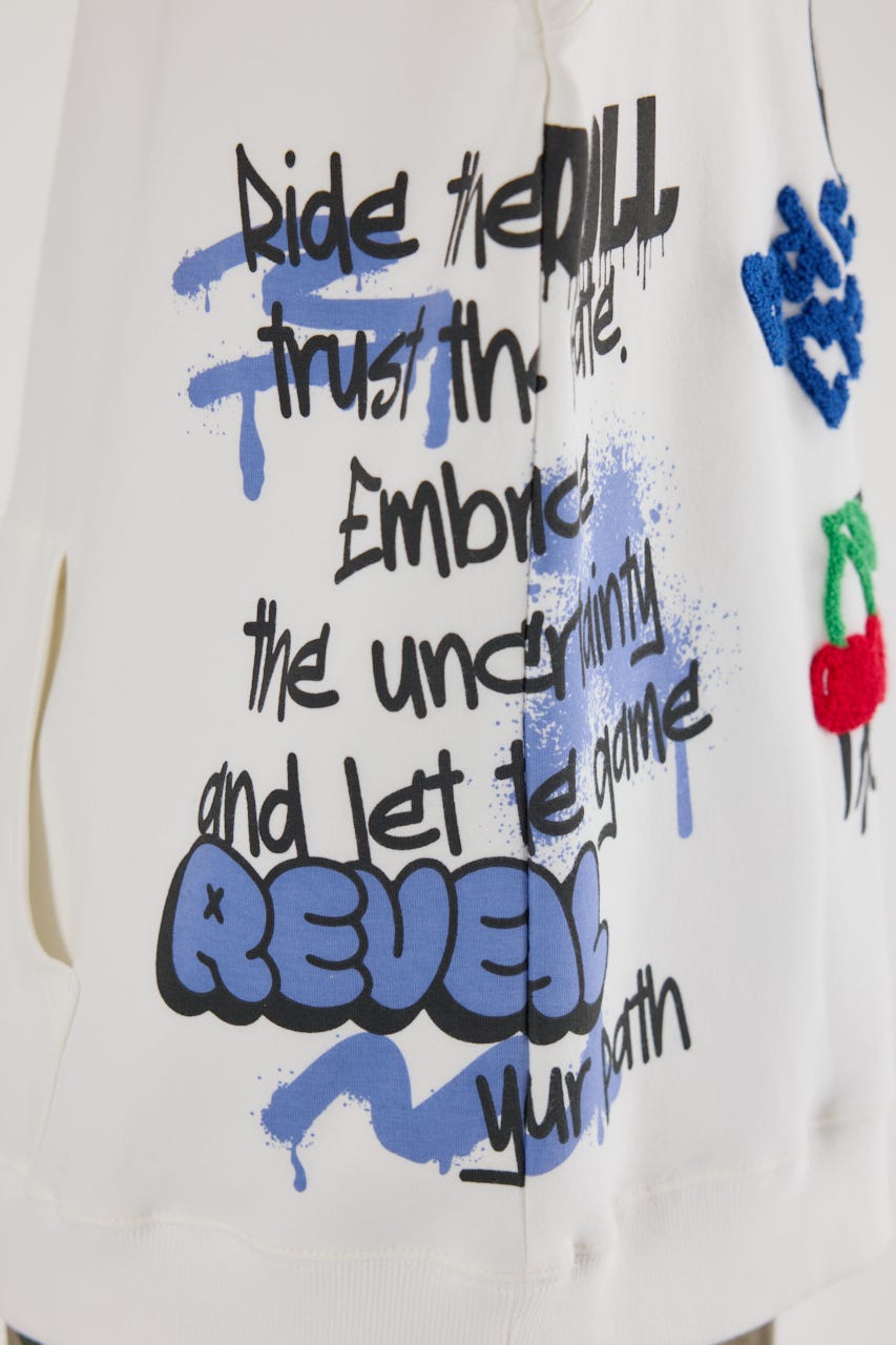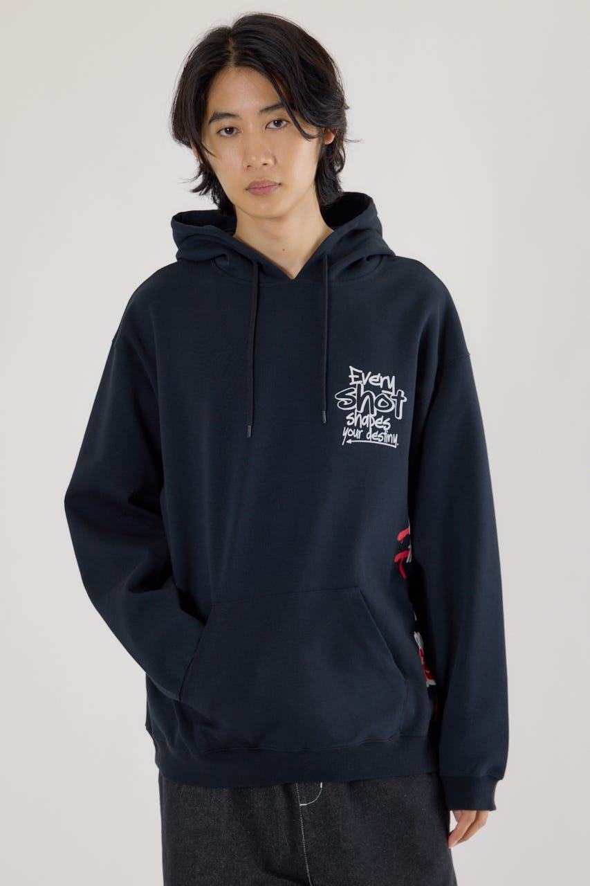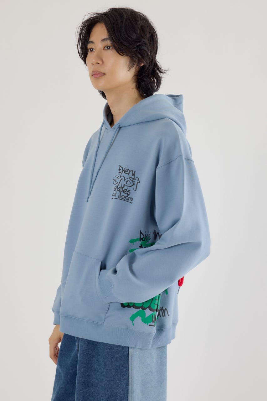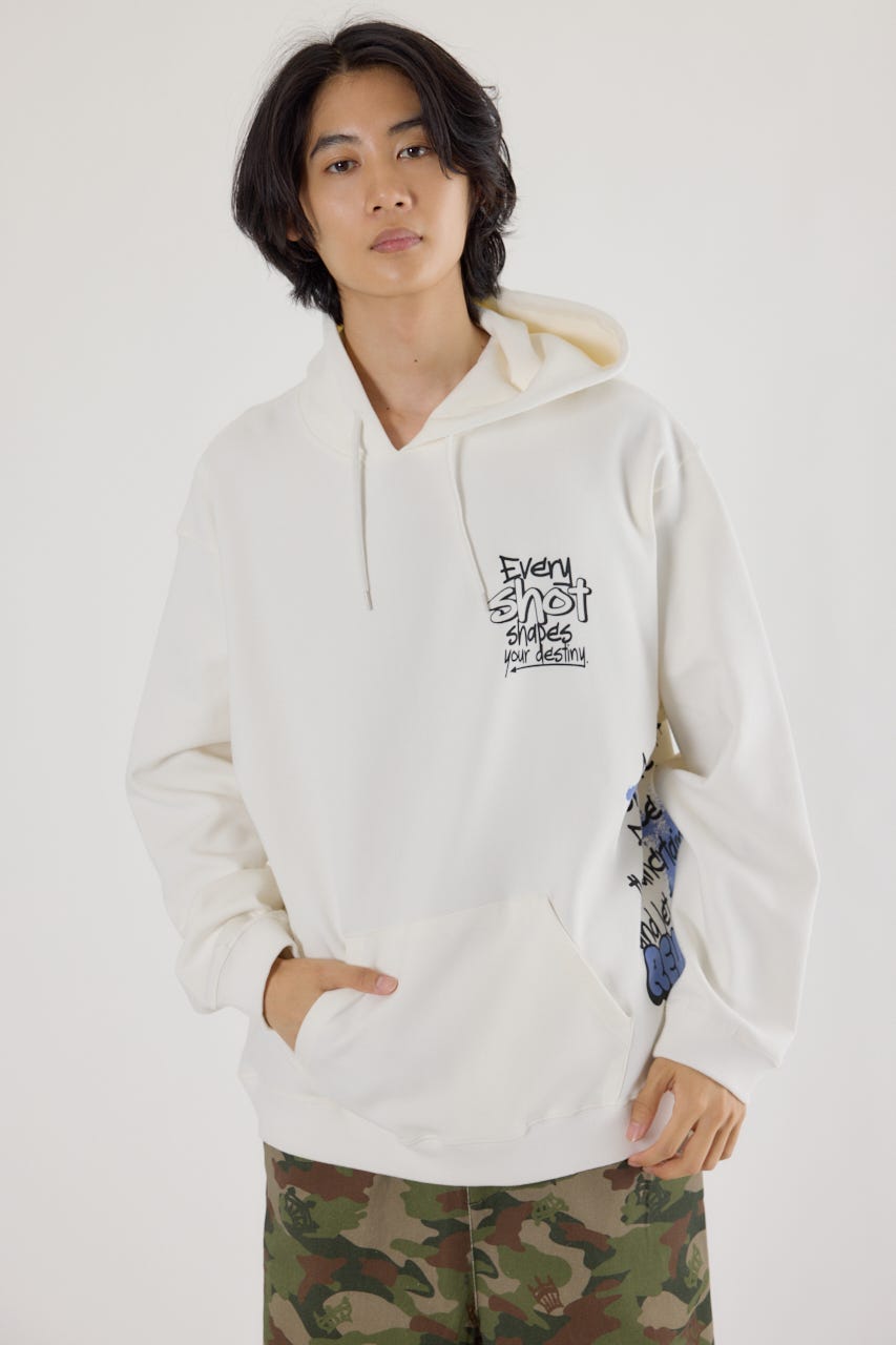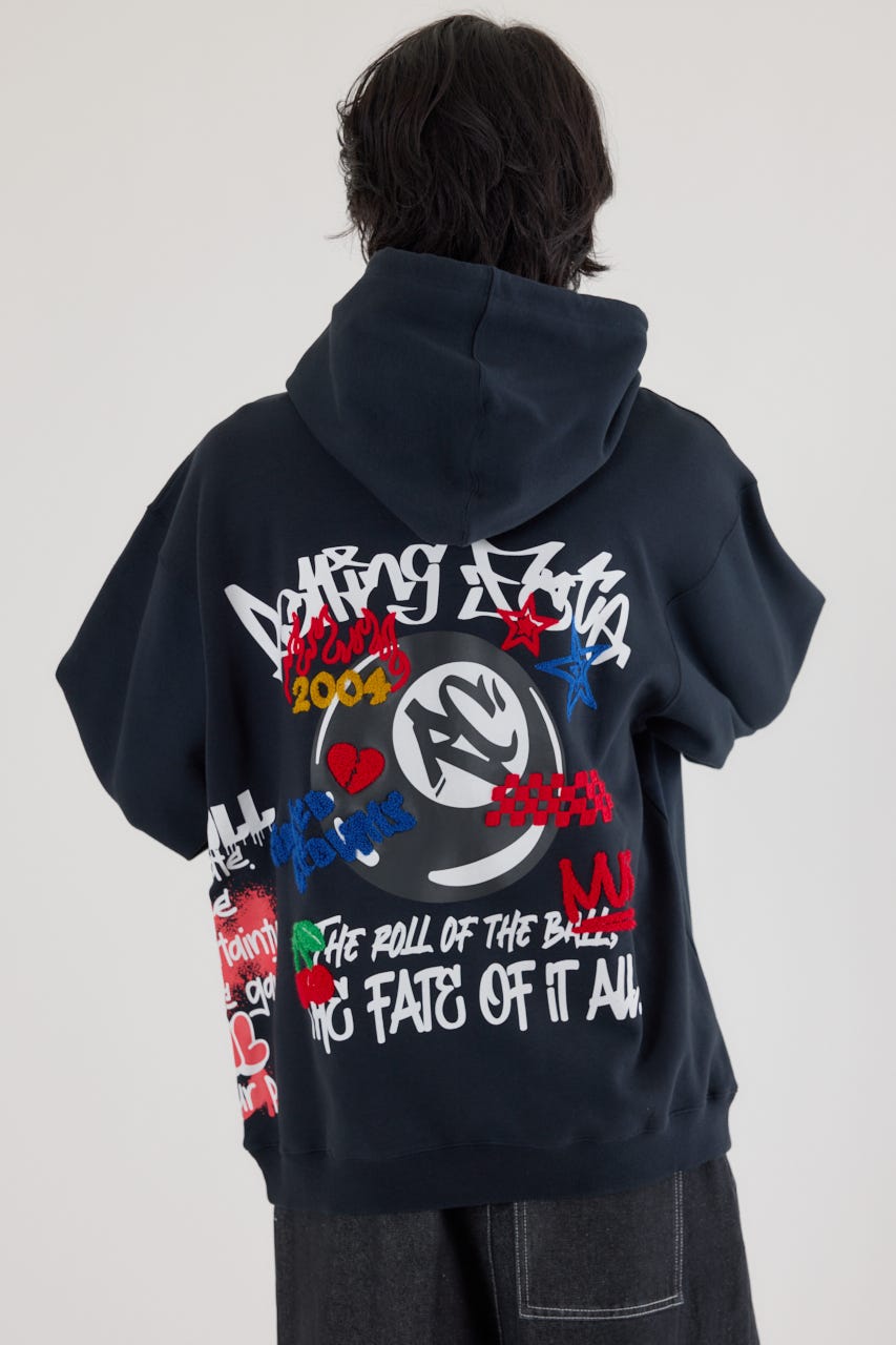 様々な刺繍テクニックをプリントと組み合わせたグラフィックが印象的なスウェットパーカー。