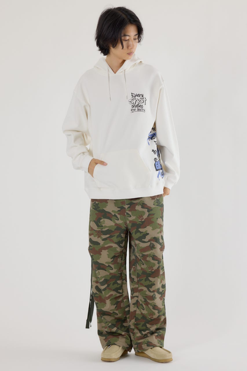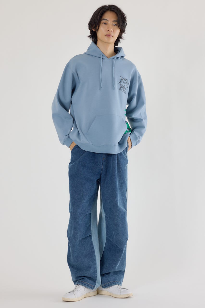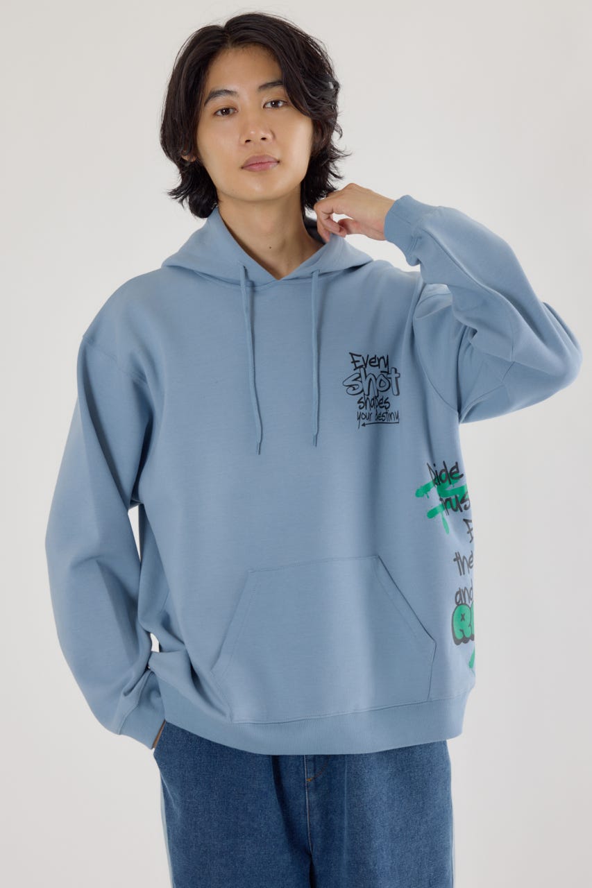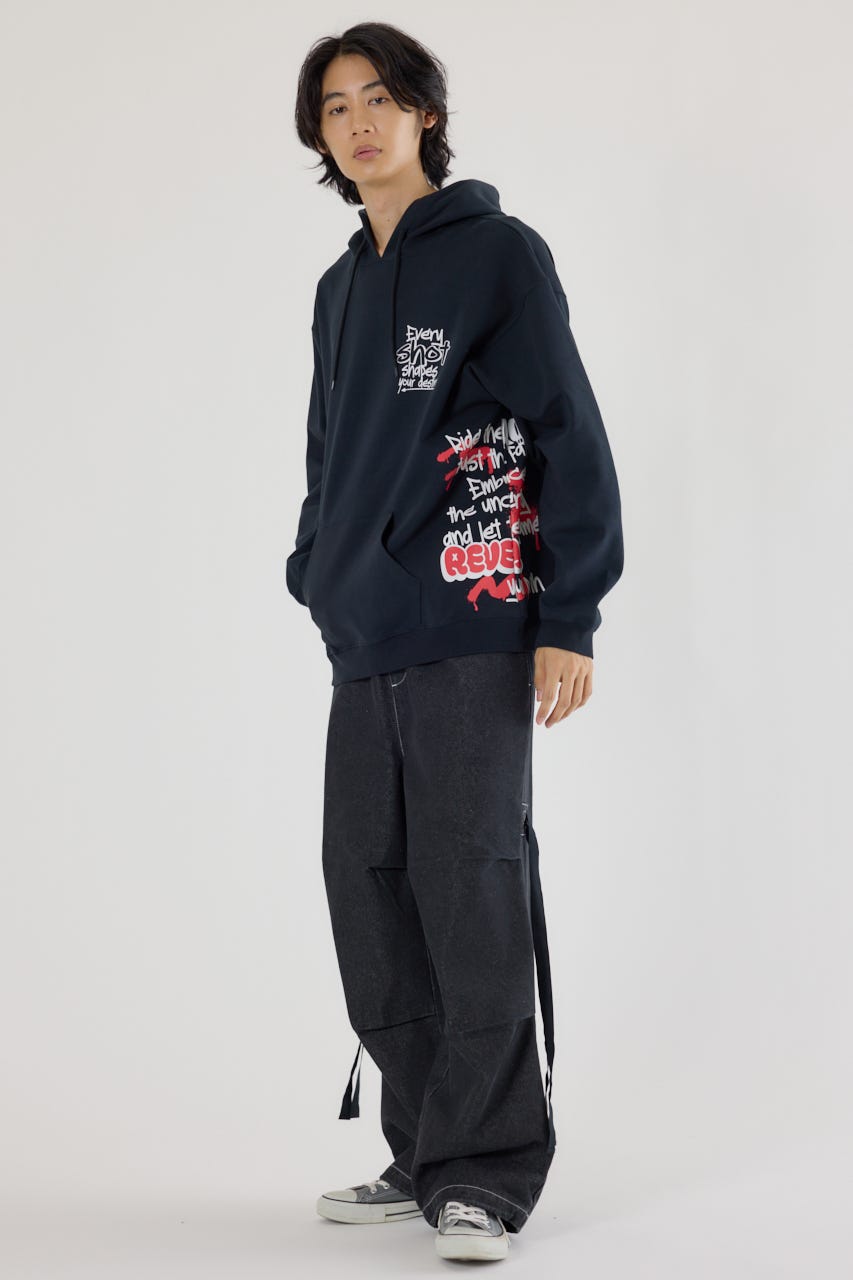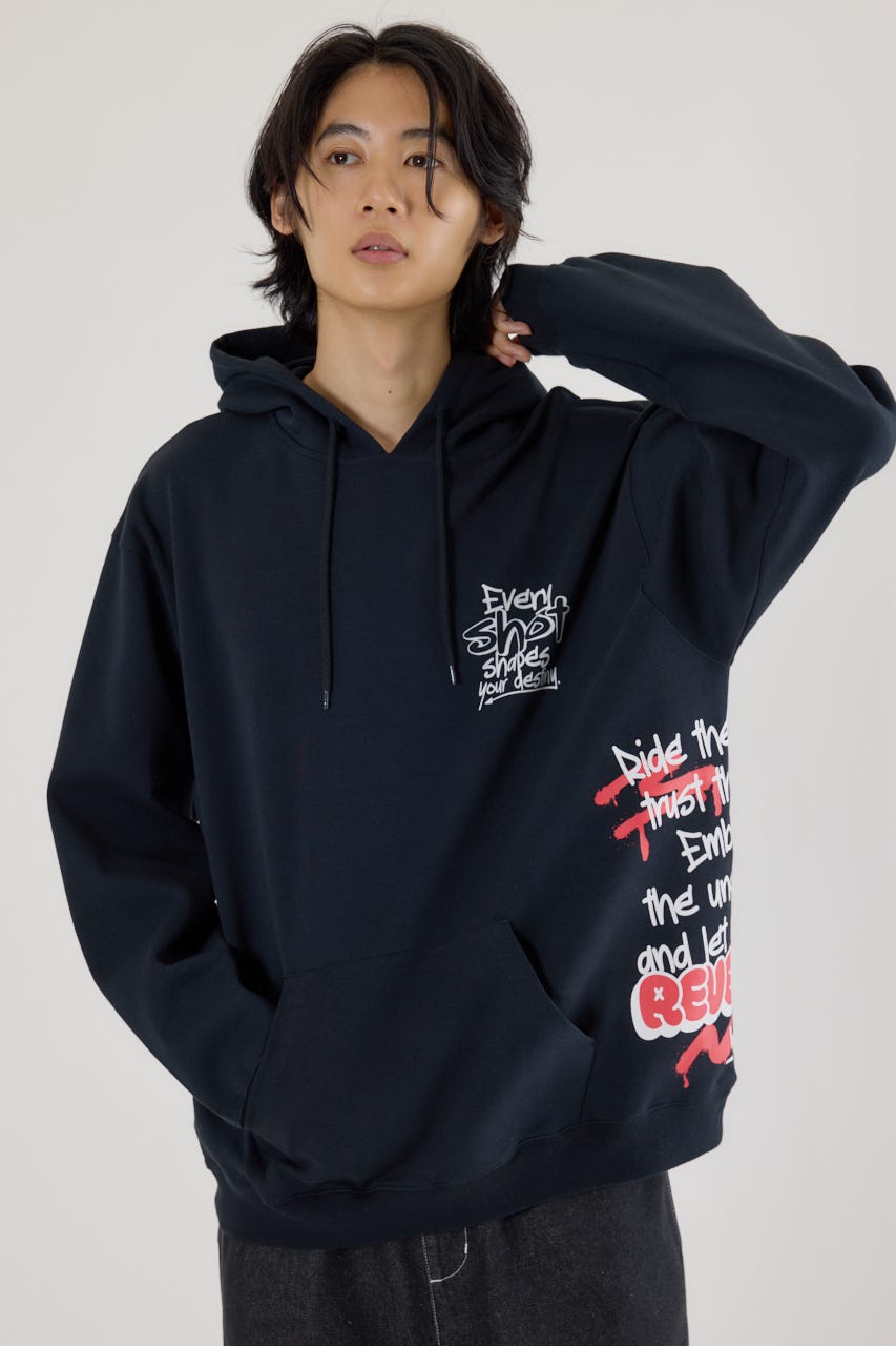 様々な刺繍テクニックをプリントと組み合わせたグラフィックが印象的なスウェットパーカー。