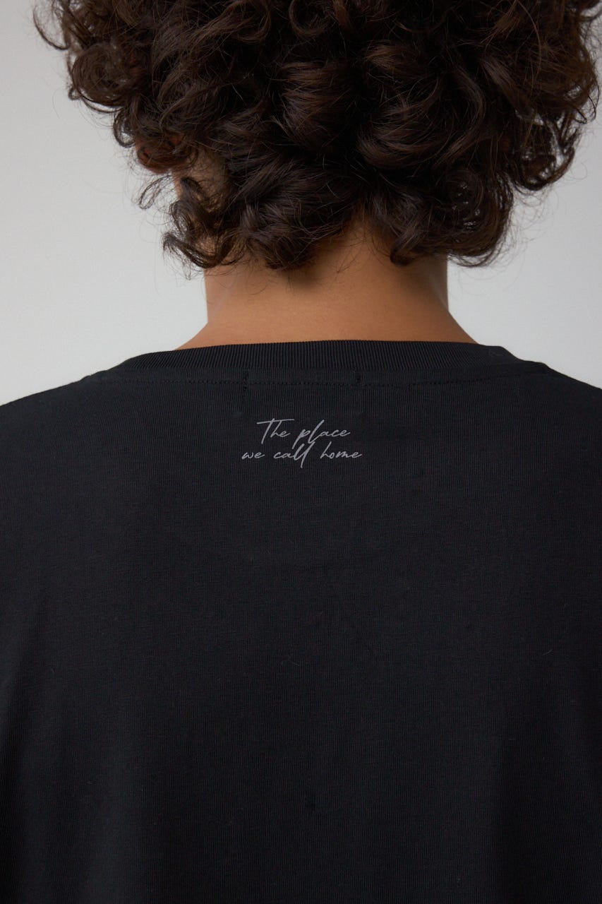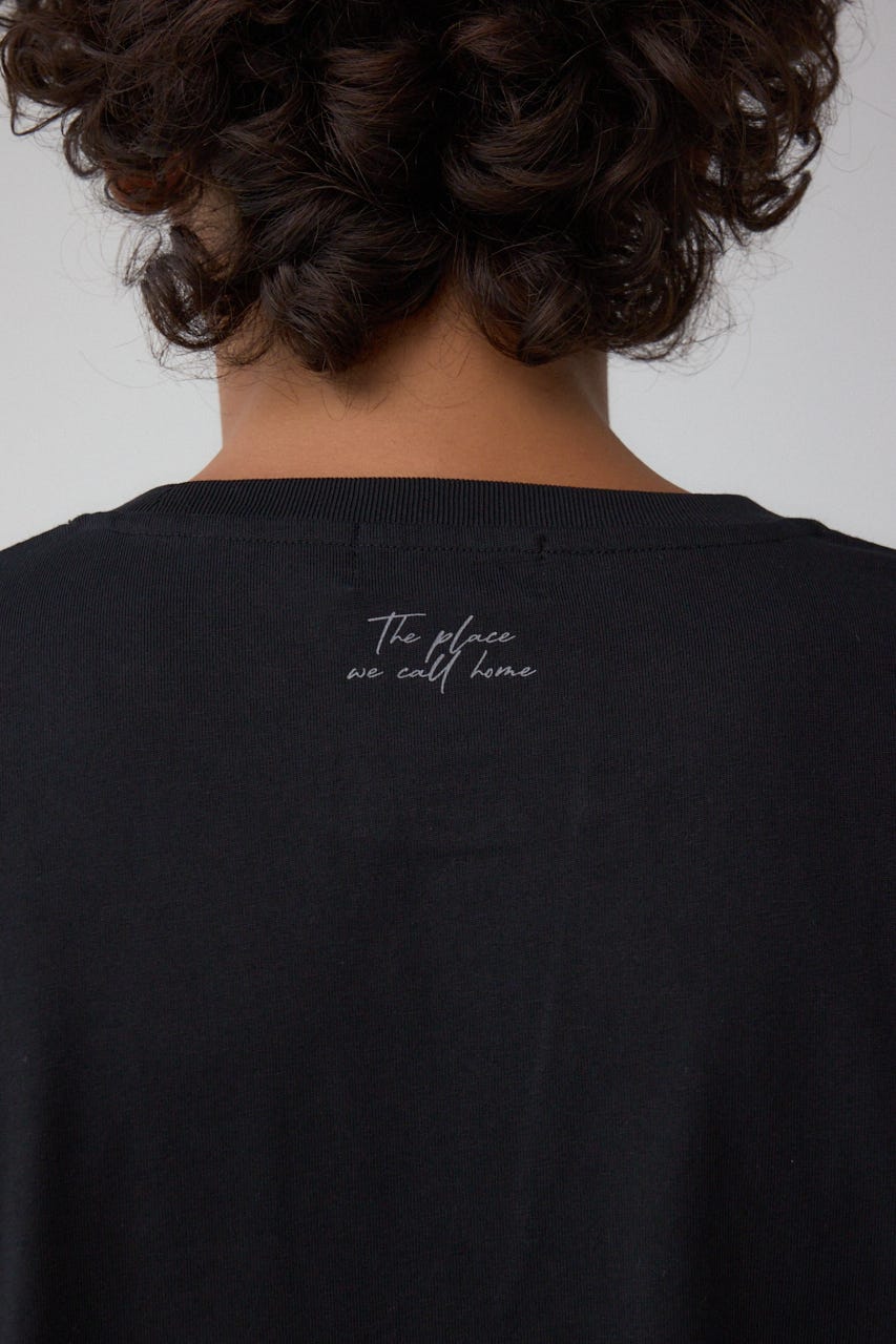モノクロで大人見えするプリントが特徴的なTシャツです。