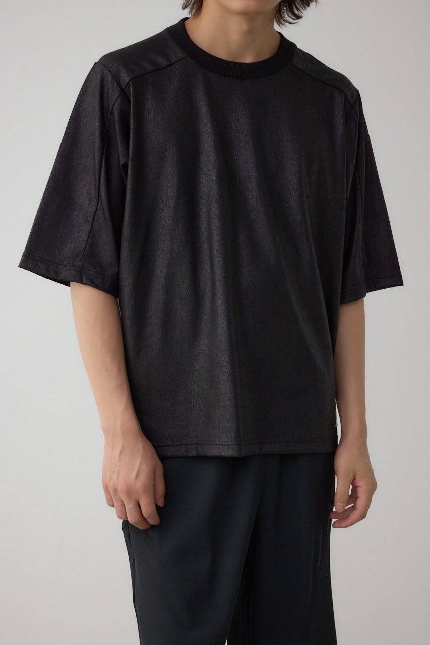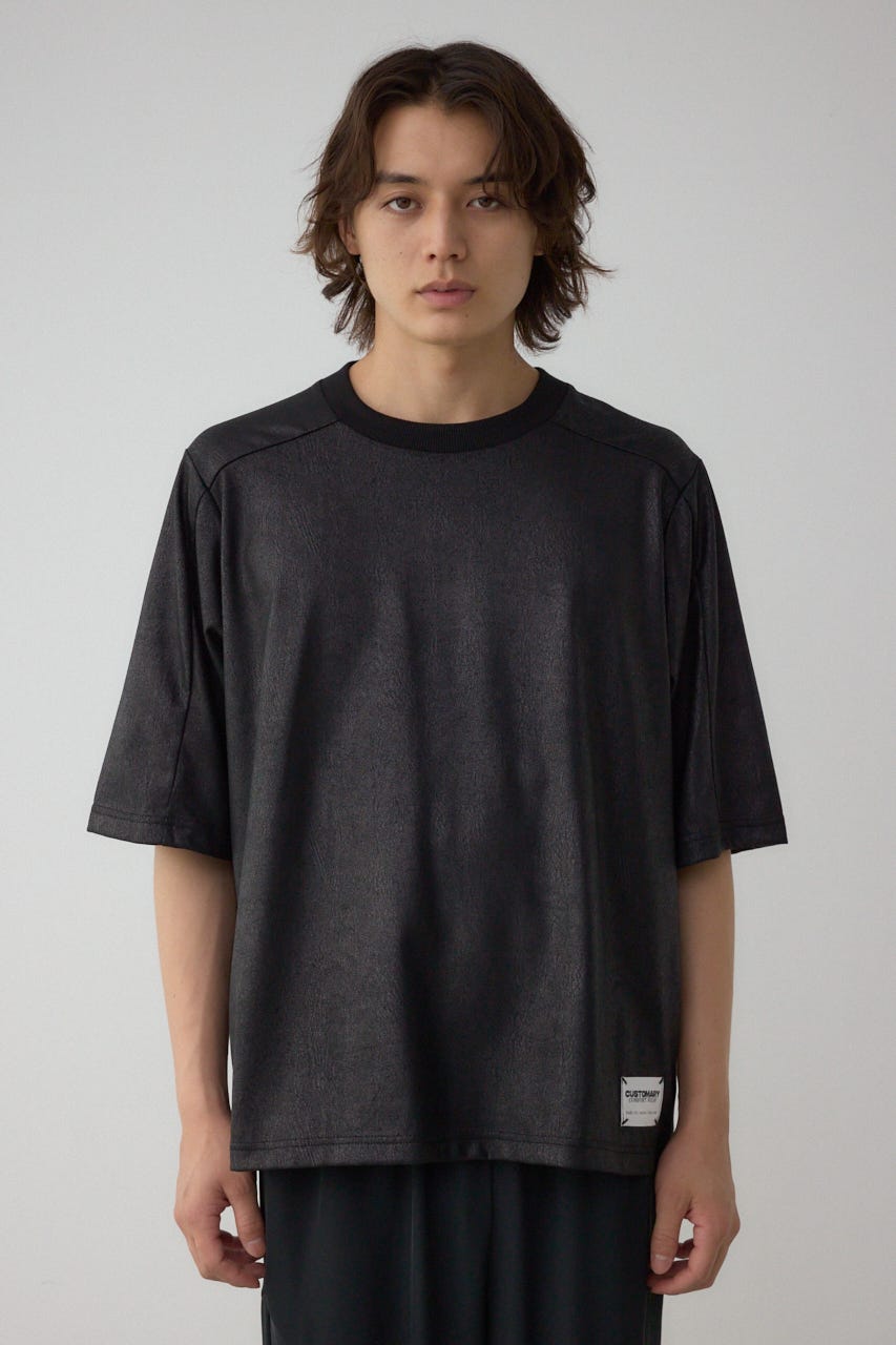 天竺に合成皮革風に見える総柄プリントを施した生地です。