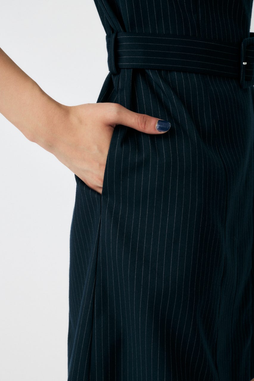 シックなピンストライプ柄もポイントで、甘くなりすぎません。