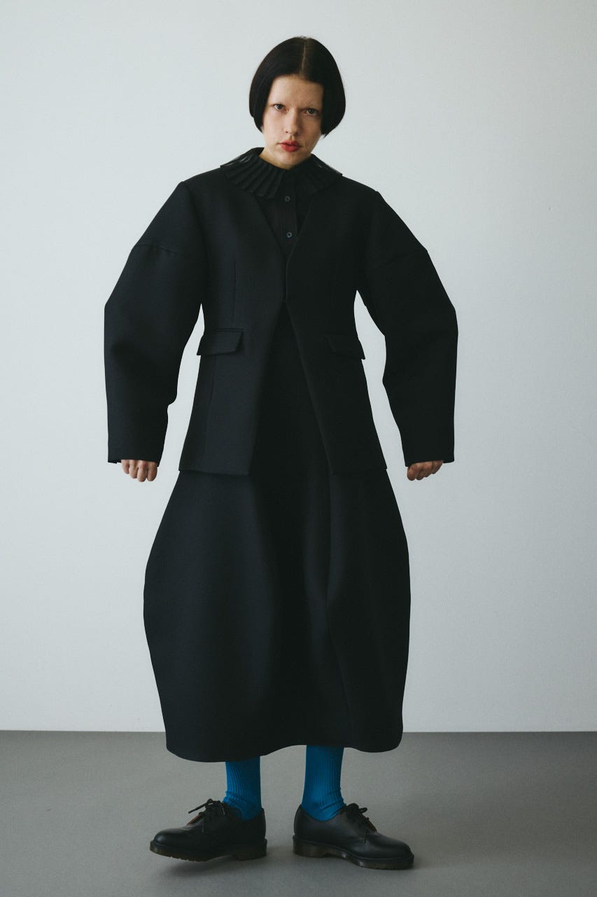 肩周りはふくらみを出し、見頃部分はスッとした見え方になっています。