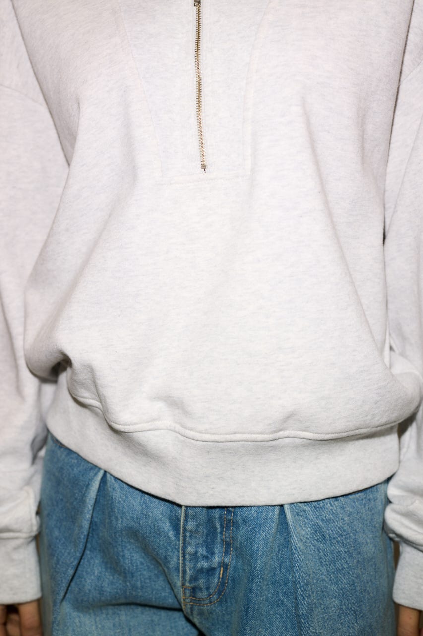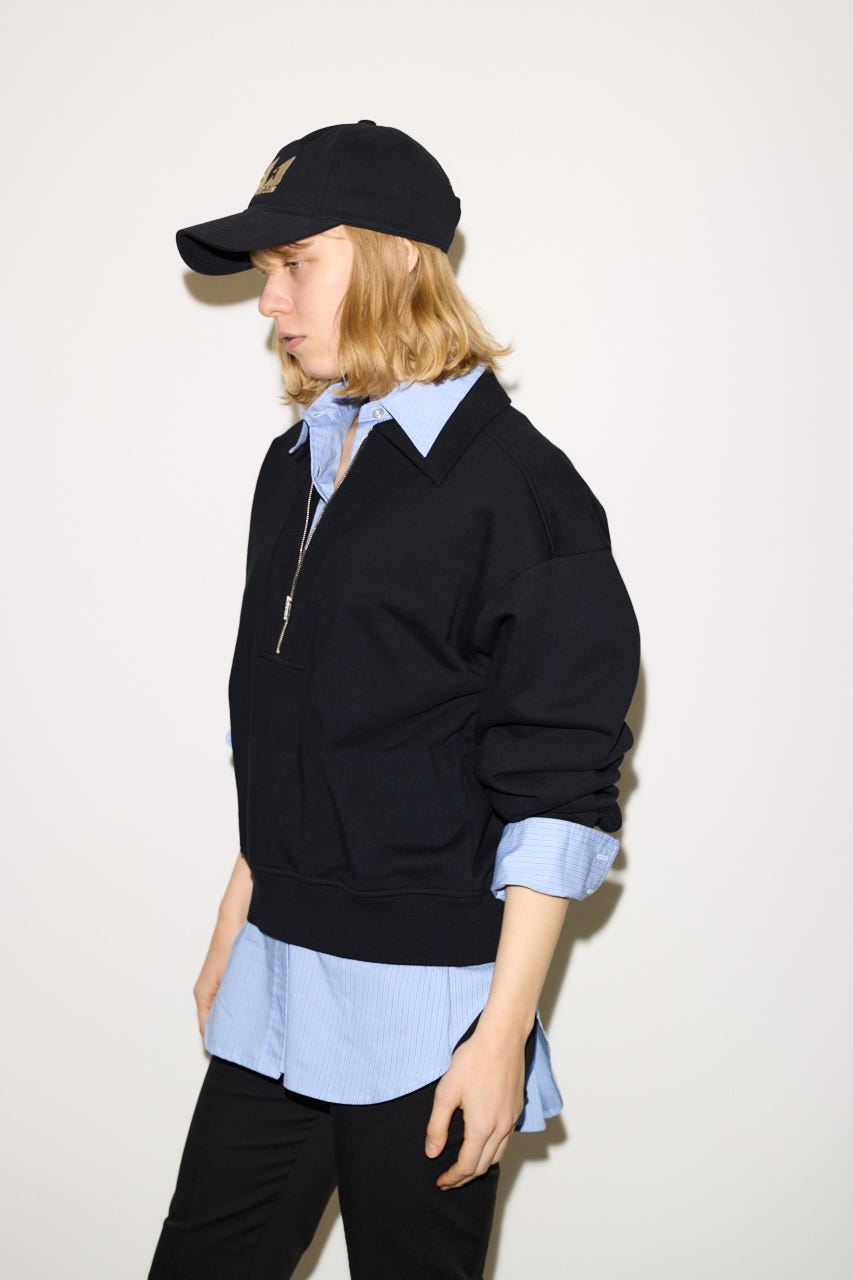 ■STYLING:ハーフジップを開けてシャツの上に重ねたり、幅広いスタイリングを楽しめる万能なアイテムです。