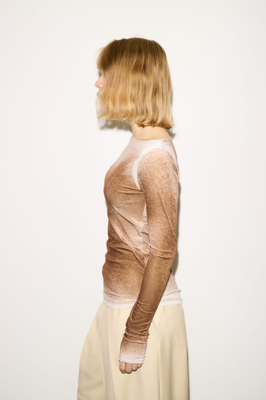 ■POINT:フェードしたようなニュアンスプリントが目を引くベロアトップスが登場。
