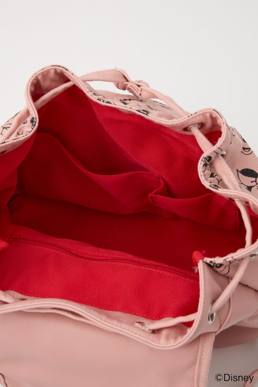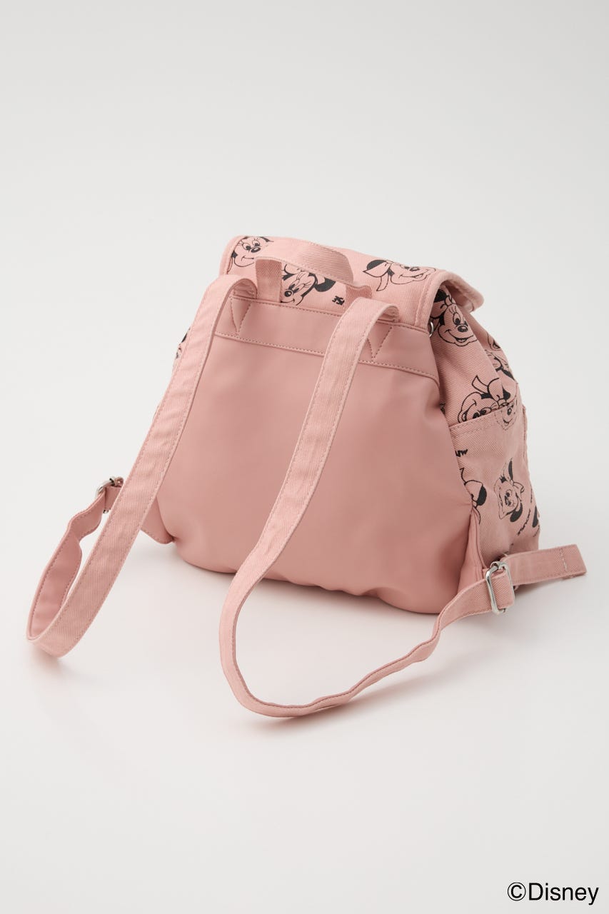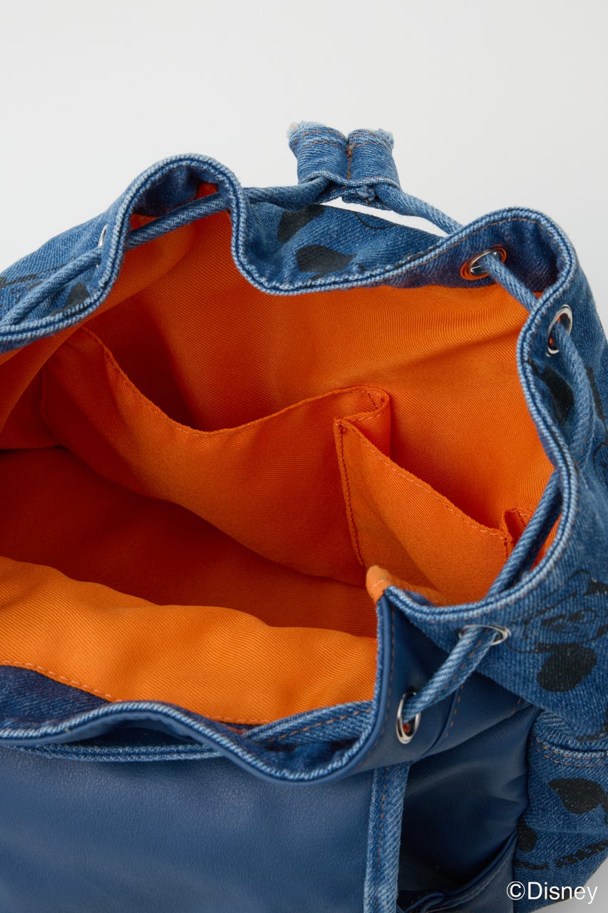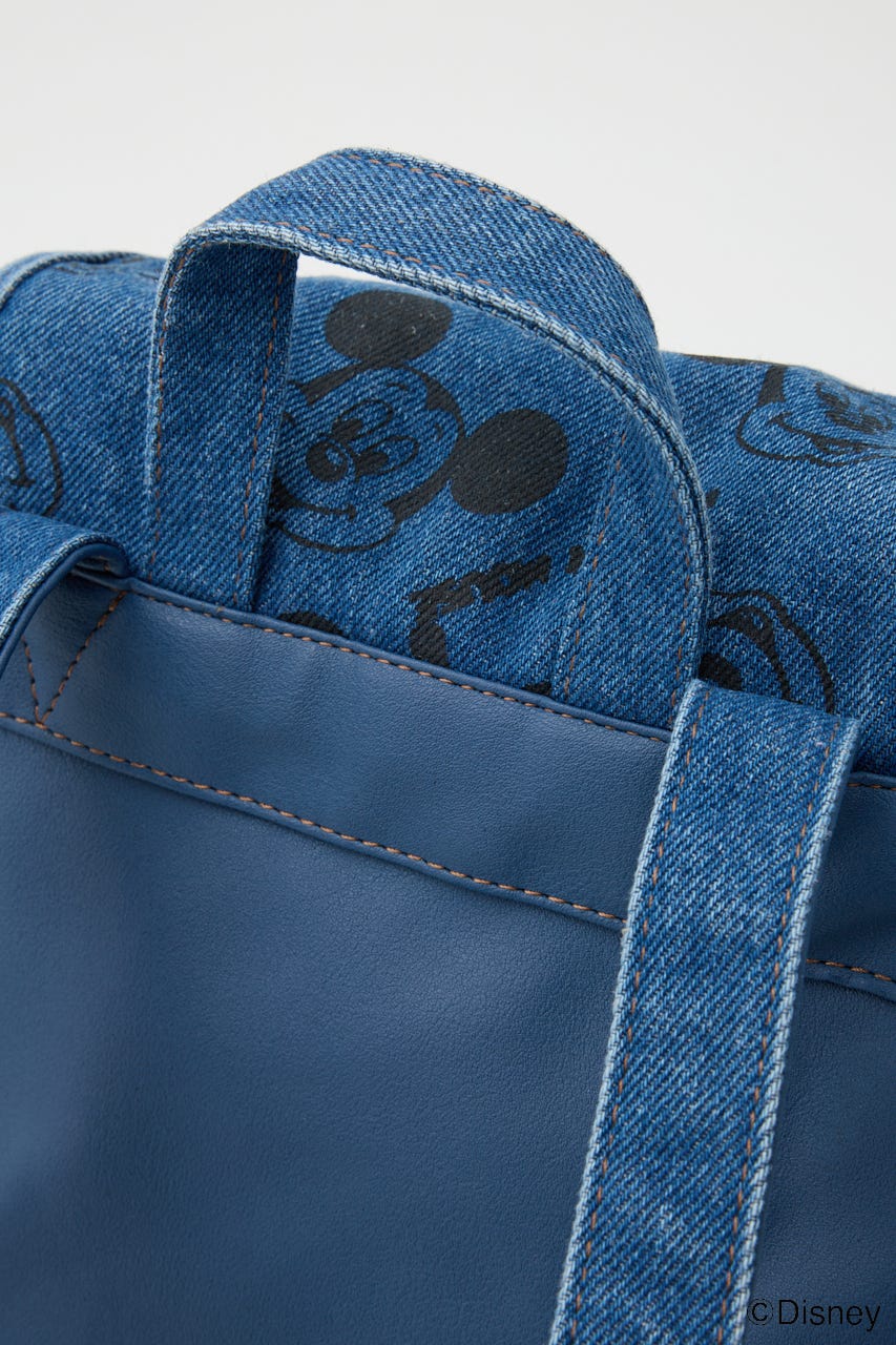 大人気ディズニーキャラクターのミッキーとミニーの総柄デザインがプリントされたデニムリュック。