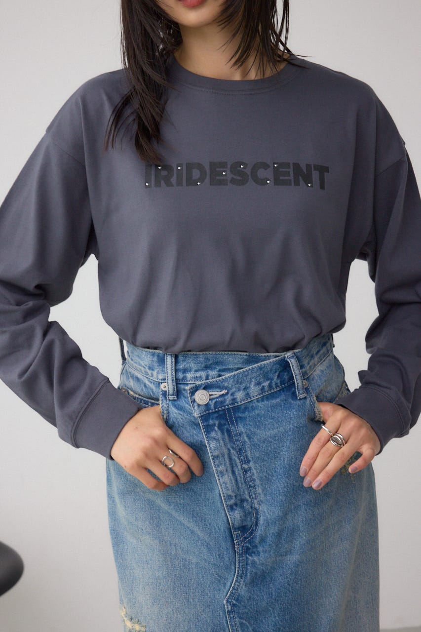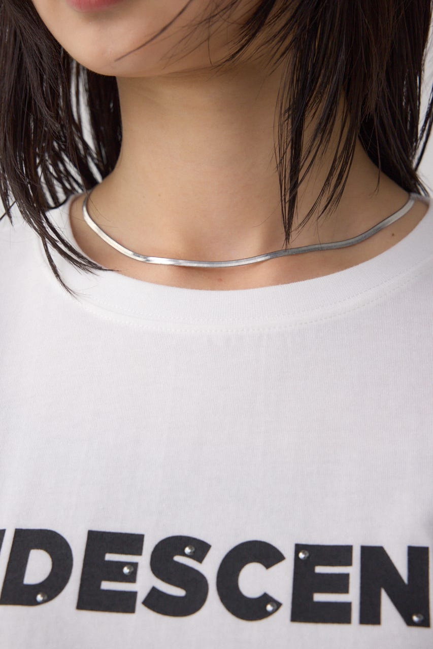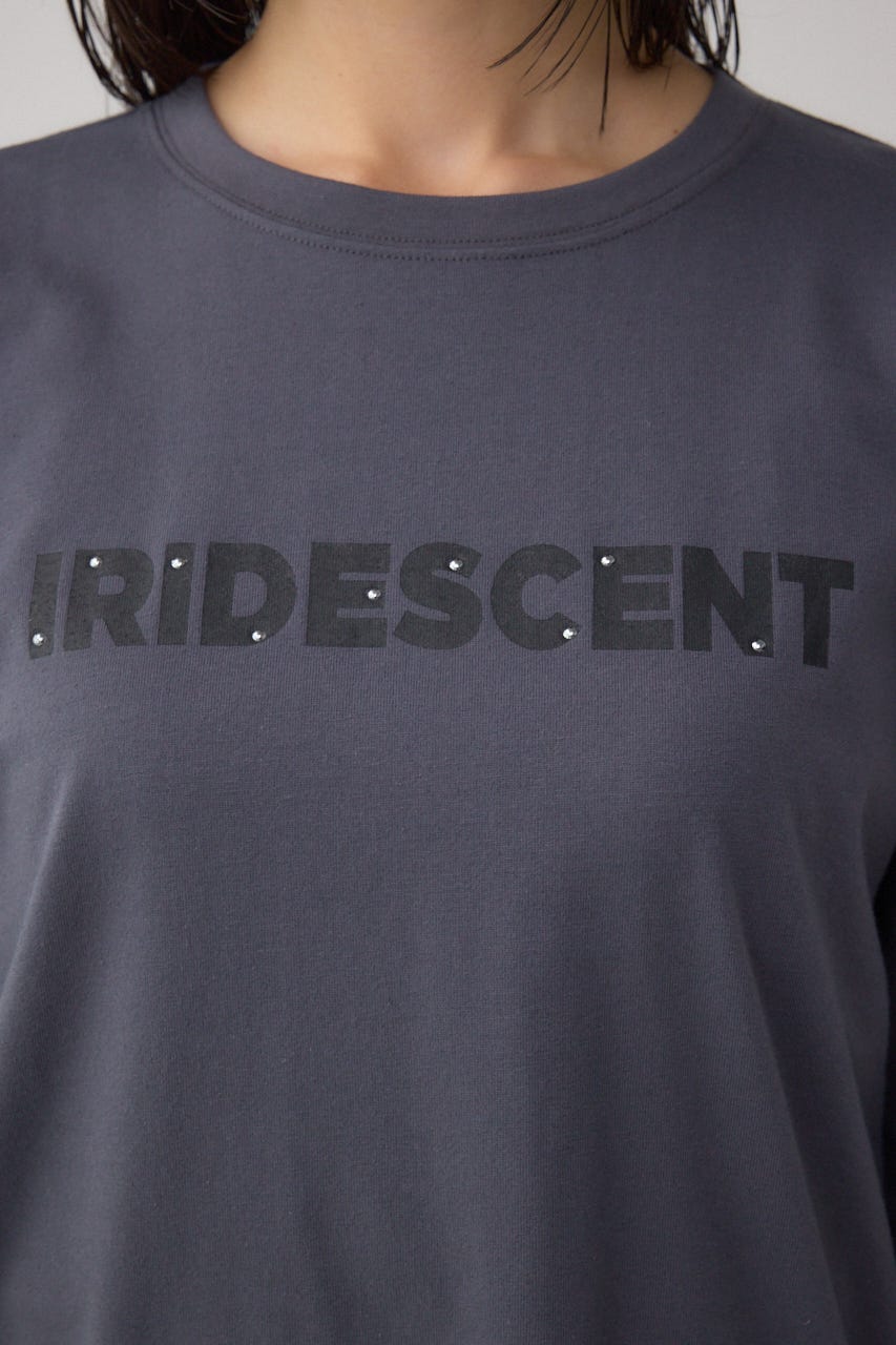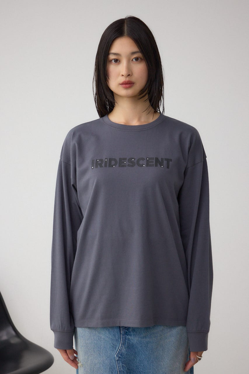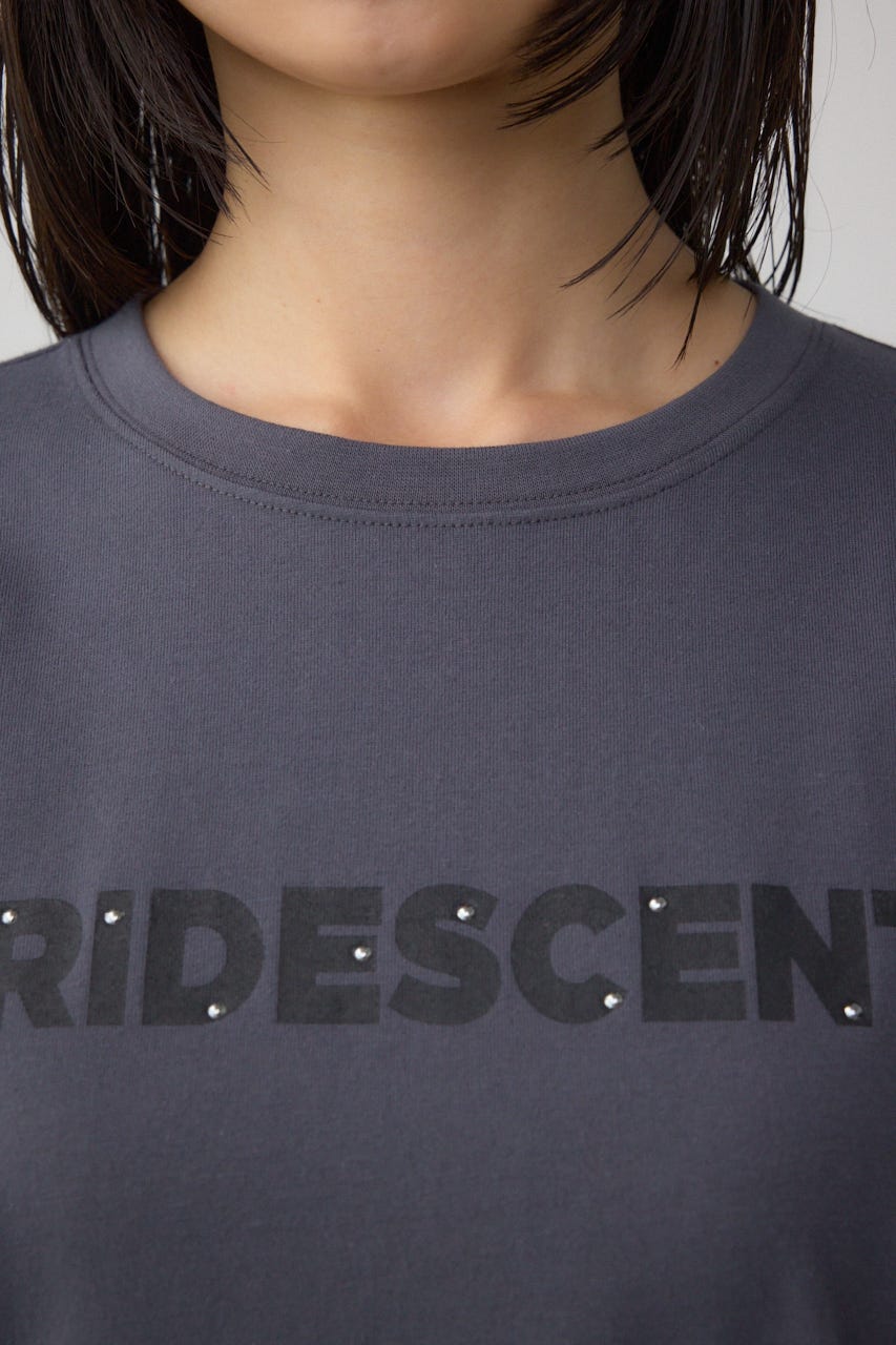 程よいゆとりのボディに、英字ロゴプリントにあしらったスタッズがポイント。