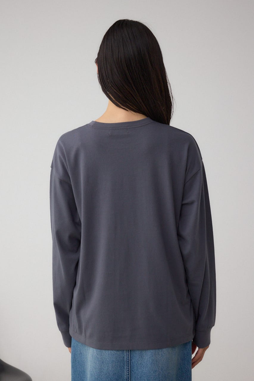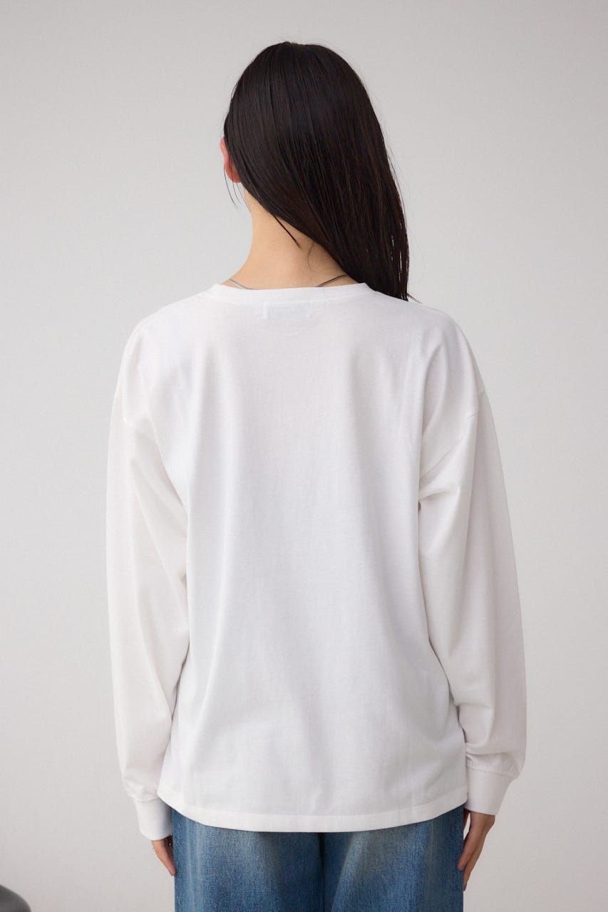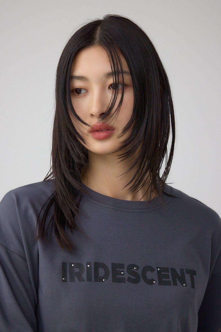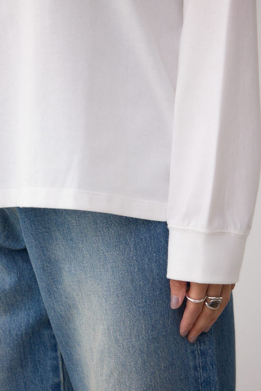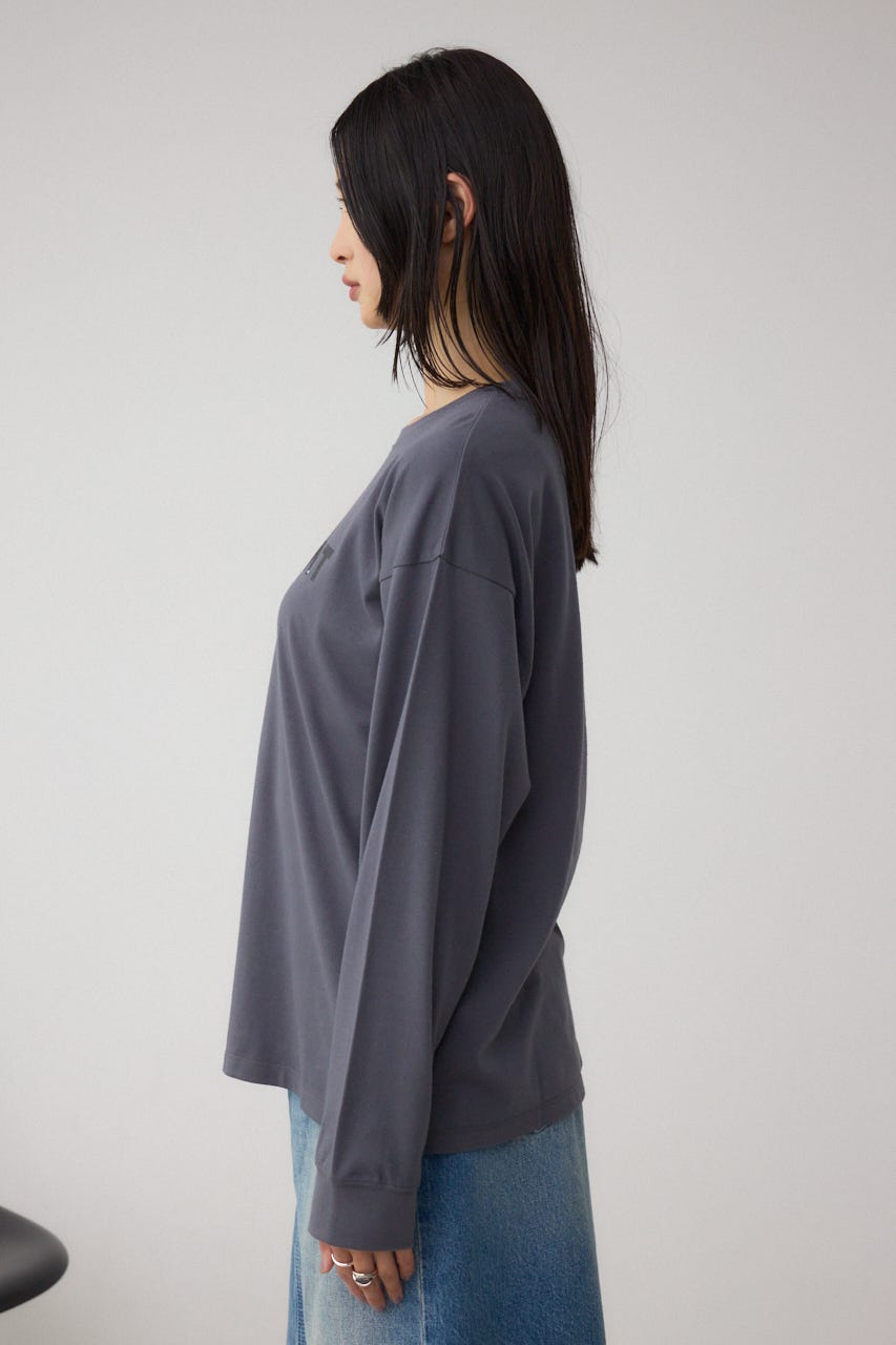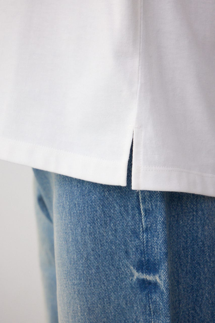 程よいゆとりのボディに、英字ロゴプリントにあしらったスタッズがポイント。
