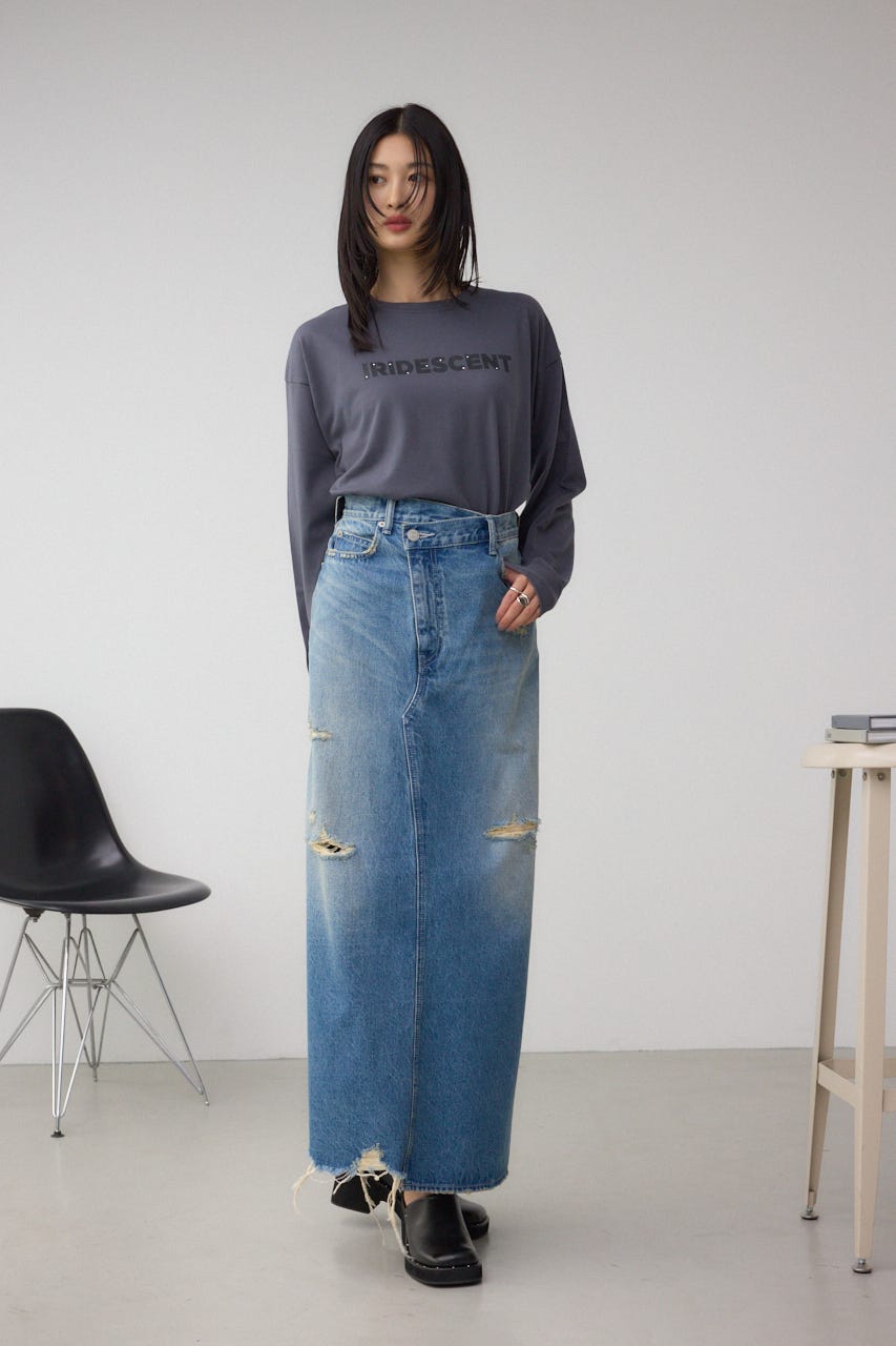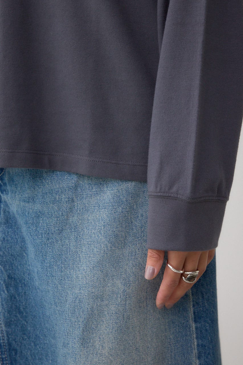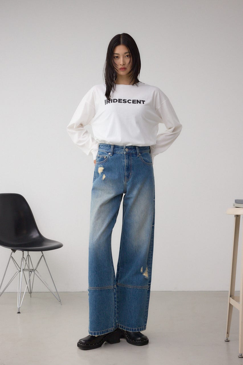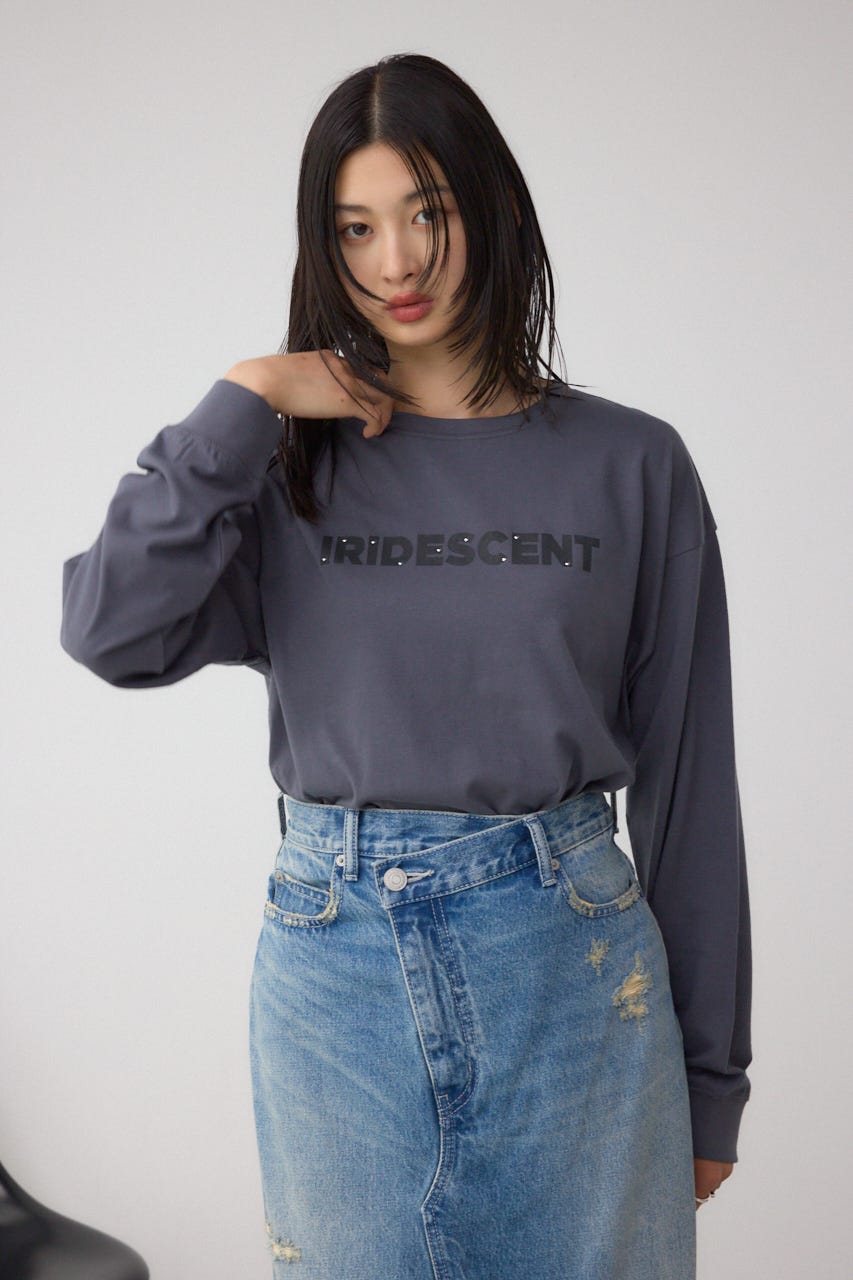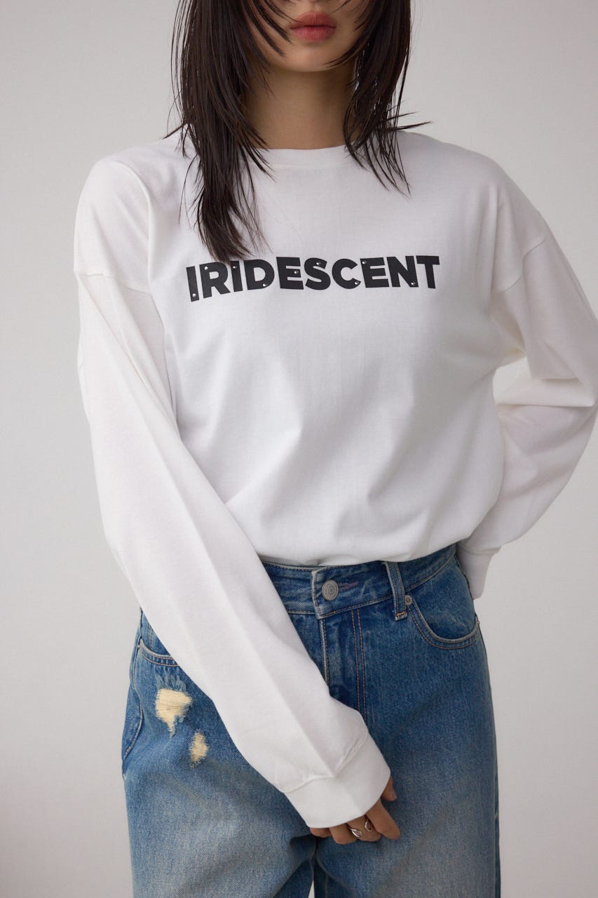 程よいゆとりのボディに、英字ロゴプリントにあしらったスタッズがポイント。